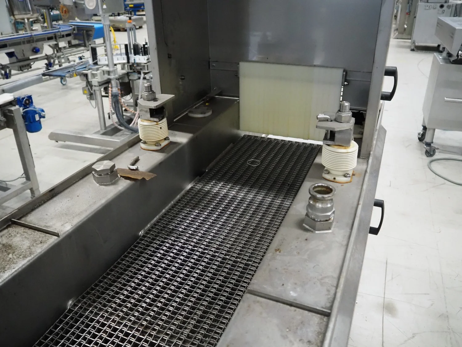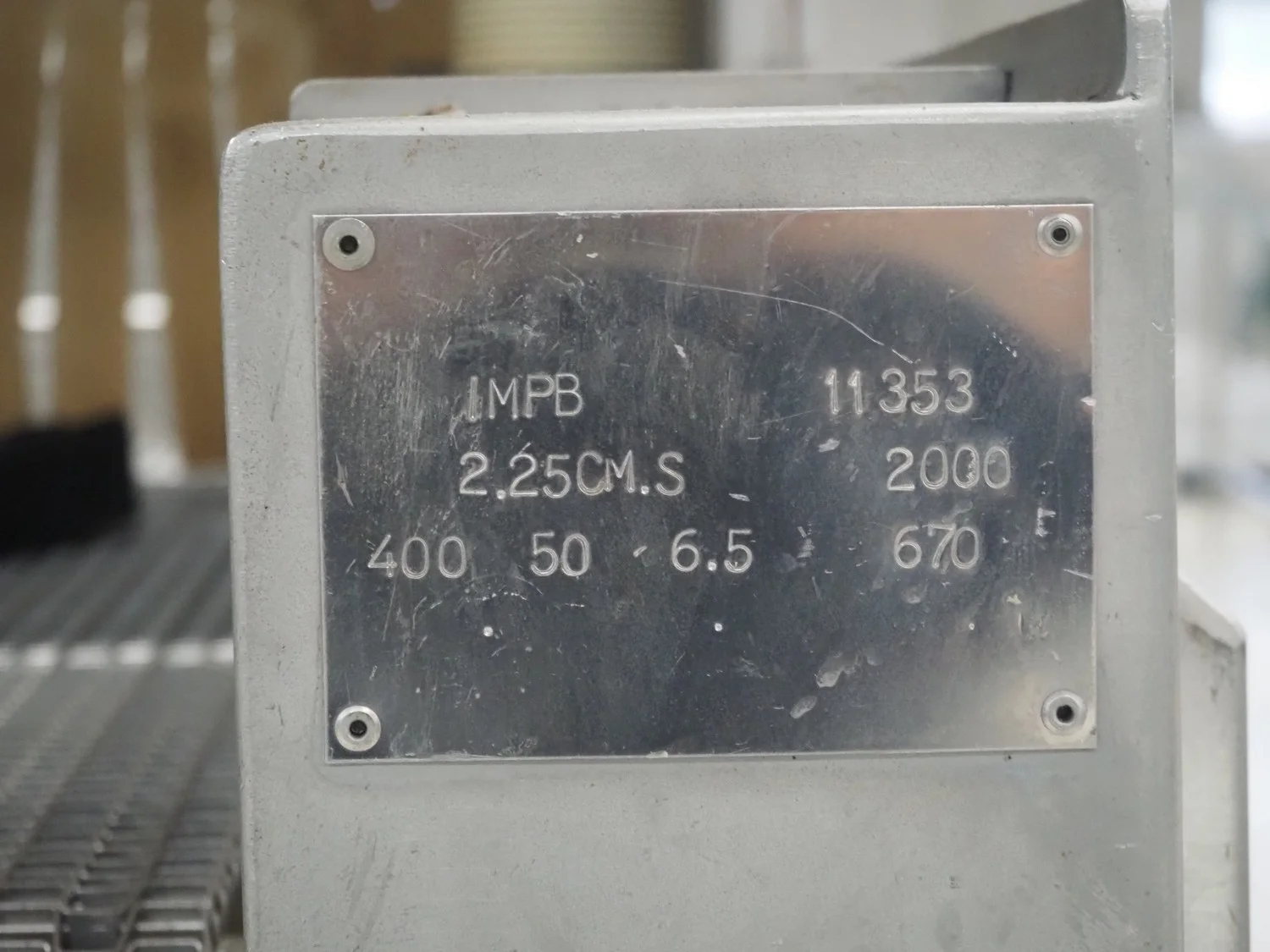 Lutetia injector, model: IMPB, number: 11353, year of construction: 2000 ,400 V, 50 Hz, 6.5 A, 670 kg, s/s mesh belt, belt width: 370 mm, total dimensions: 2400 mm x 700 mm x 1900 mm. Incomplete.