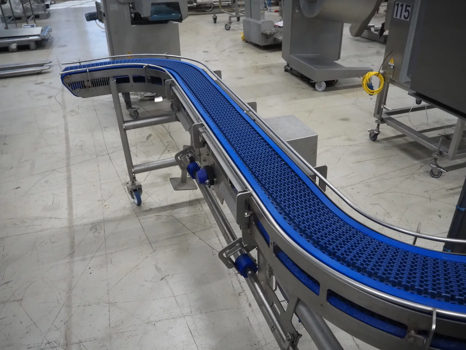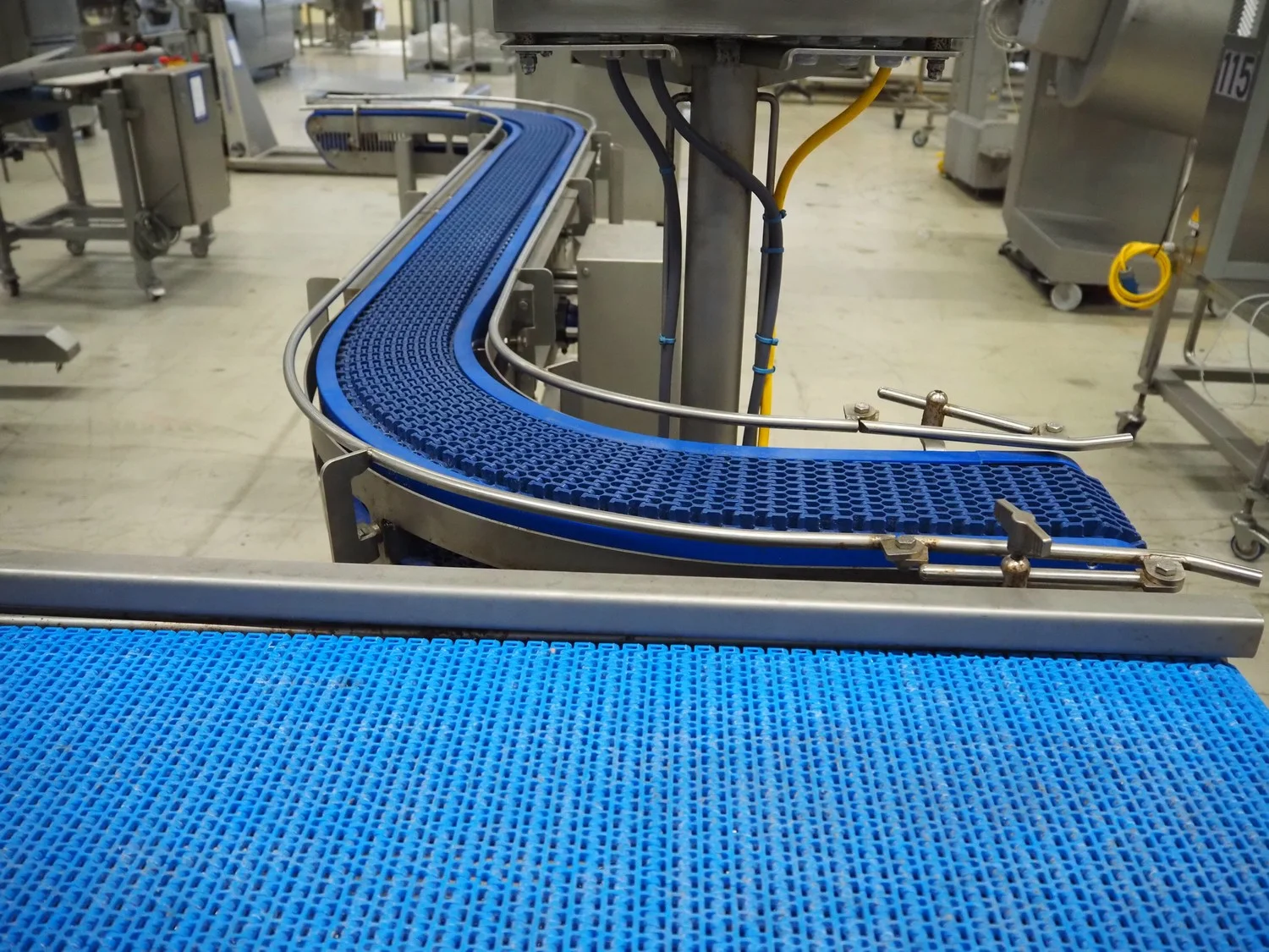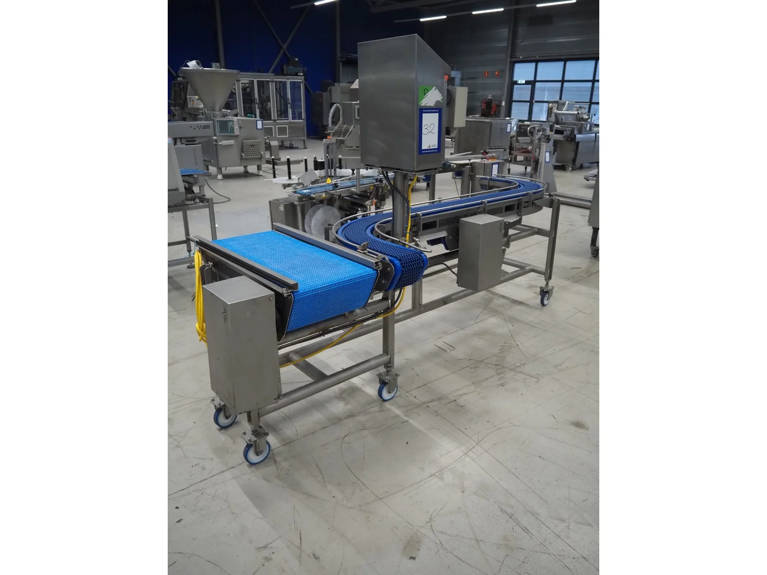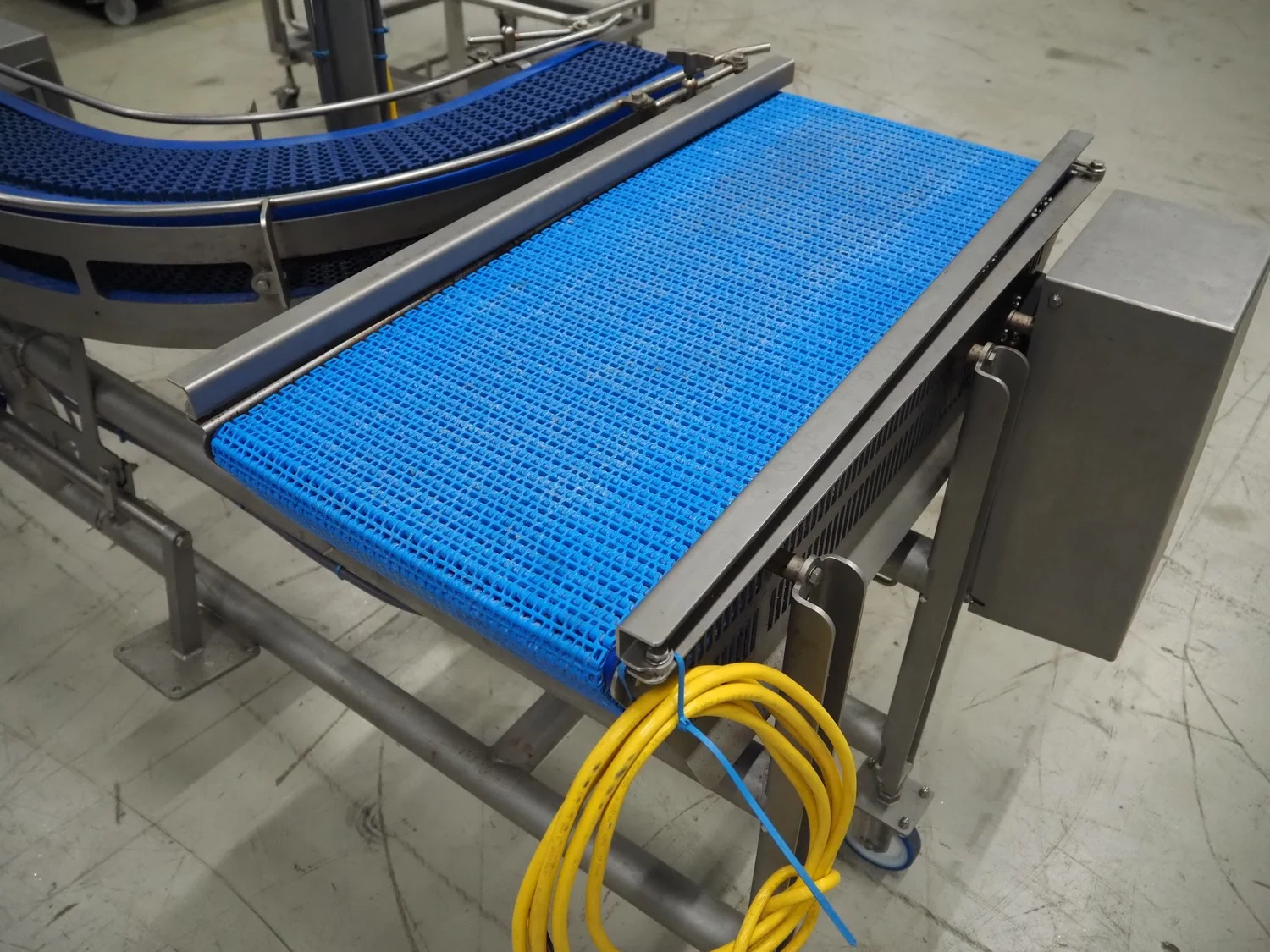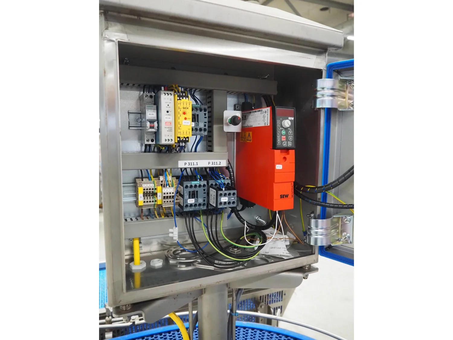 Marvu mobile S-shaped conveyor, type: 360, serial number: 10090153, year of construction: 03/2020, 230-400 V, 50 Hz, 1.26-0.72 A, 0.25 kW, s/s frame, plastic mesh belts, belt width: 150 mm and 380 mm, total dimensions: 3000 mm x 1500 mm x 1850 mm.