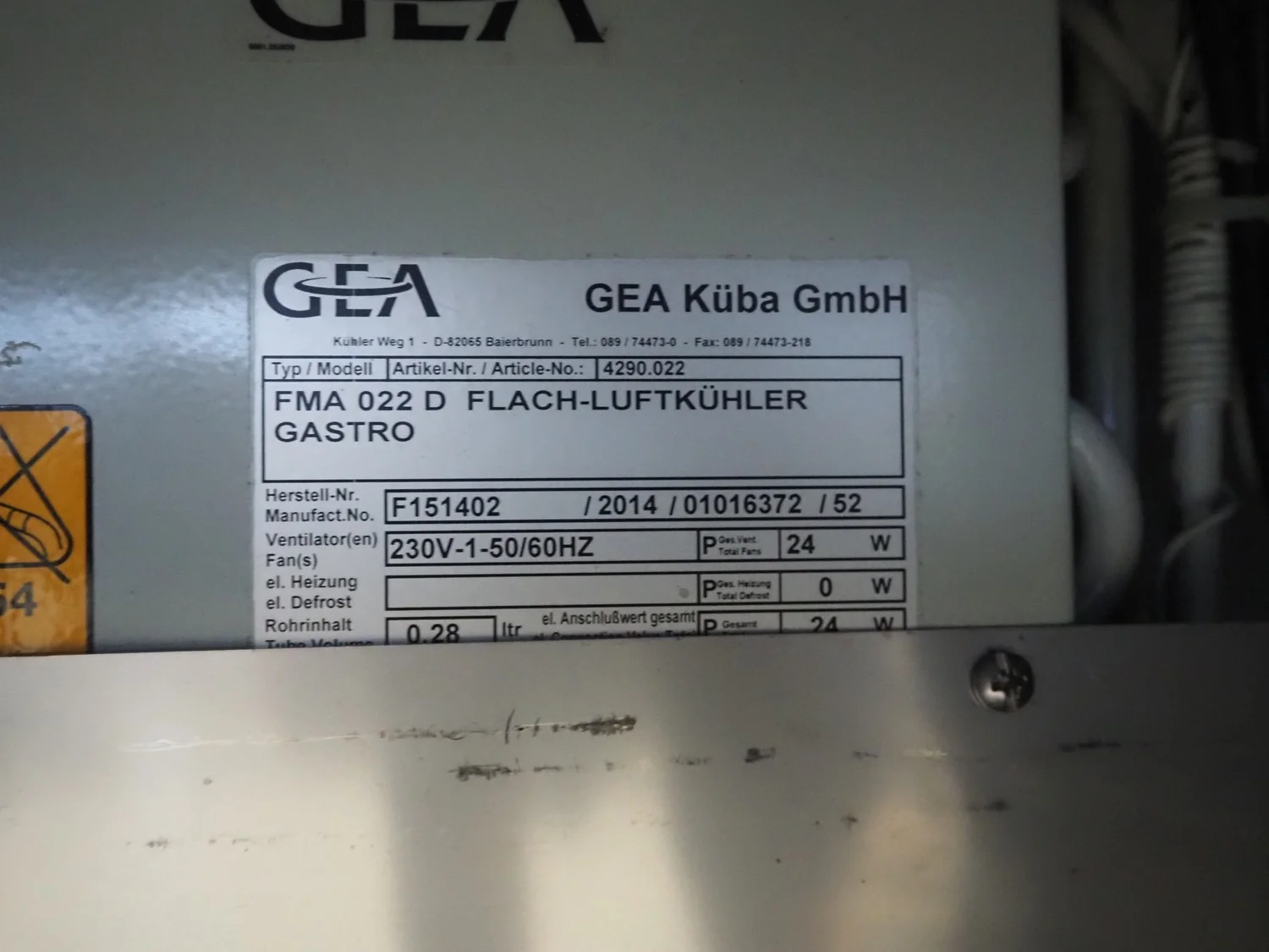 Dometic refrigerated container for vans, model: CF 850 Van, serial number: 4440001, 220-240 V, 50-60 Hz, 1.33 A, 360 W, refrigerant: R134a, 0.135 kg, volume: 850 liter, GEA evaporator, dimensions: 1400 mm x 1100 mm x 1000 mm.