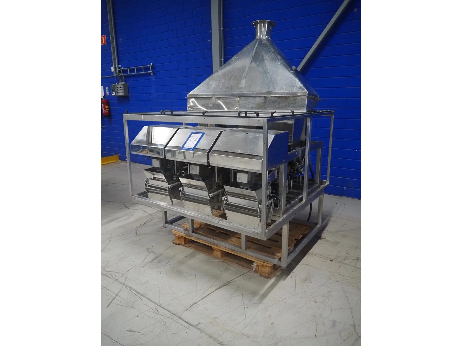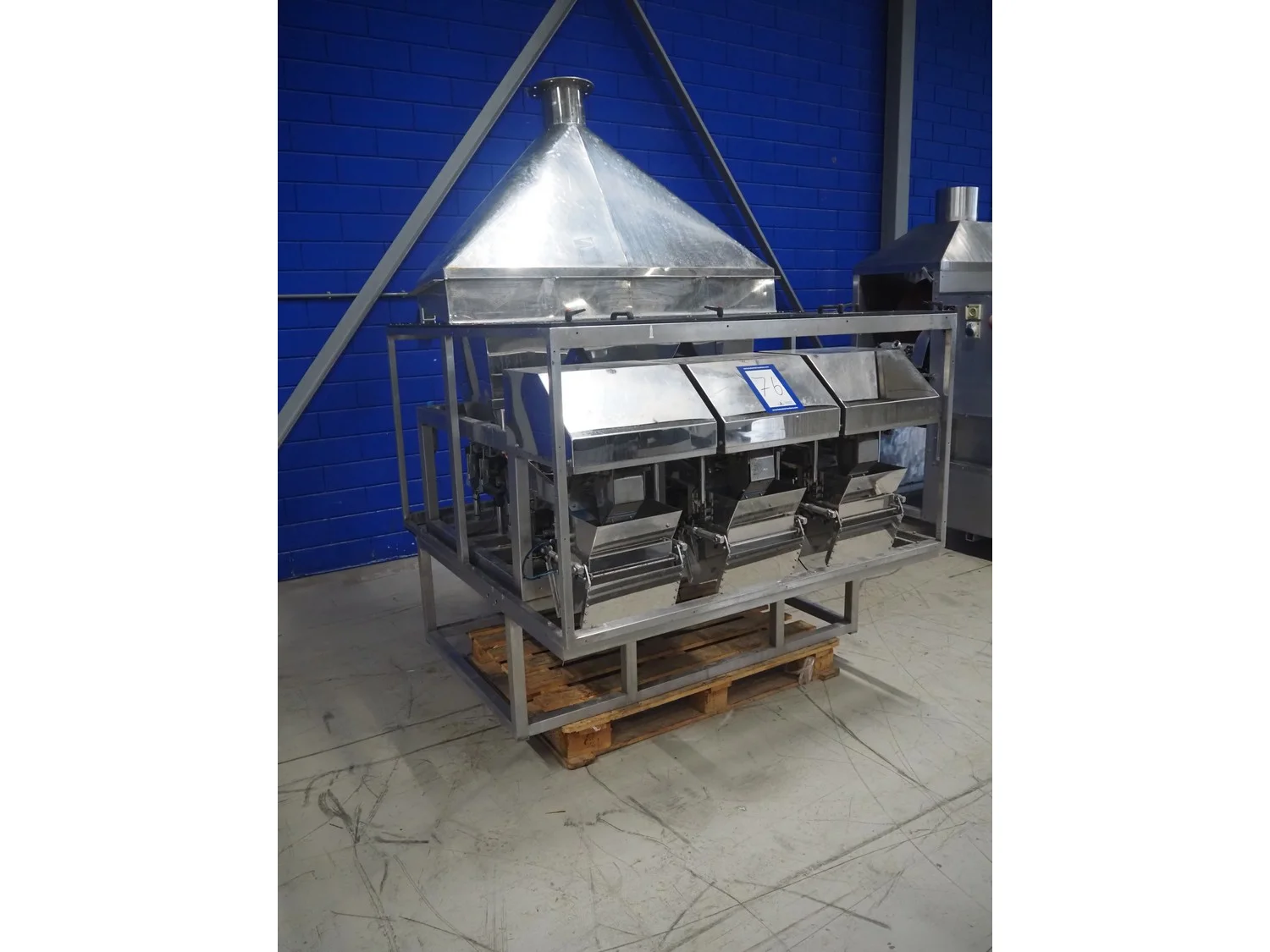 Easyweigh linear weigher, 3 lanes, type: Maxi, serial number: 080105/080106/080107, year of construction: 2008, 3 s/s vibrating gutters, total dimensions: 1500 mm x 1500 mm x 2100 mm.