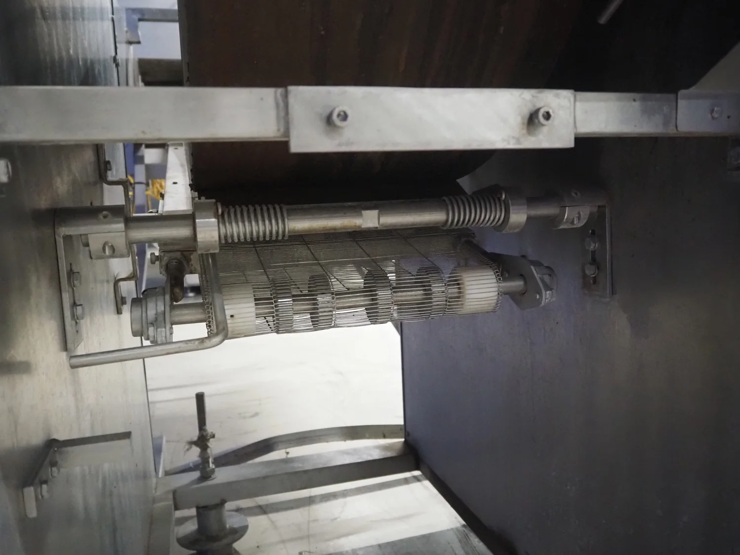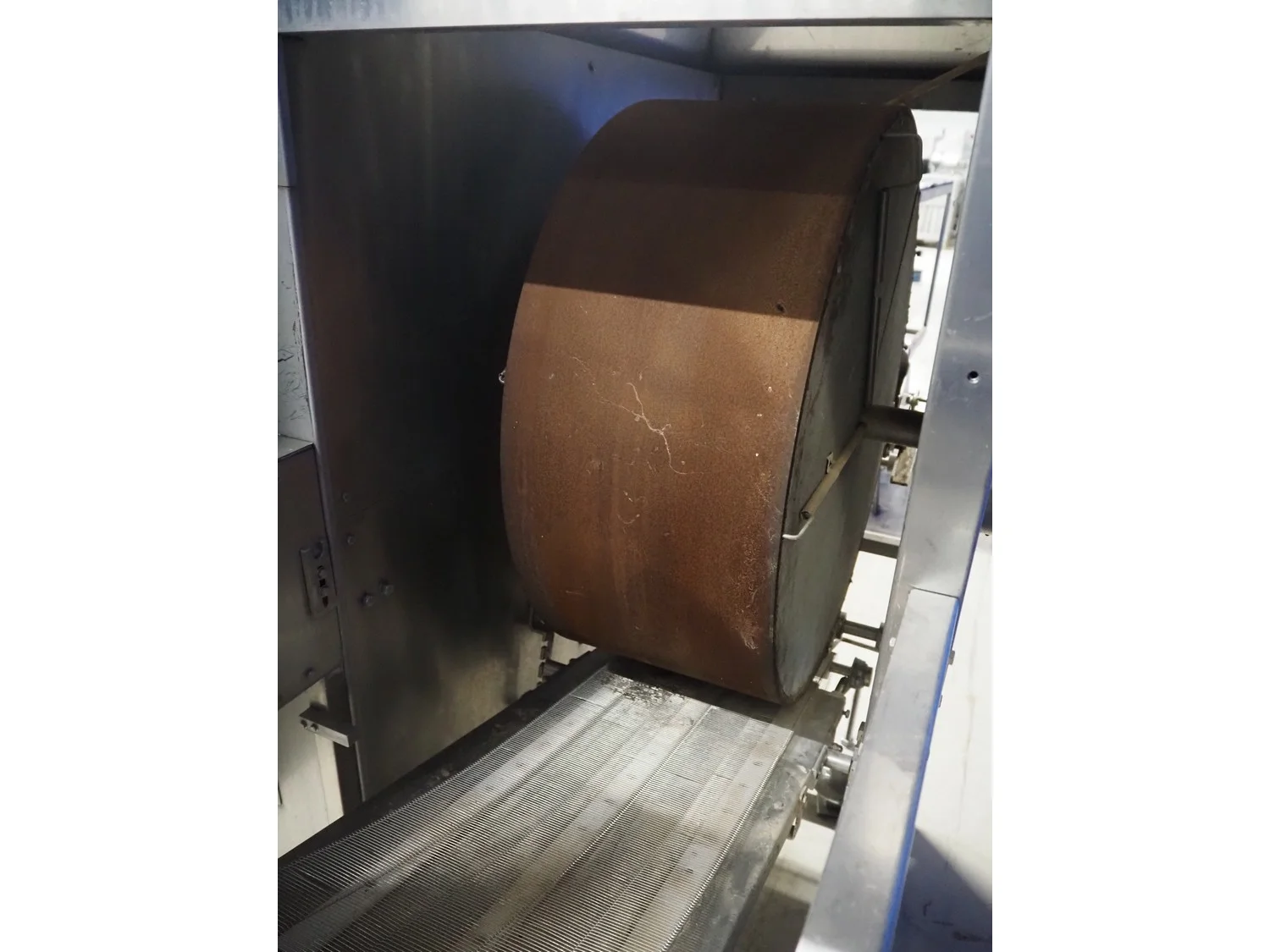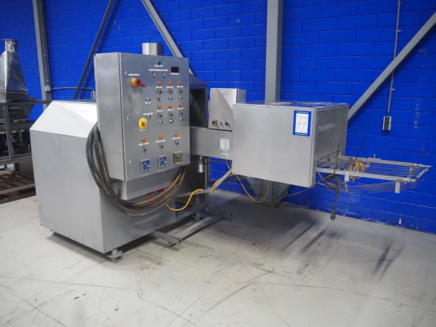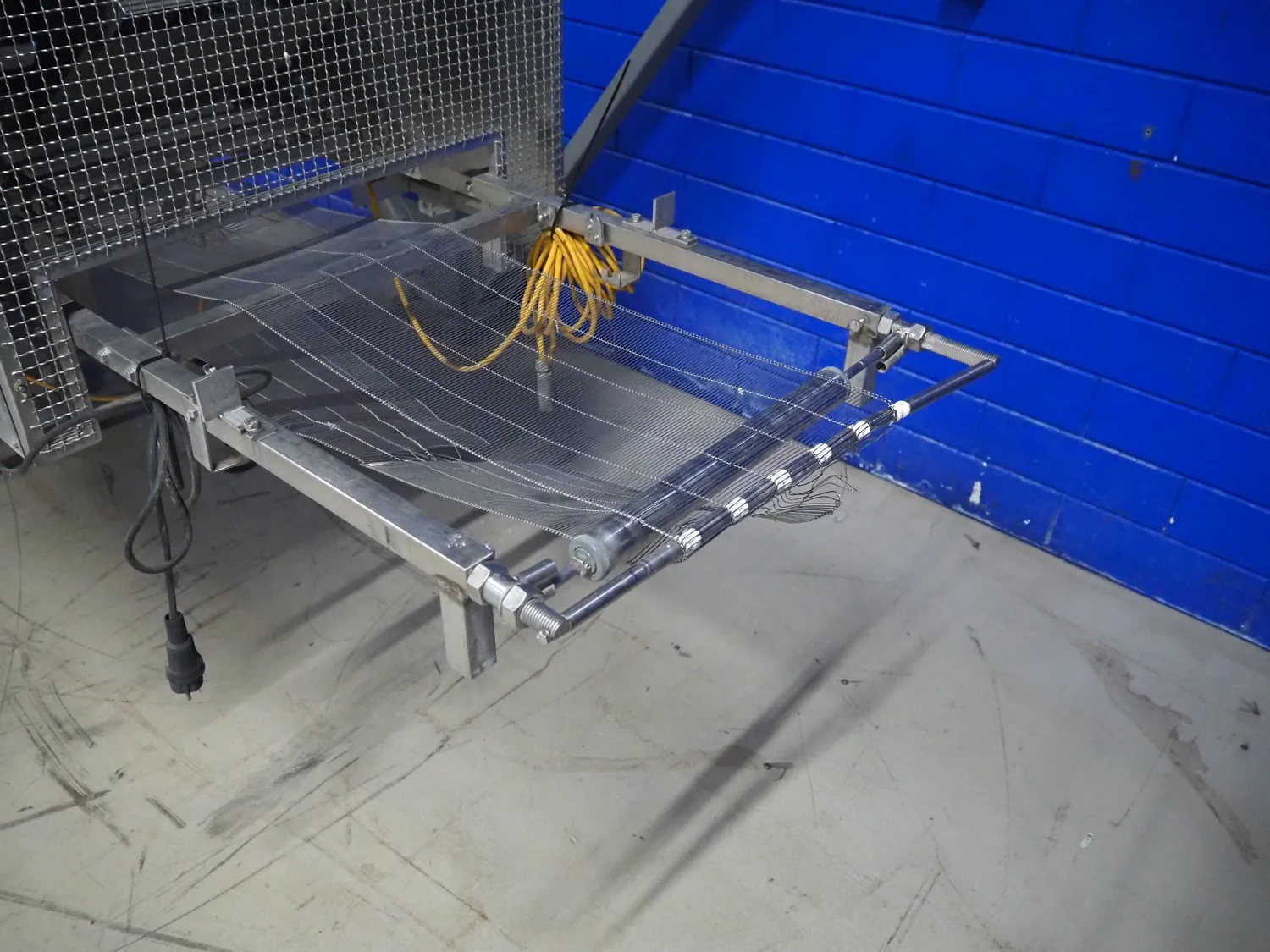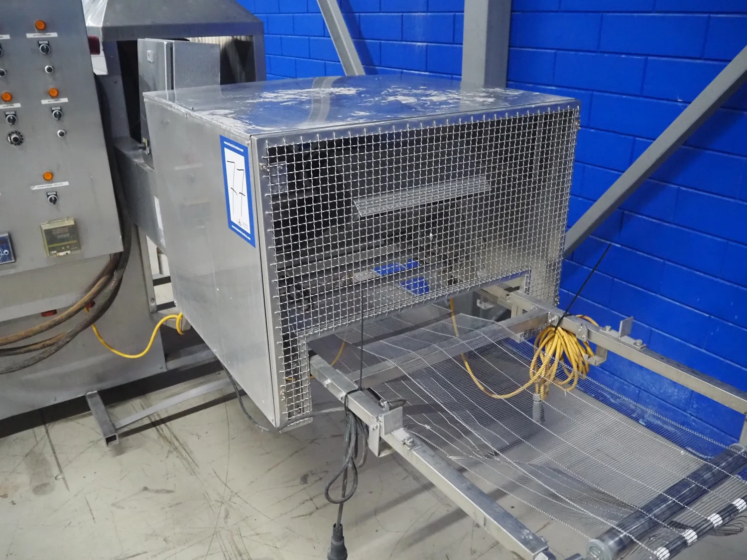 S.A. Balpe blintz machine, s/s mesh belt, belt width: 300 mm, diameter roller: 800 mm, total dimensions: 3500 mm x 1800 mm x 2300 mm. With additional parts.