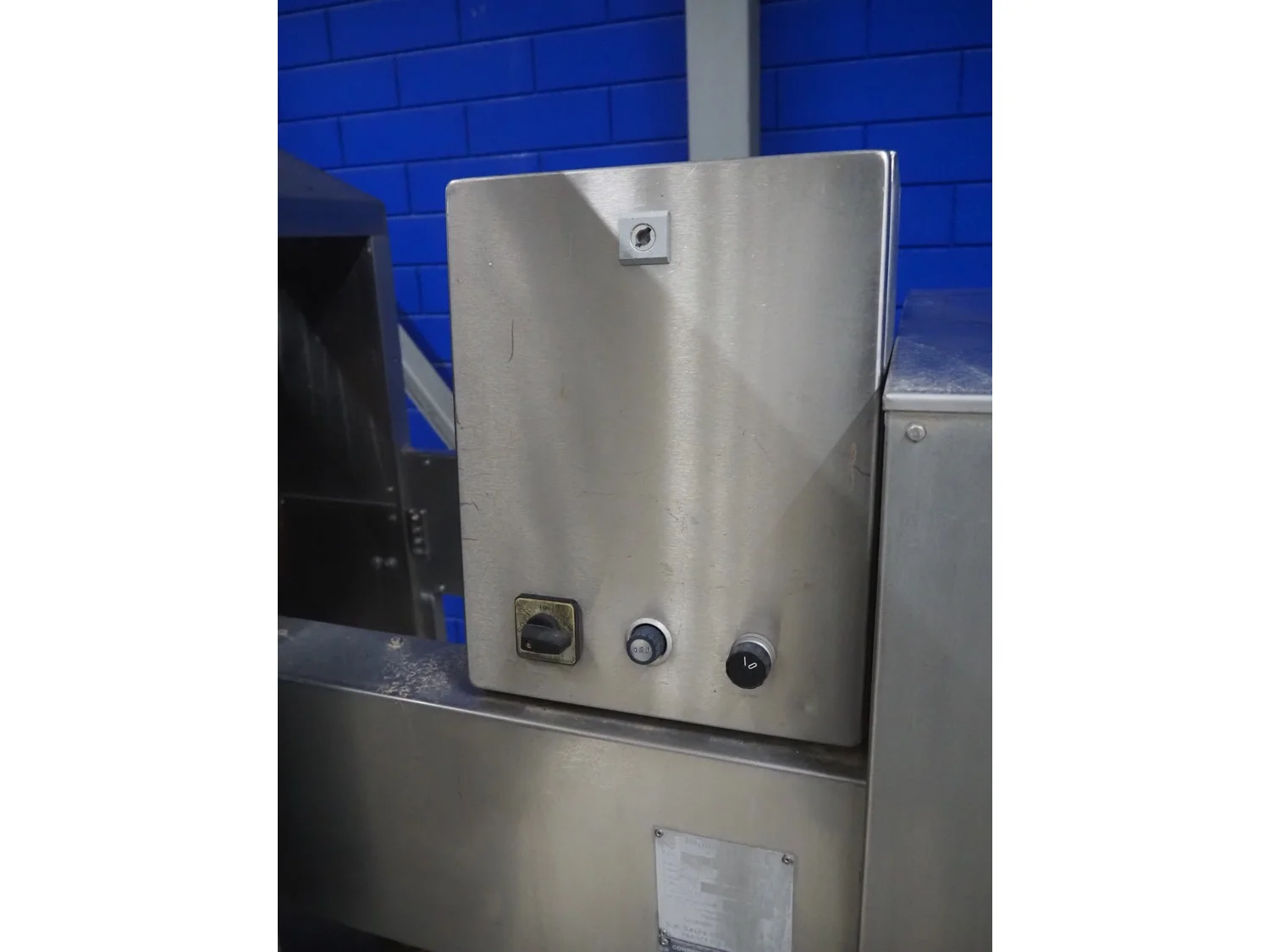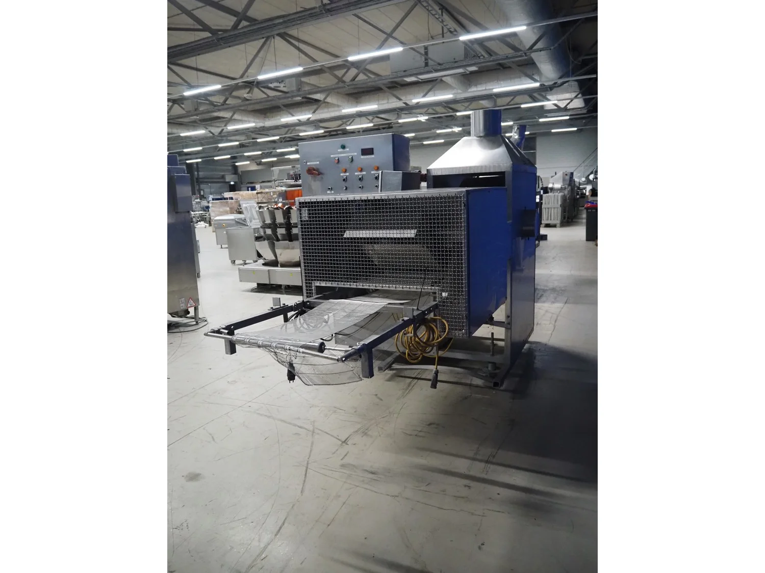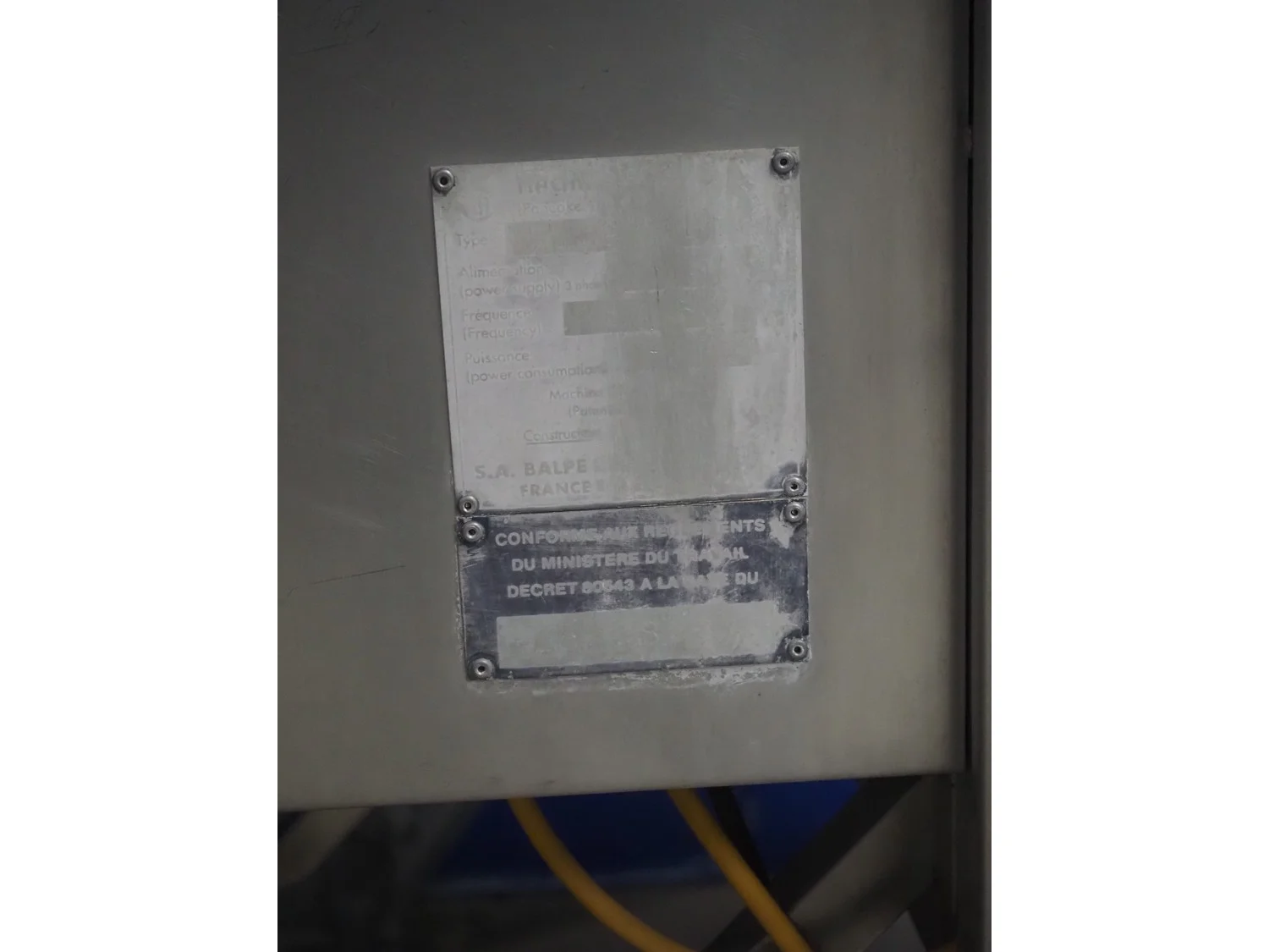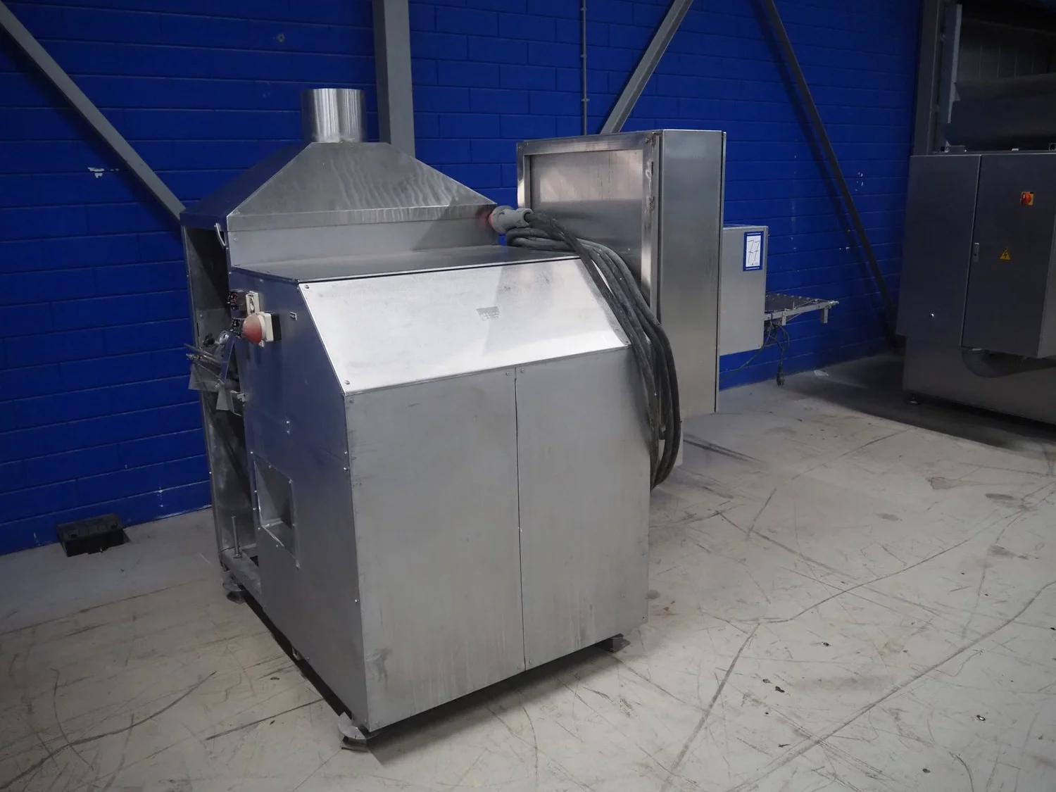 S.A. Balpe blintz machine, s/s mesh belt, belt width: 300 mm, diameter roller: 800 mm, total dimensions: 3500 mm x 1800 mm x 2300 mm. With additional parts.