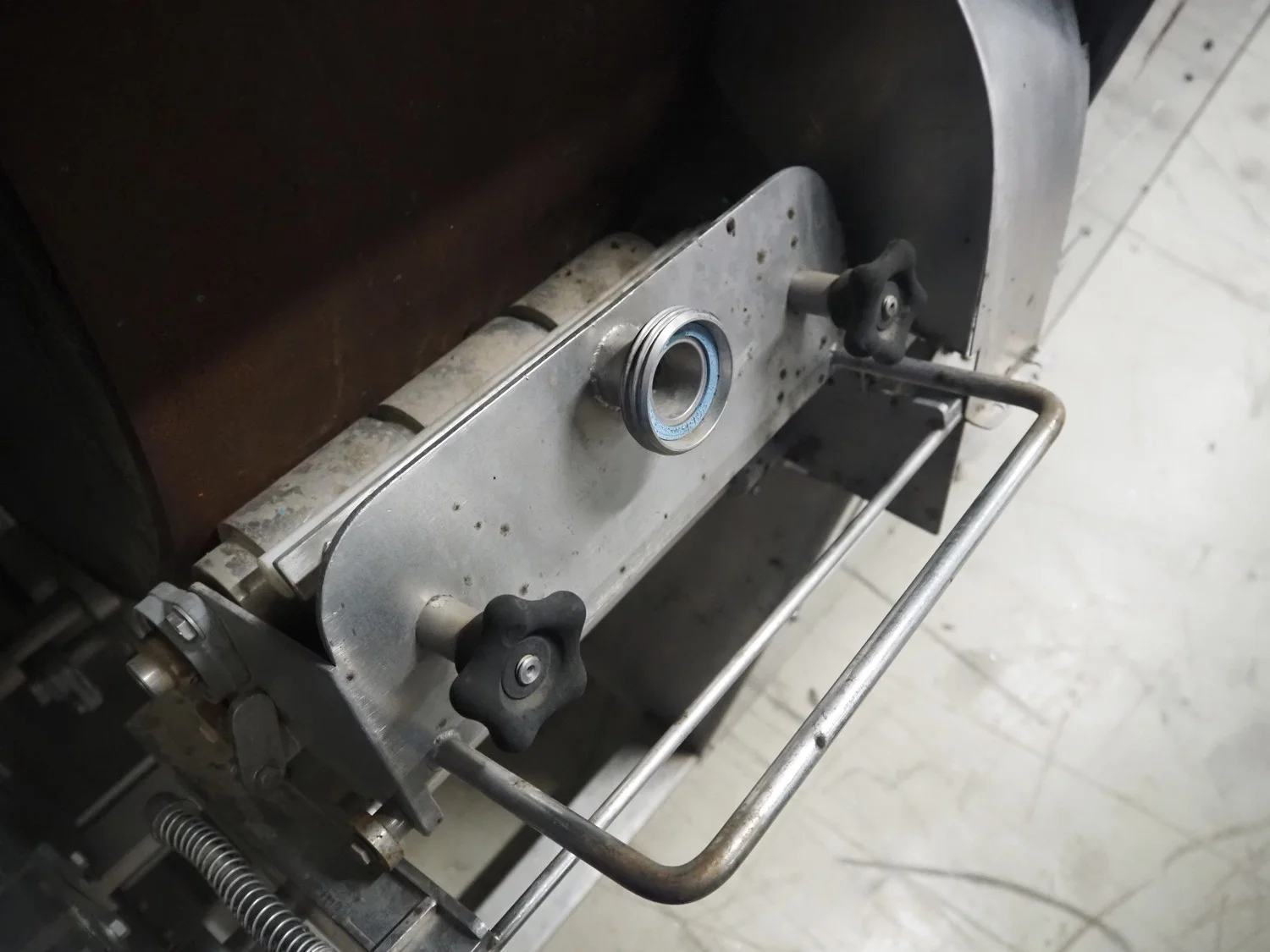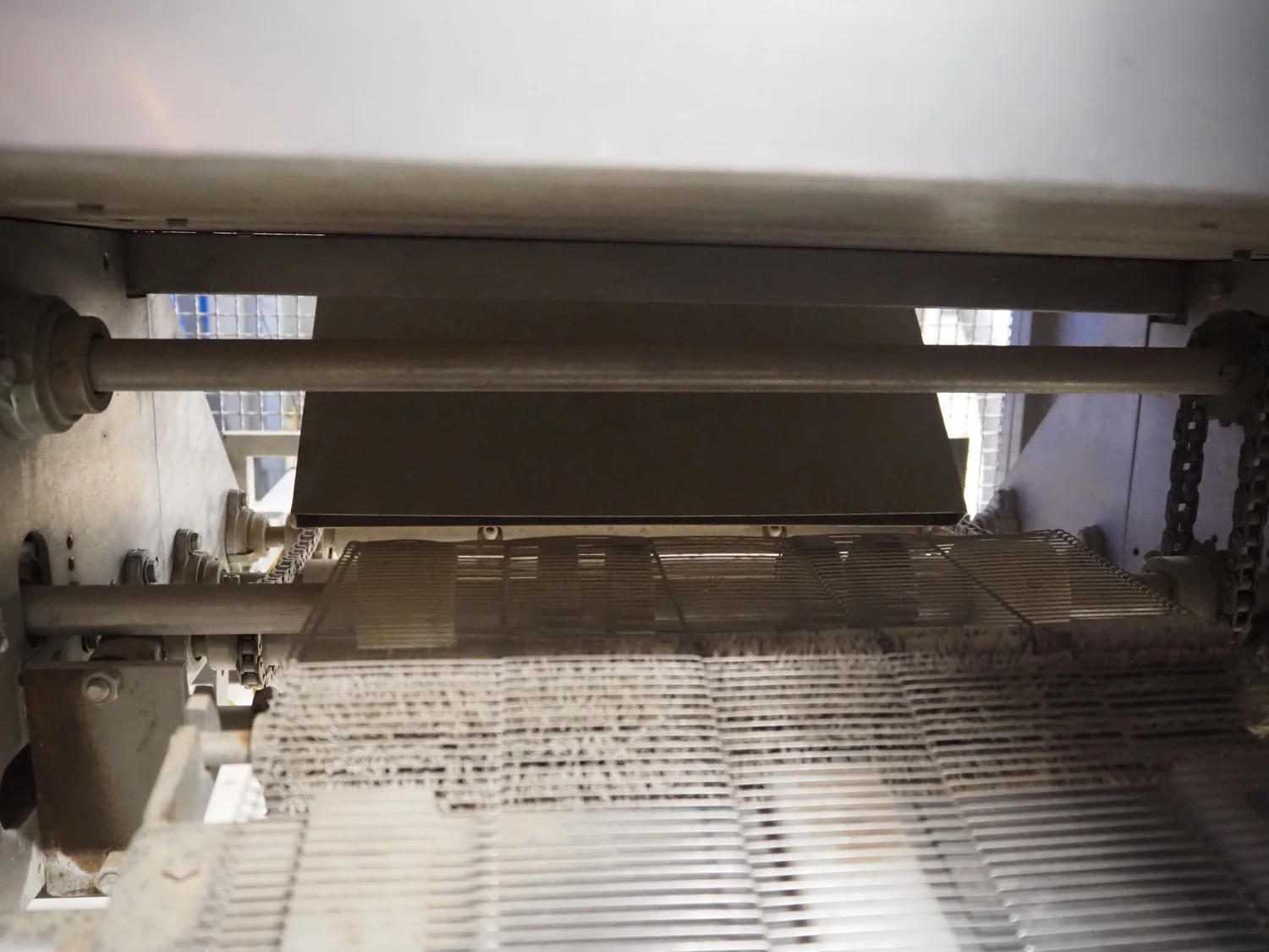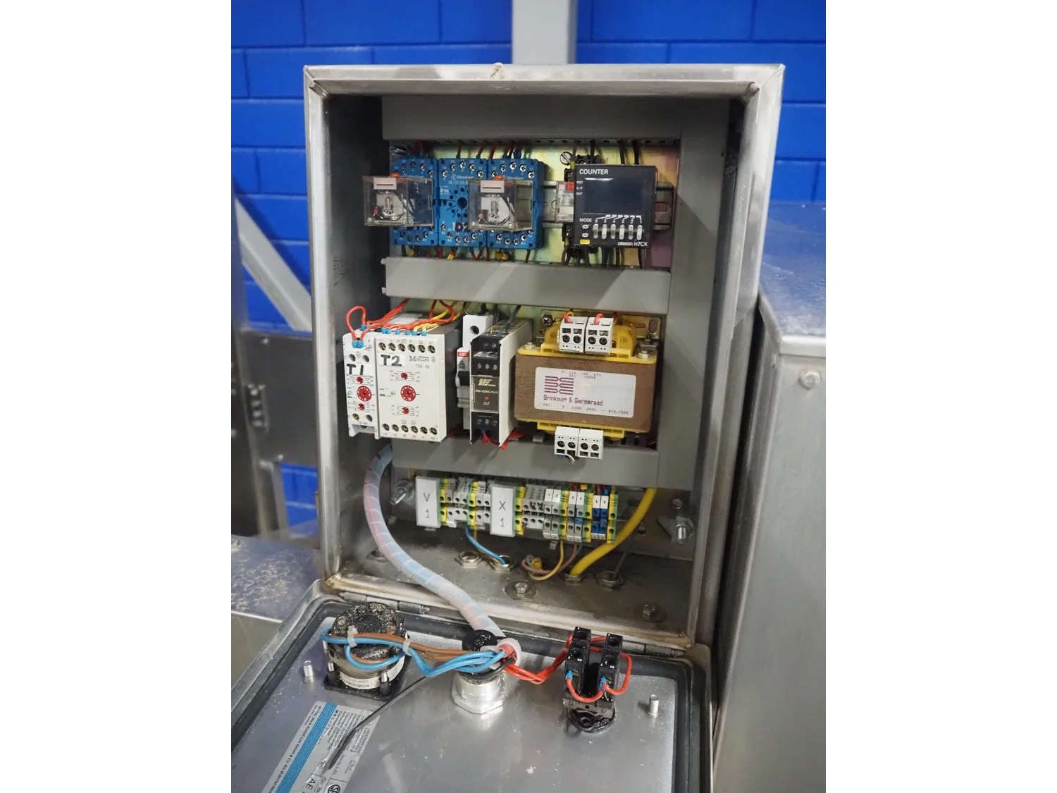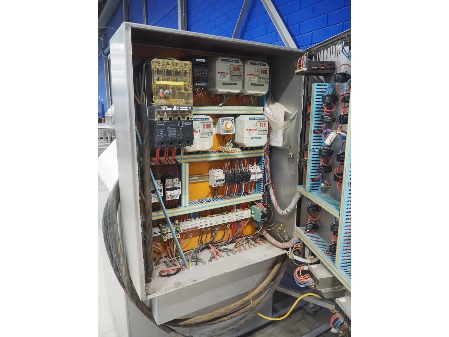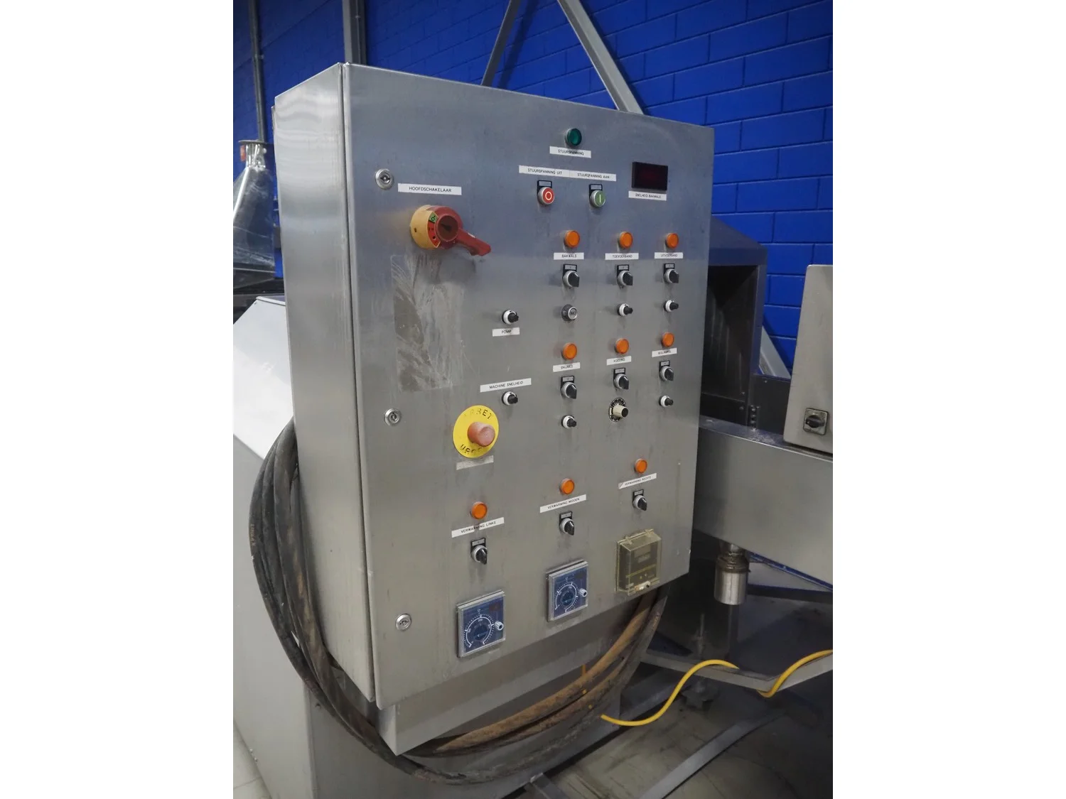 S.A. Balpe blintz machine, s/s mesh belt, belt width: 300 mm, diameter roller: 800 mm, total dimensions: 3500 mm x 1800 mm x 2300 mm. With additional parts.