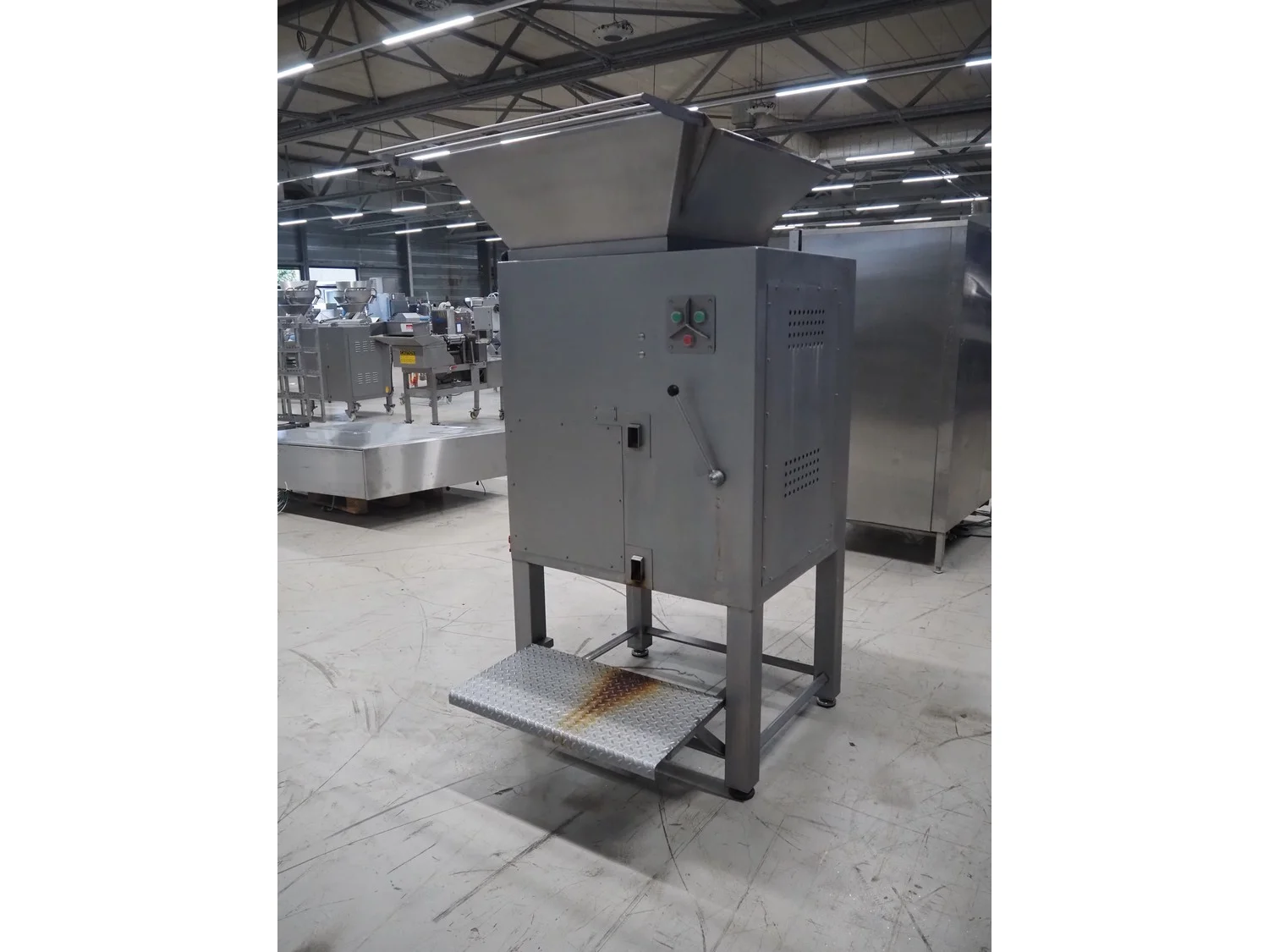 Grinder, diameter plate: 100 mm, total dimensions: 1200 mm x 1350 mm x 1960 mm. Missing plates.