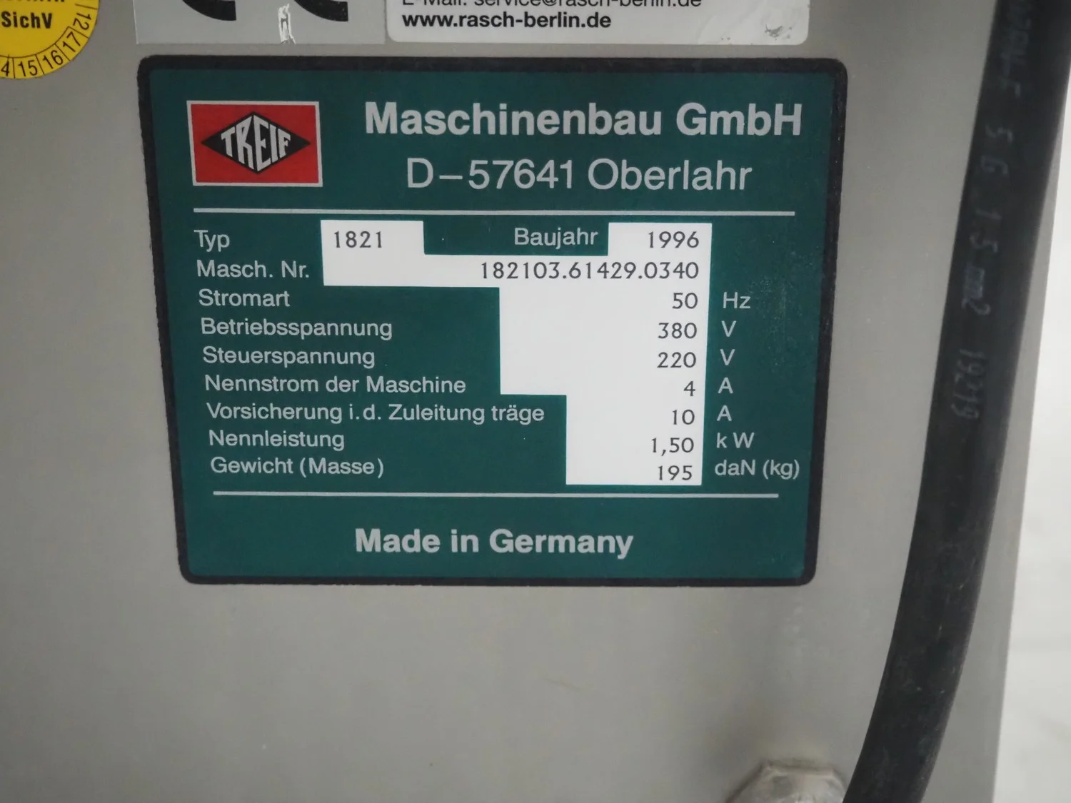 Treif mobile slicer, model: Fox-CE, type: 1821, machine number: 182103.61429.0340, year of construction: 1996, 380-220 V, 50 Hz, 4 A, 1.5 kW, 195 kg, dimensions chamber: 200 mm x 170 mm, total dimensions: 1900 mm x 720 mm x 1300 mm.