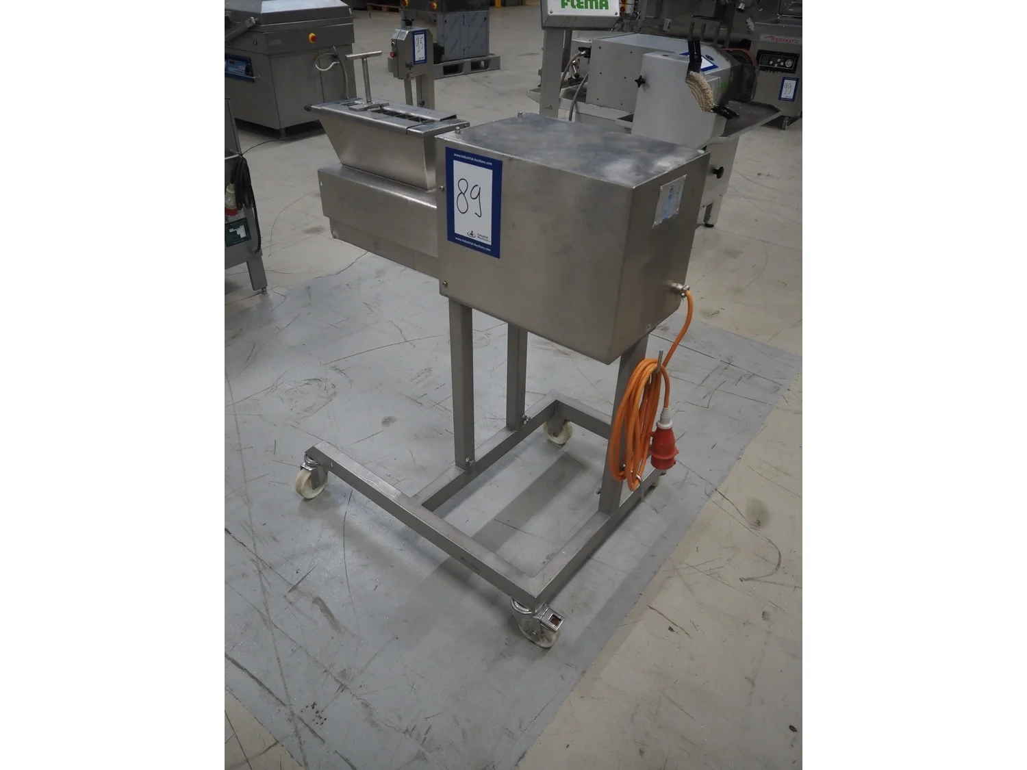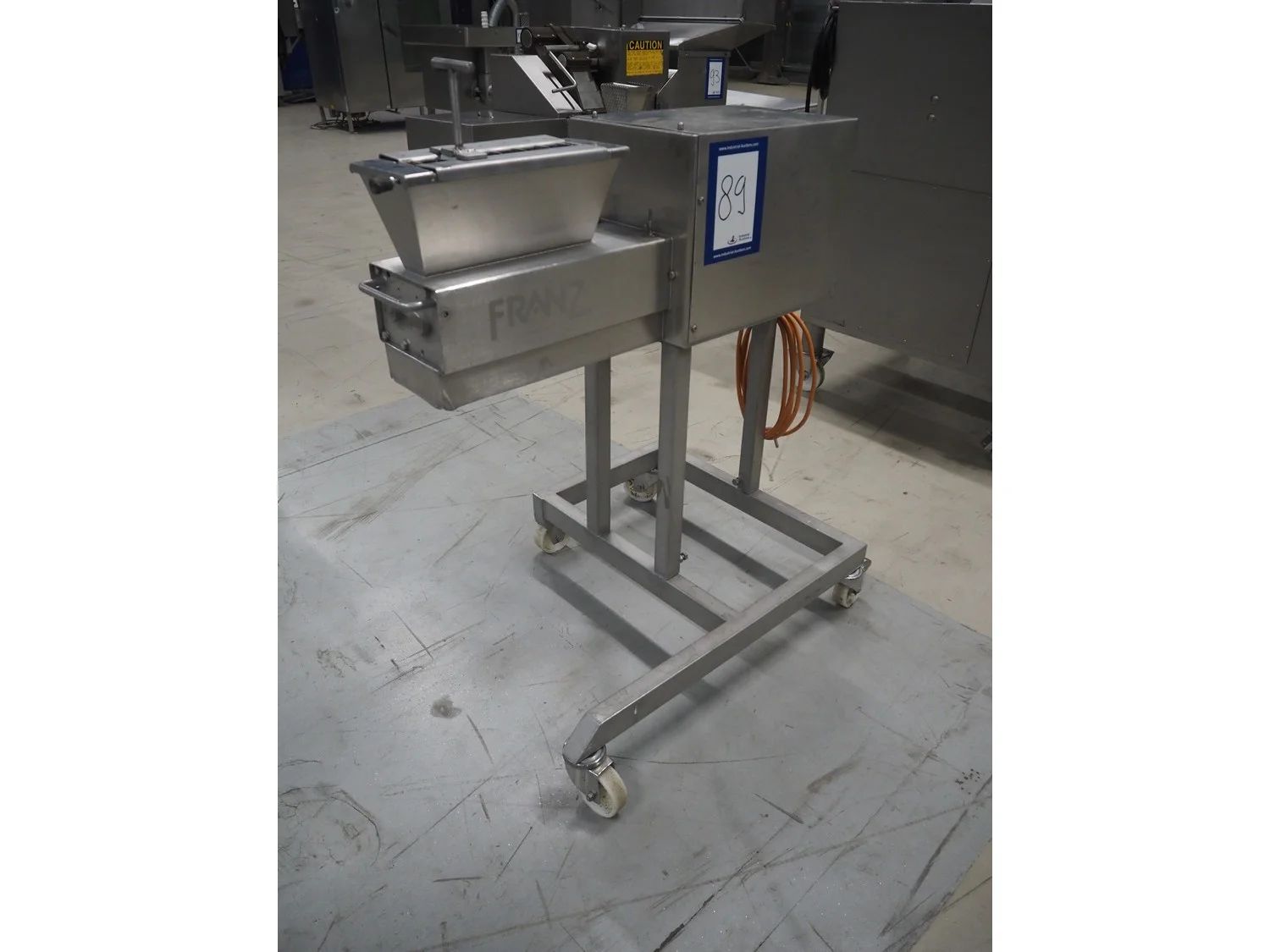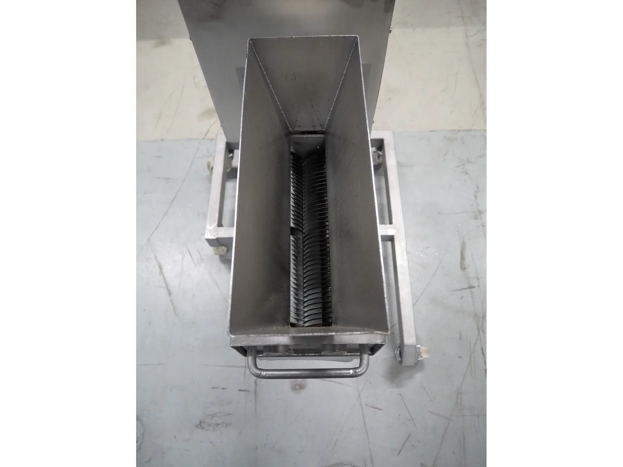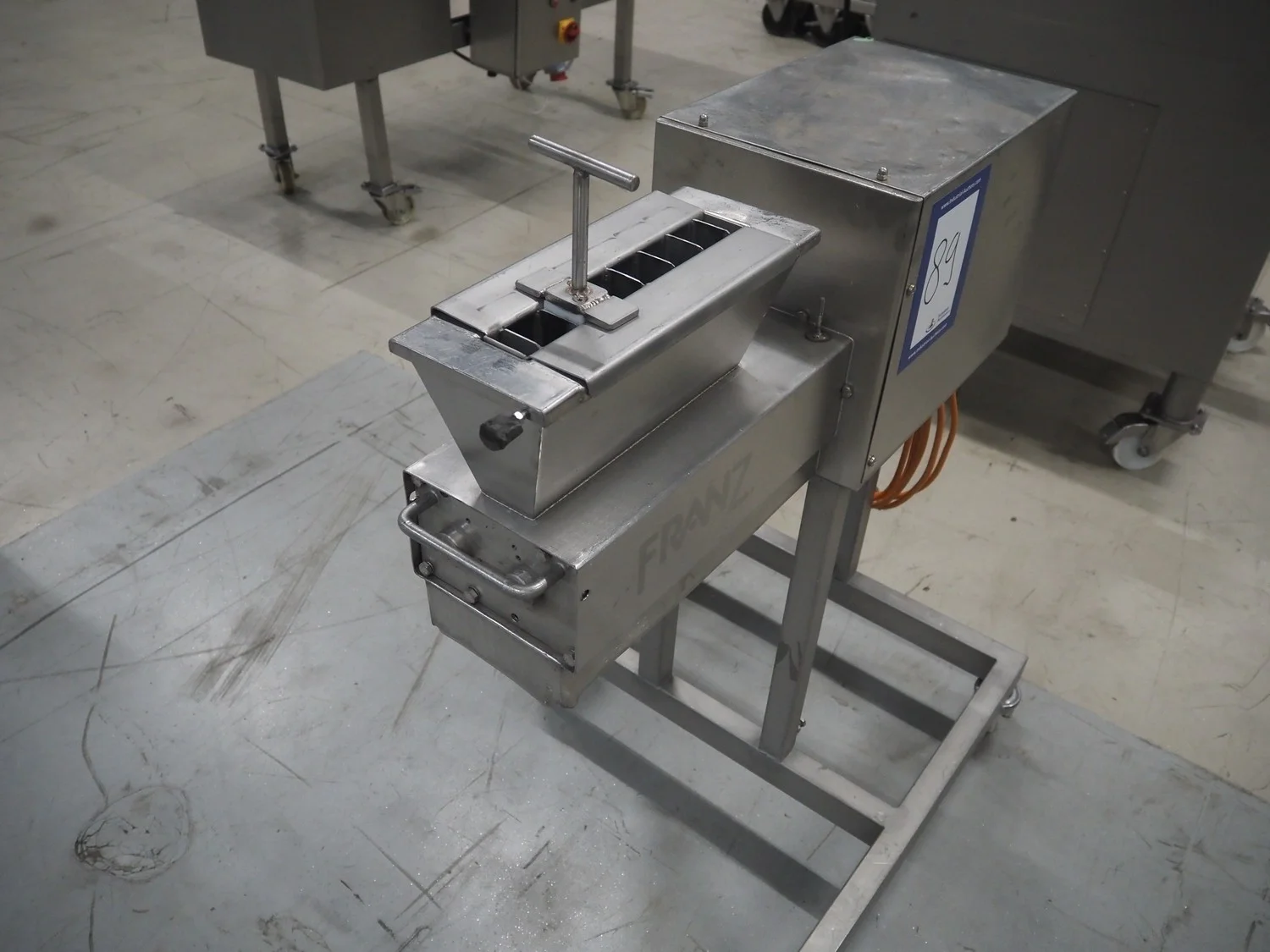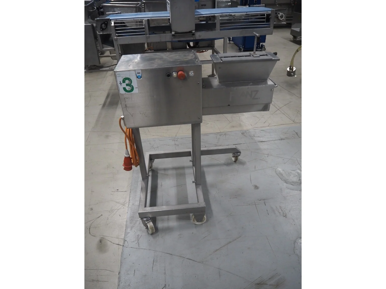 Franz mobile strip cutter, type: MST.64.300, machine number: 02.04.6430064, year of construction: 2002, 400 V, 50 Hz, 1.1 kW, (2x) 40 knives, distance between knives: 10 mm, total dimensions: 950 mm x 700 mm x 1000 mm.