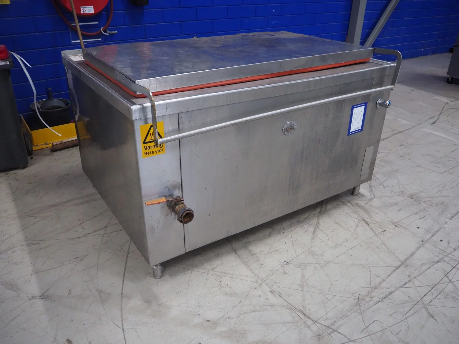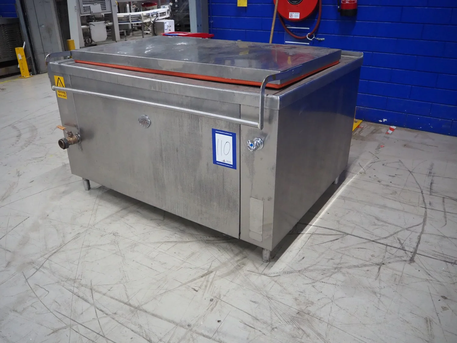Bastra cooking vessel, type: 8110, year of construction: 2006, 230 V, 50 Hz, 1.5 kW, volume: 500 liter, gas heated, dimensions: 1700 mm x 1350 mm x 1100 mm.