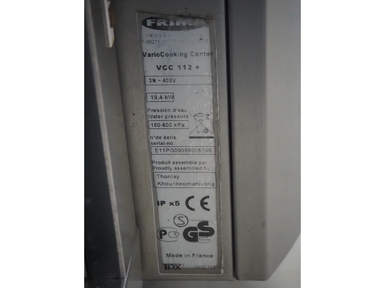 Frima VarioCooking Center, model: VCC 112+, serial number: E11PG09058005166, 400 V, 3 Ph, 19.4 kW, dimensions: 1200 mm x 800 mm x 1050 mm.