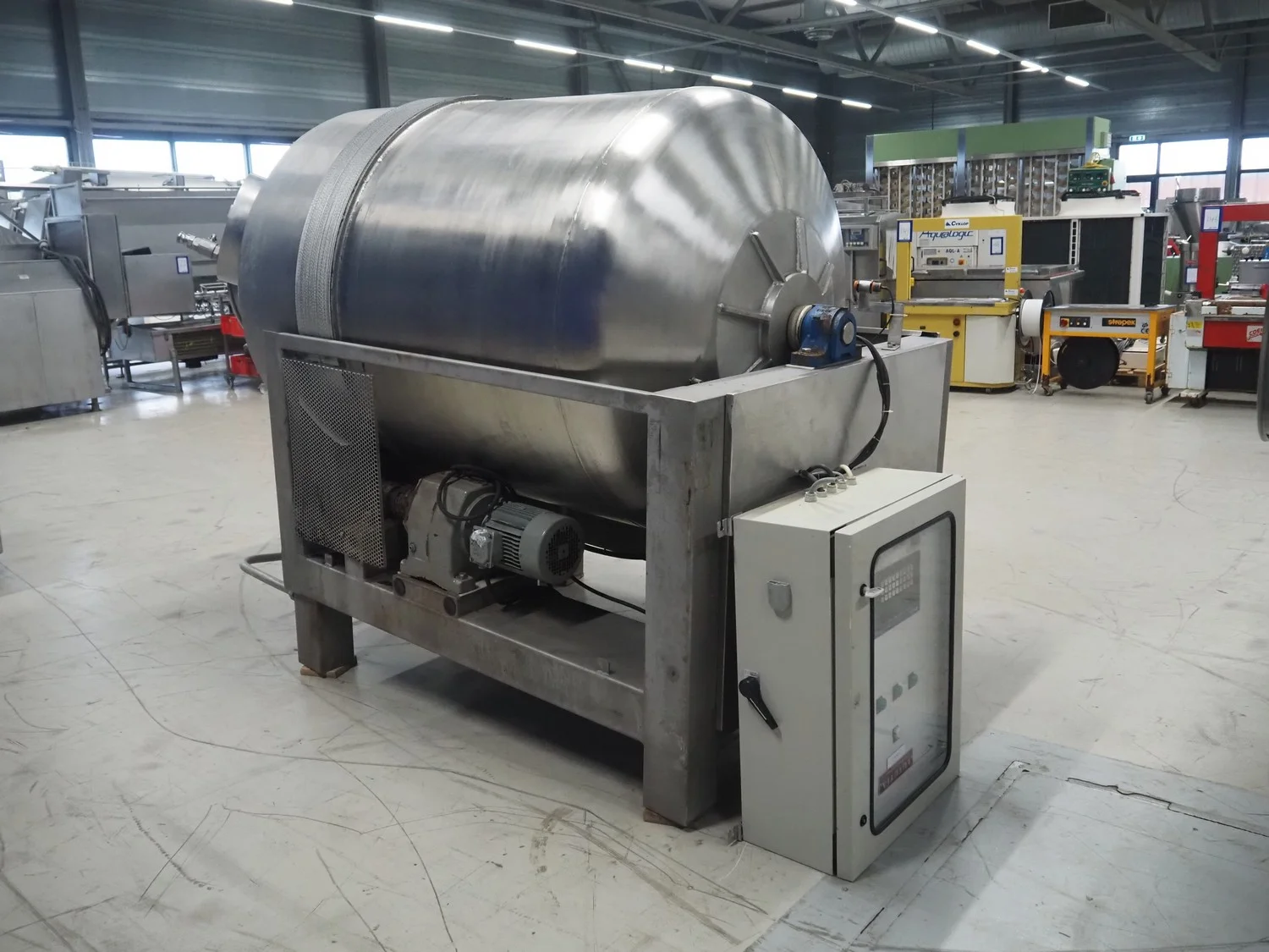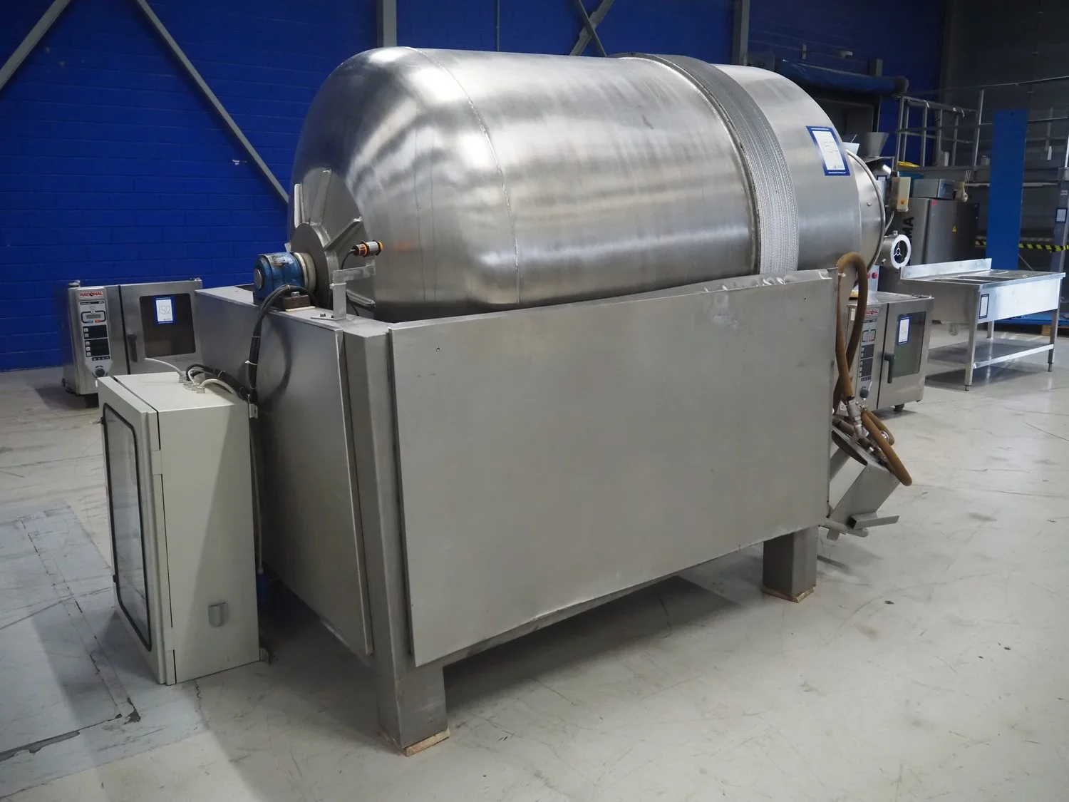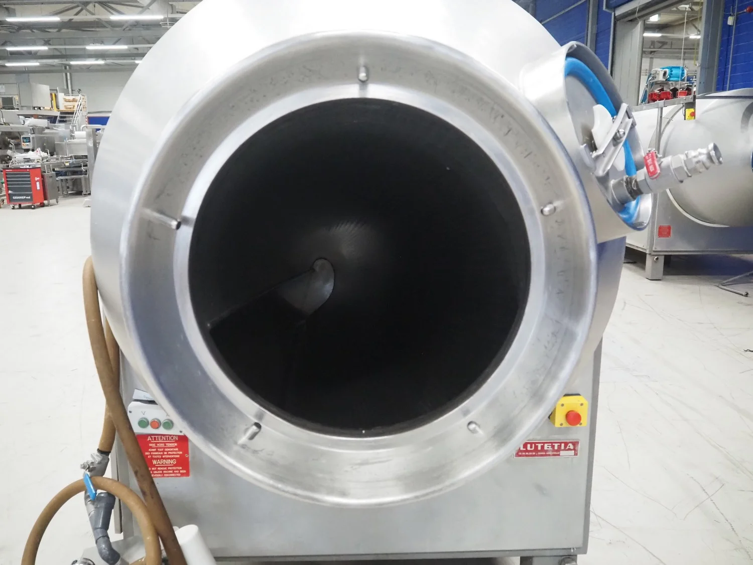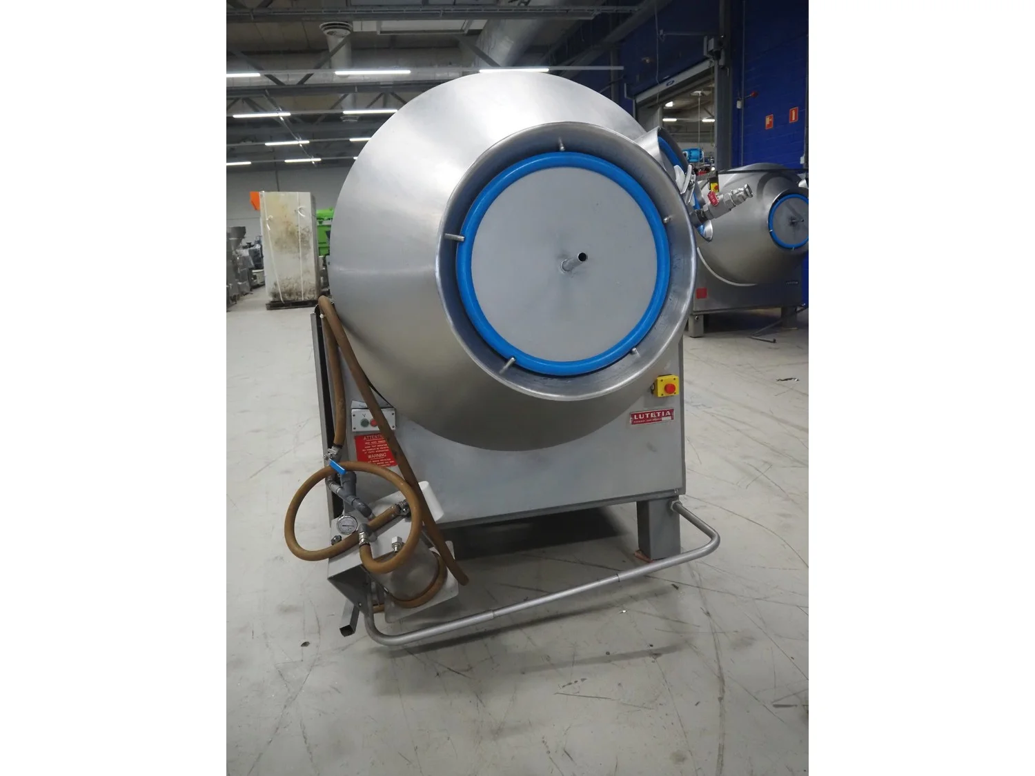 Lutetia vacuum tumbler, number: 6772, inside dimensions: Ø 1150 mm x 1800 mm, total dimensions: 3000 mm x 1500 mm x 2000 mm. Technical condition unknown, without vacuum pump.
