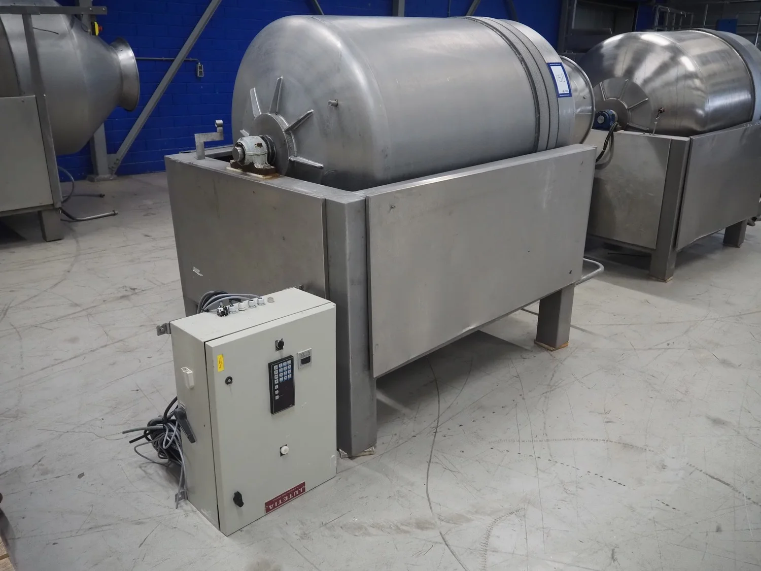 Lutetia vacuum tumbler, number: 7581, inside dimensions: Ø 1000 mm x 1500 mm, total dimensions: 2600 mm x 1400 mm x 1800 mm. Technical condition unknown, without vacuum pump.
