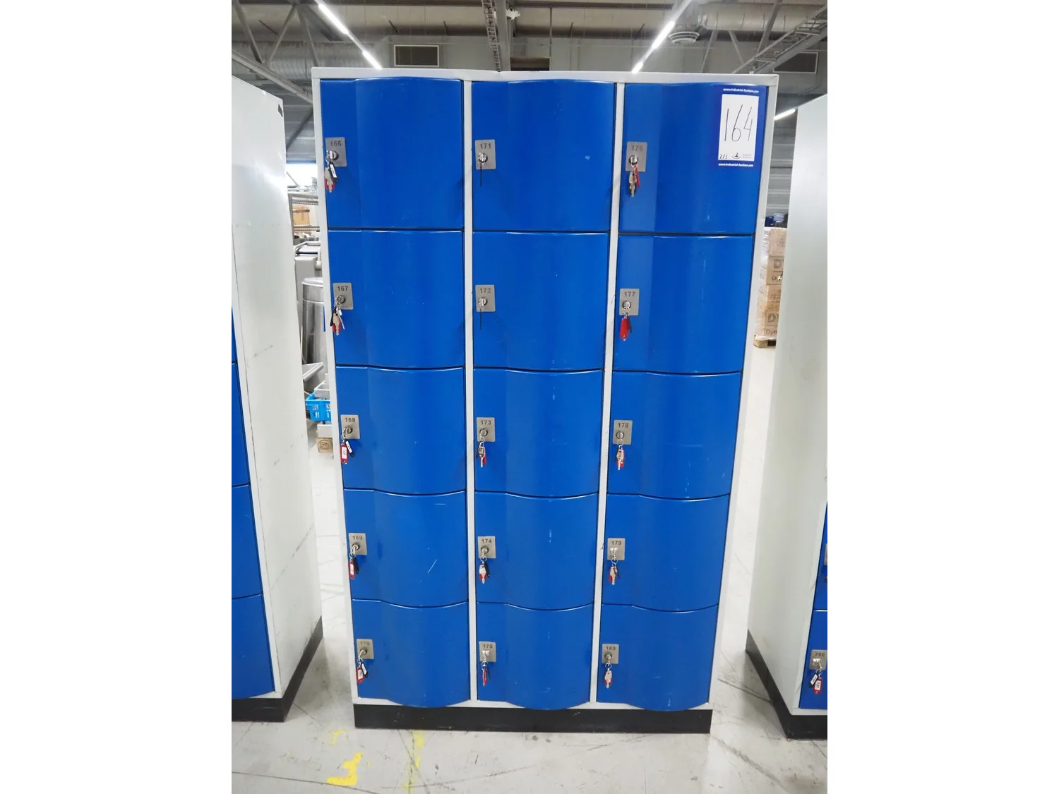 3 steel 15-door lockers, dimensions: (3x) 1500 mm x 500 mm x 2000 mm.