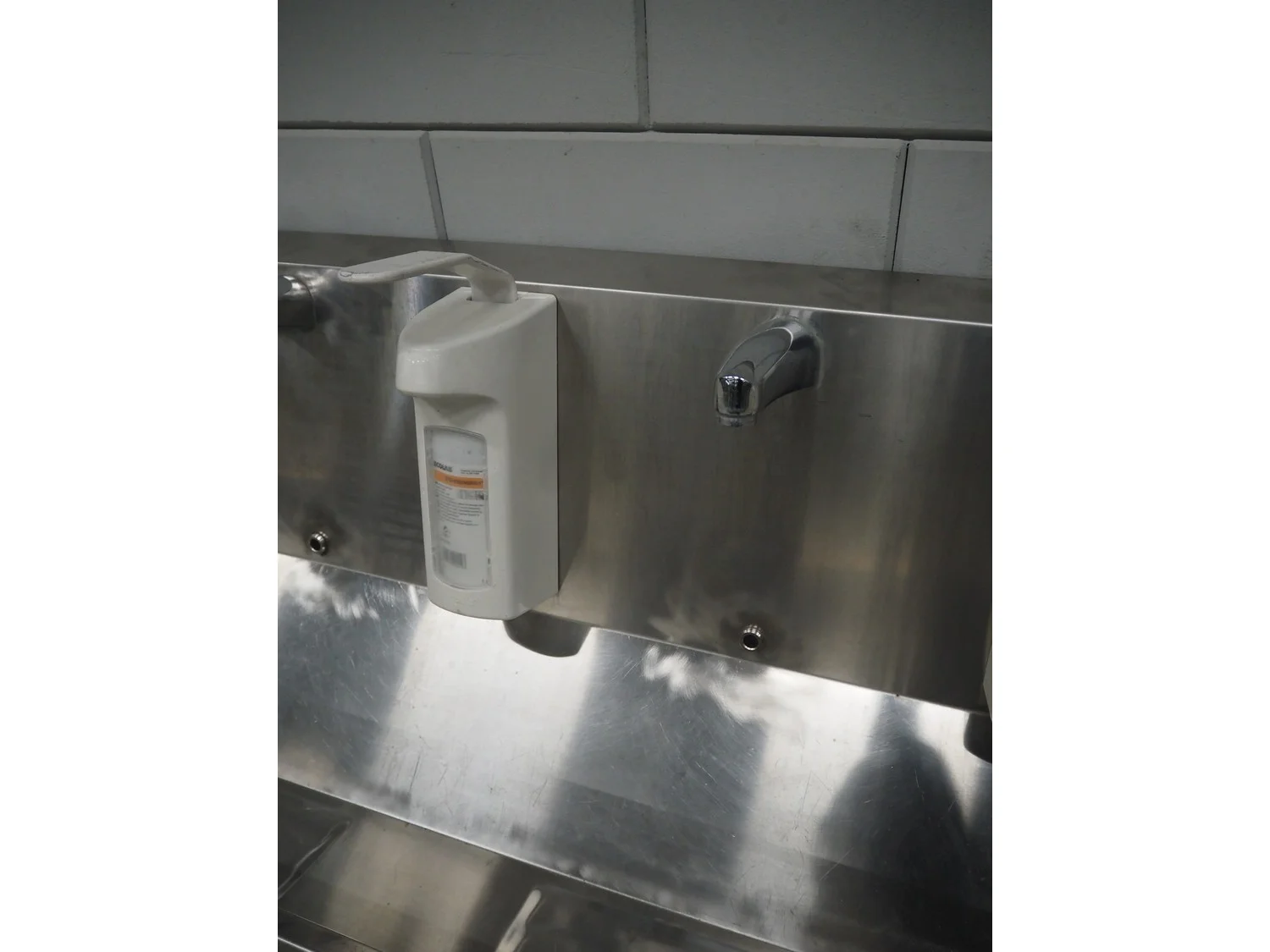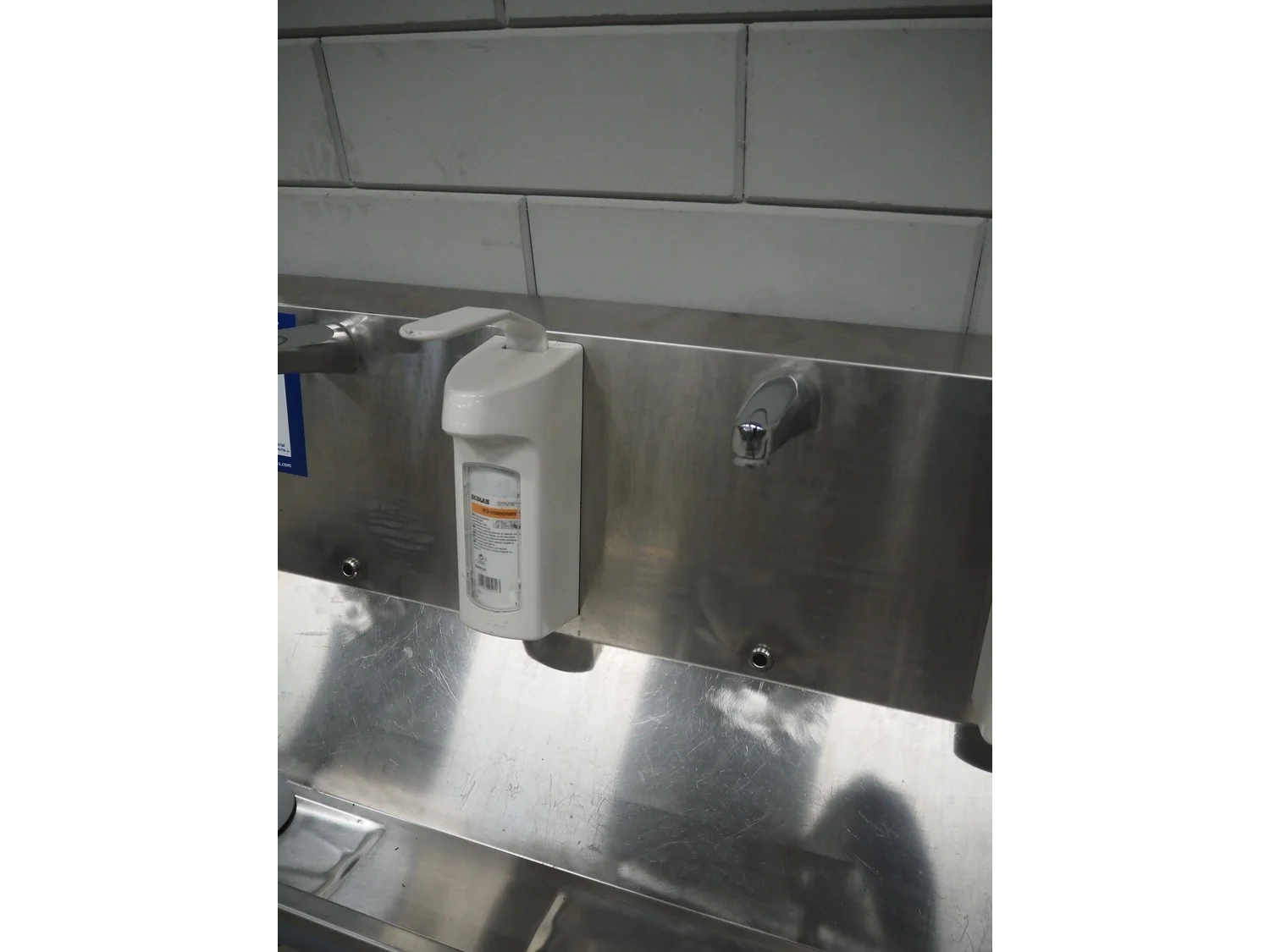S/s sink with 4 faucets and 3 soap dispensers, dimensions: 2000 mm x 460 mm x 750 mm.