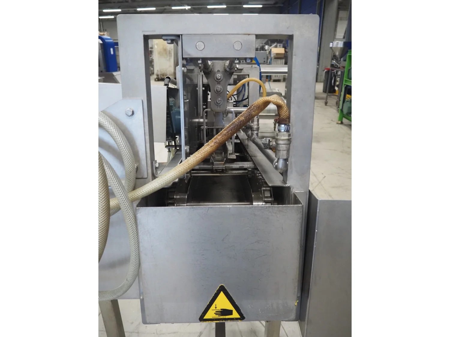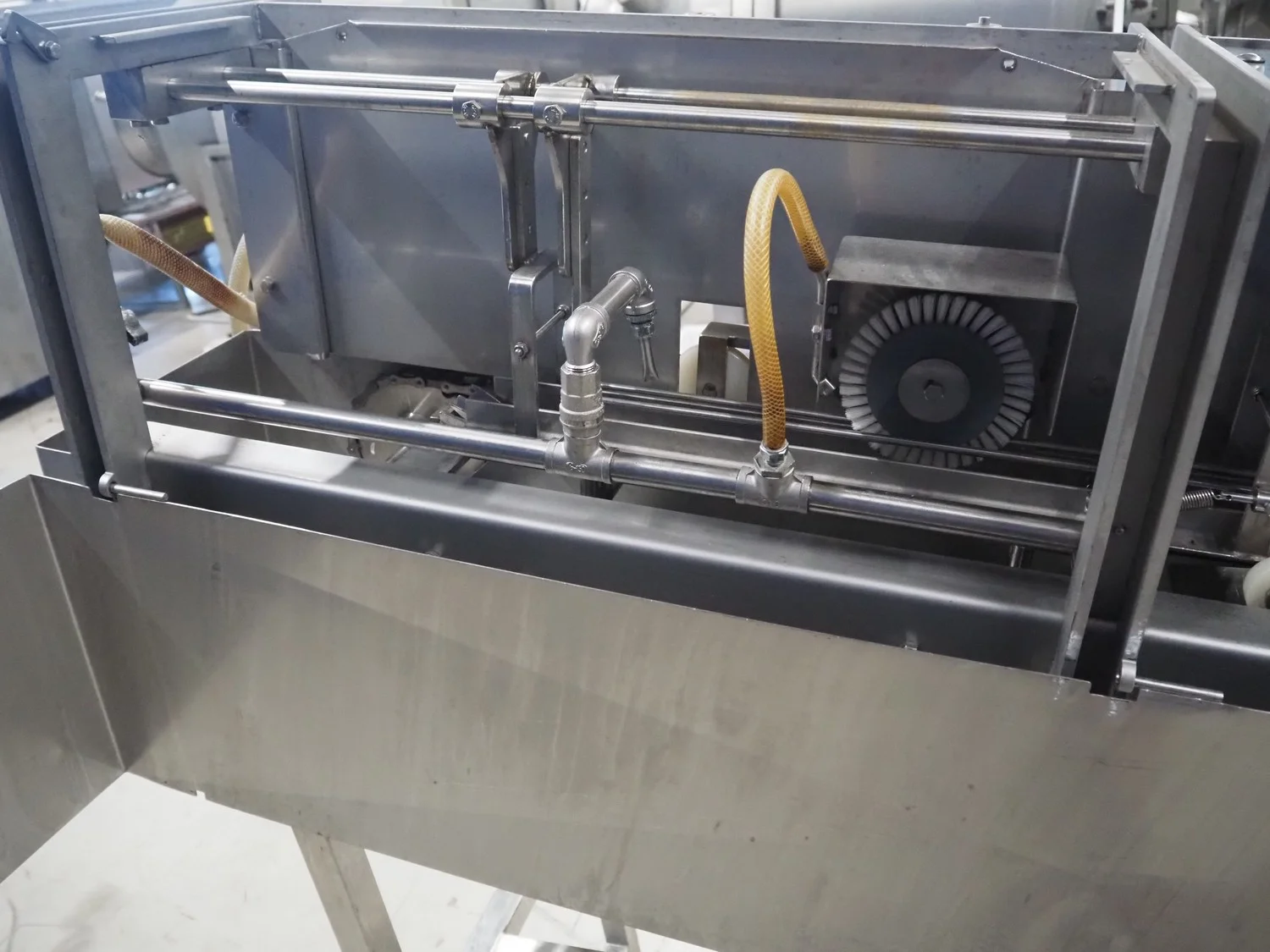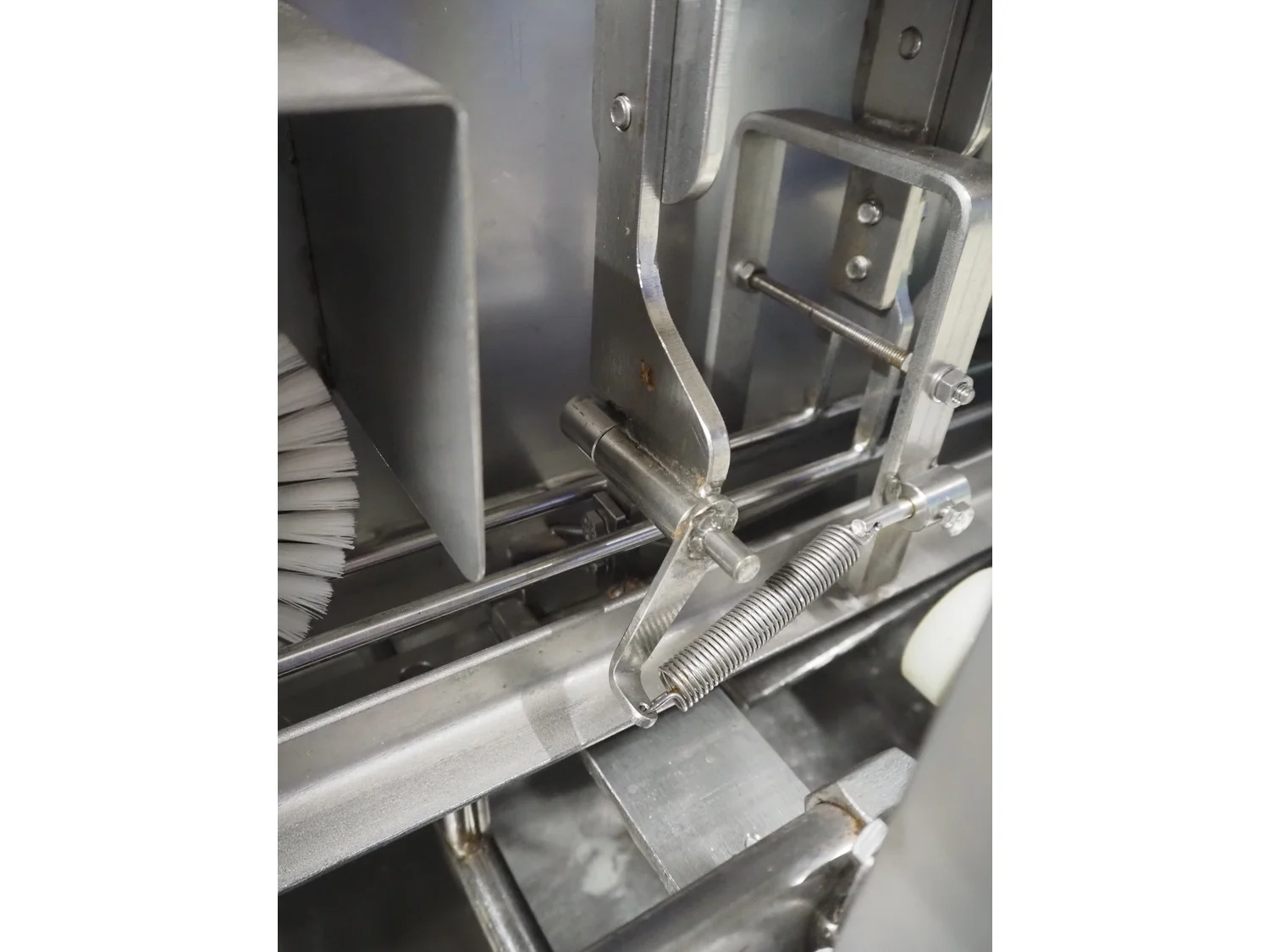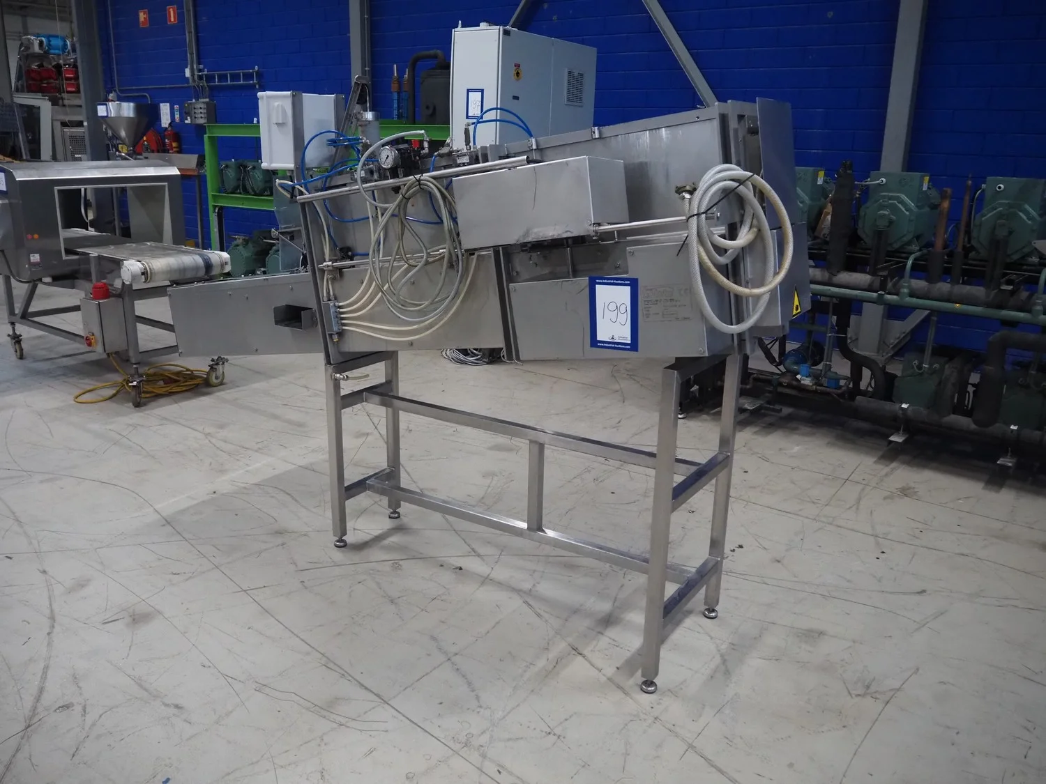 Boleto trout gutting machine, type: SM44, serial number: 44, year of construction: 2008, s/s conveyor with holders for fish, belt width: 90 mm, total dimensions: 2600 mm x 700 mm x 1770 mm.