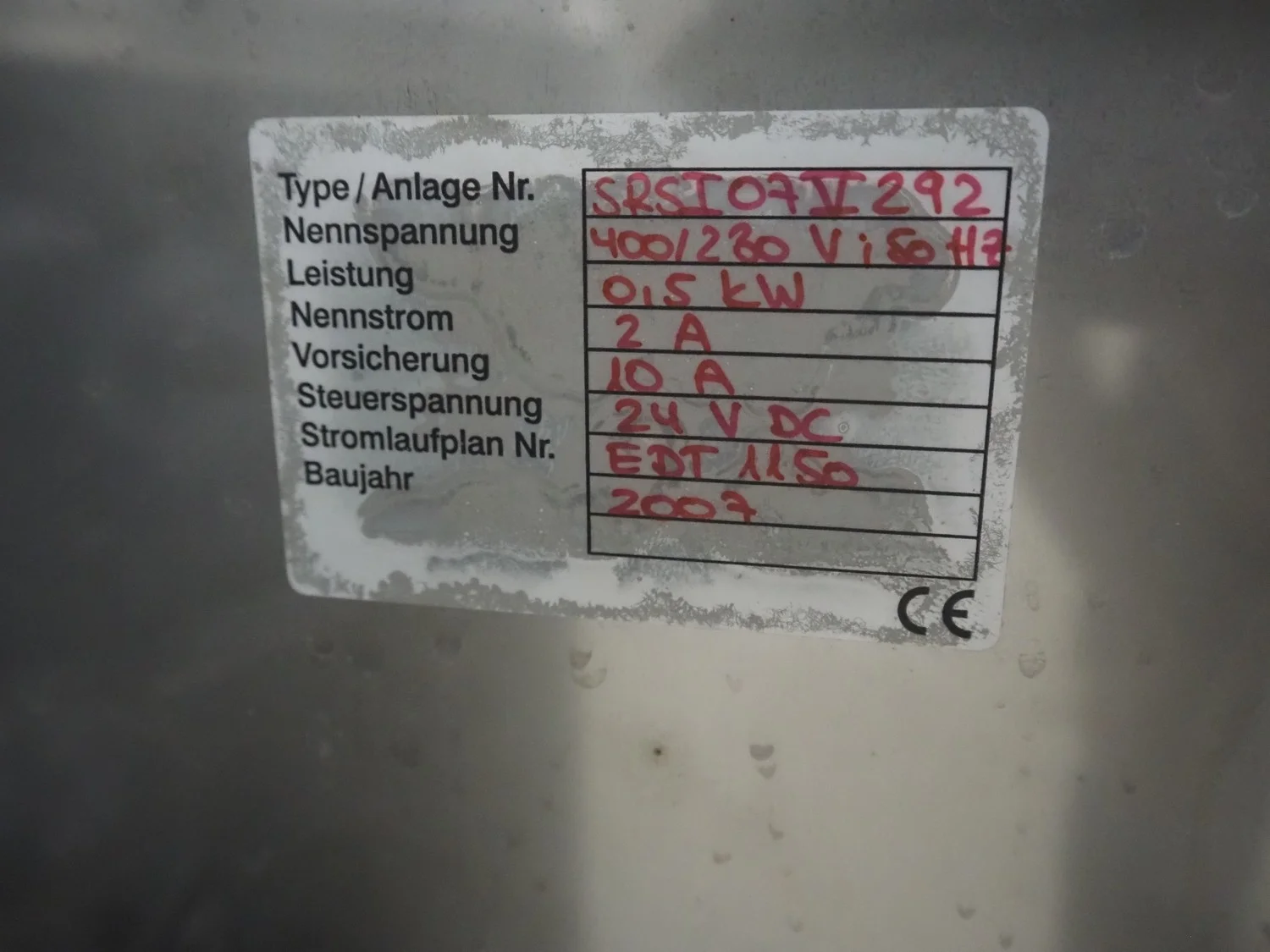 EDT apron cleaning machine, type: SRSI07, number: 292, year of construction: 2007, 400 V, 1 Ph, 50 Hz, 2/10 A, 0.5 kW, brush length: 35 mm, total dimensions: 1420 mm x 480 mm x 980 mm.
