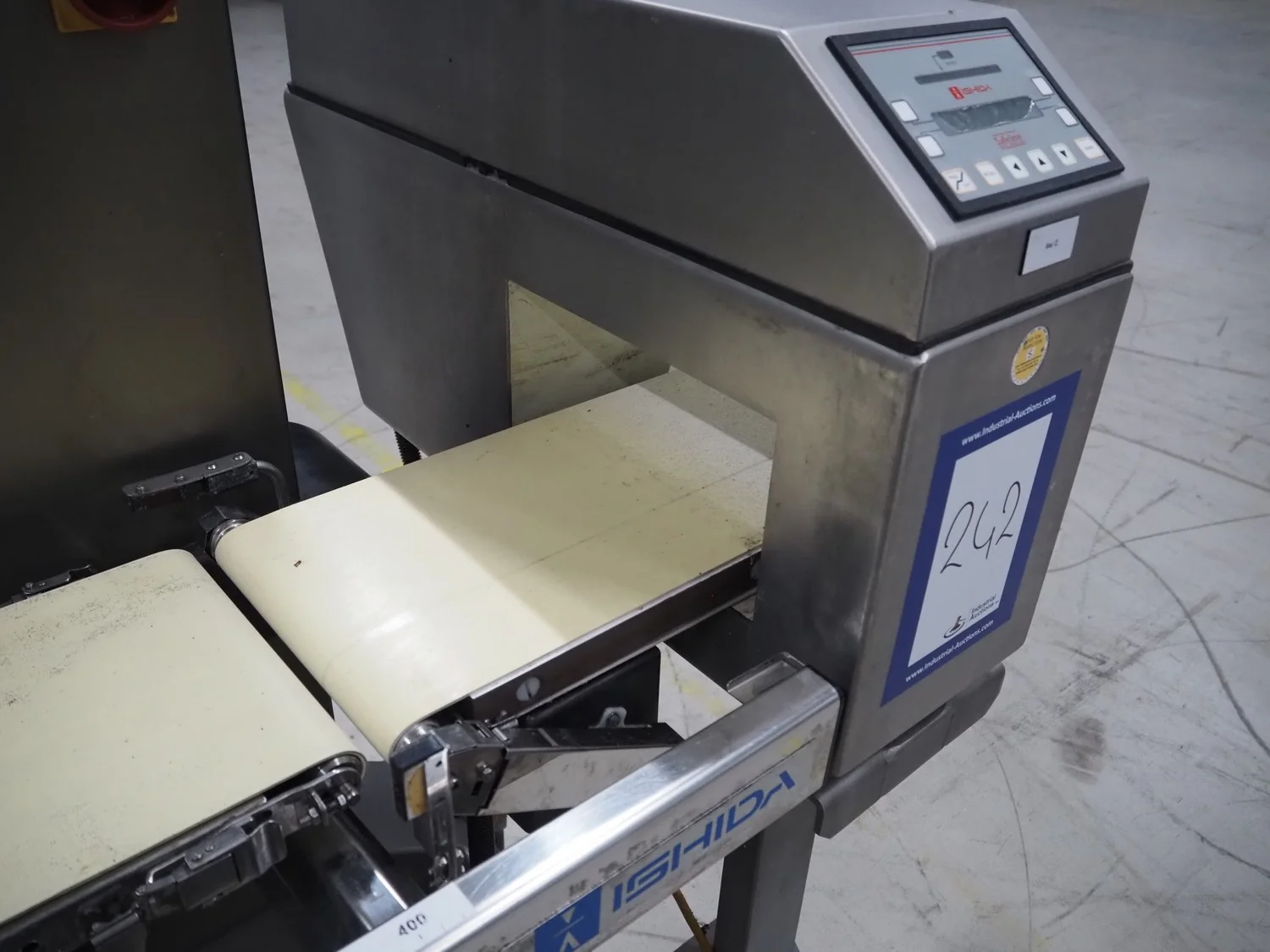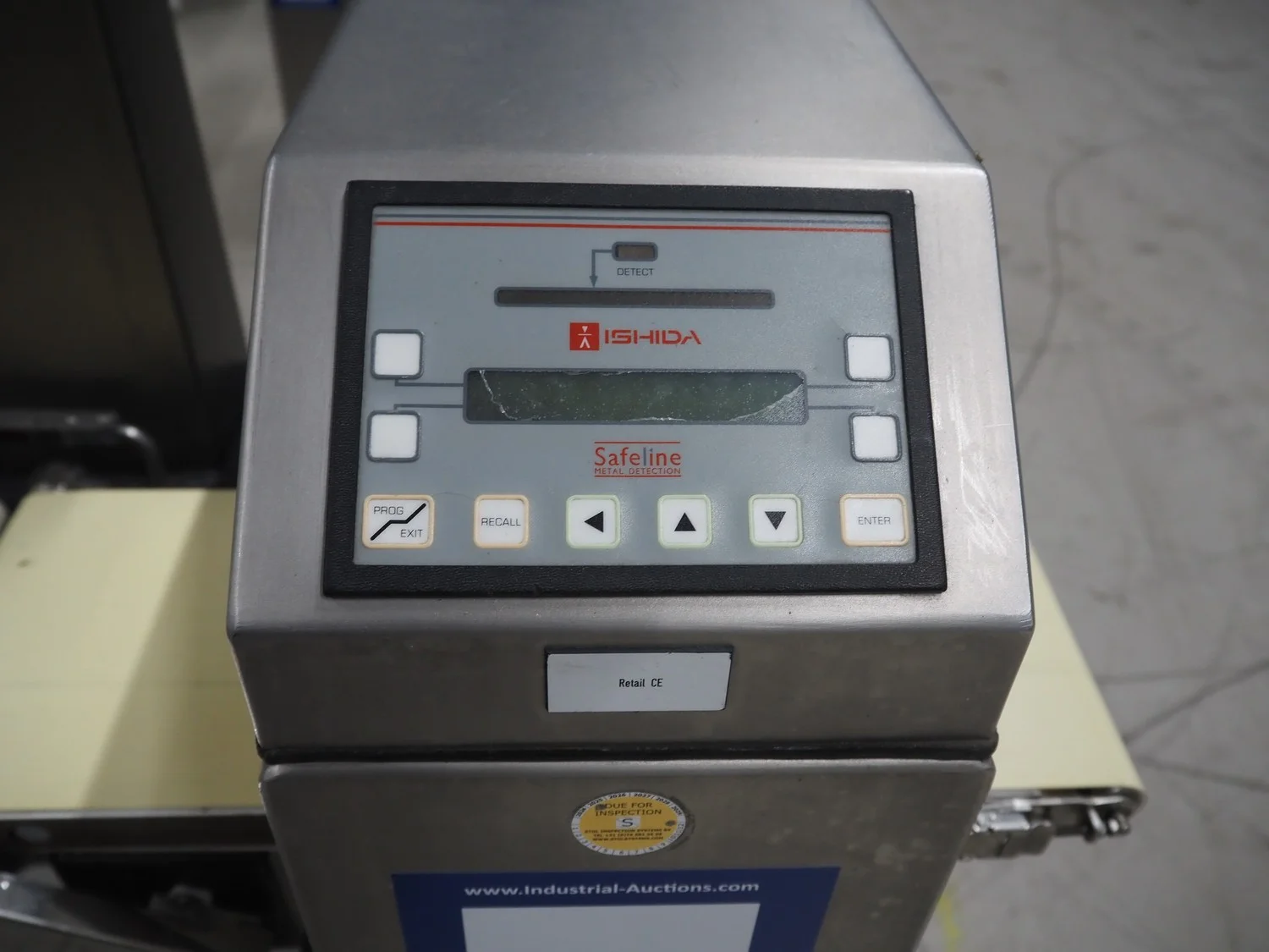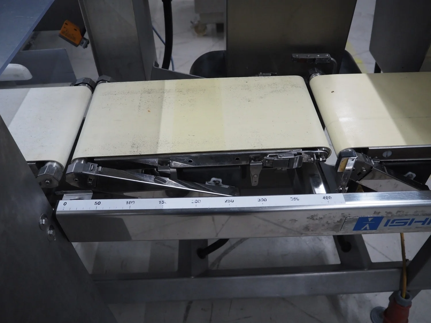 Ishida metal detector and checkweigher with rejecters, model: DACS-W-012-SB-WP-I, serial number: 551513, year of construction: 2001, 240 V, 1 Ph, 50 Hz, 2 A, clearance: 270 mm x 100 mm, plastic belt, belt width: (3x) 220 mm, total dimensions: 1670 mm x 1000 mm x 1470 mm.
