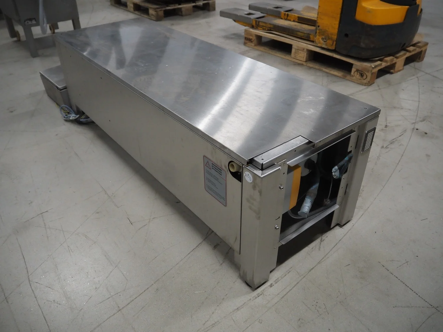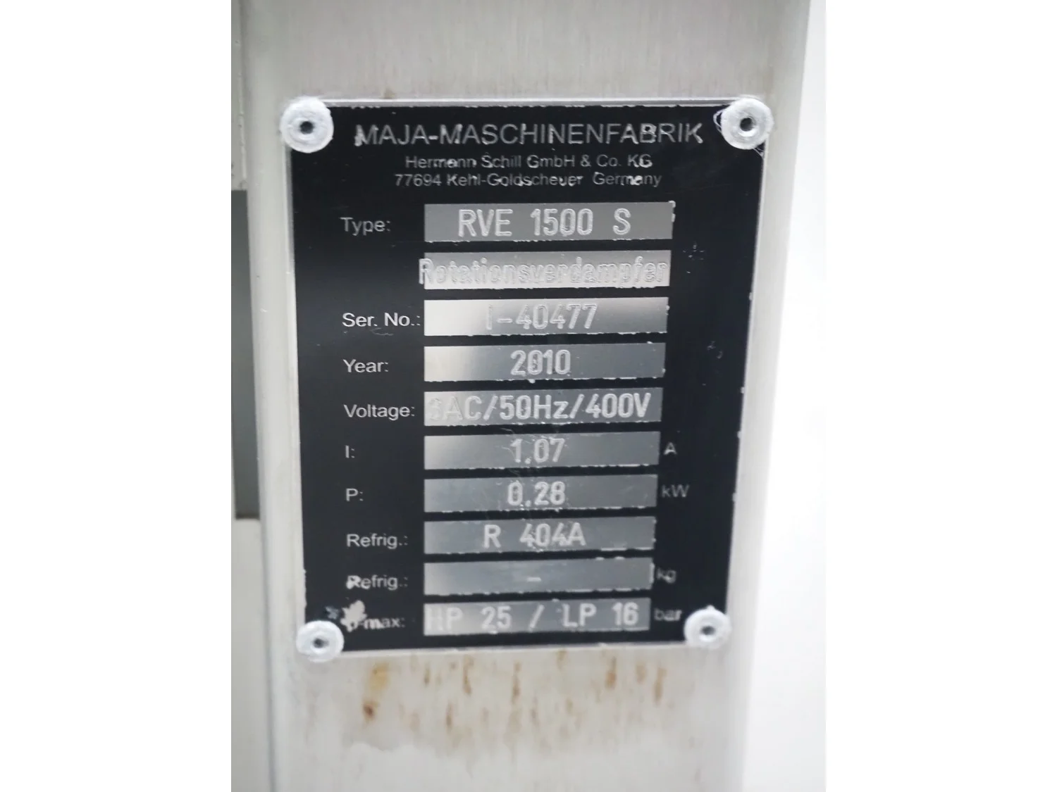 Maja Maschinen Fabrik GmbH flake ice machine, type: RVE 1500 S, serial number: I-40477, year of construction: 2010, 400 V, 3 Ph, 50 Hz, 1.07 A, 0.28 kW, refrigerant: R 404a, working width: 680 mm, total dimensions: 1550 mm x 550 mm x 500 mm.
