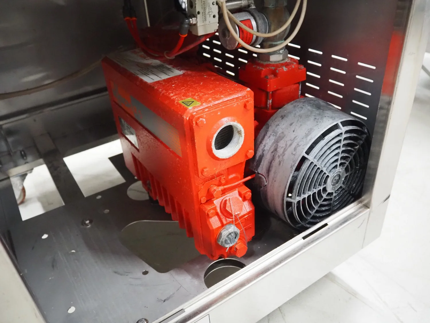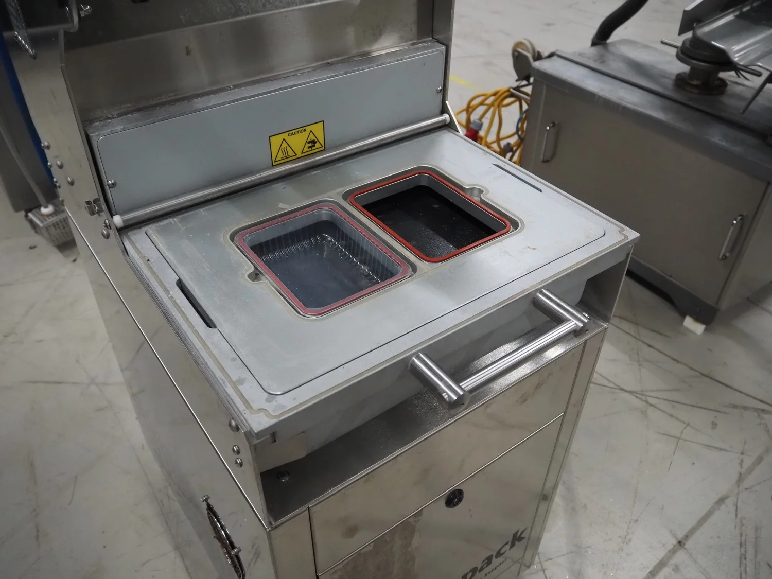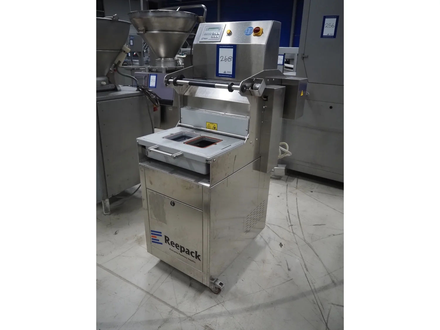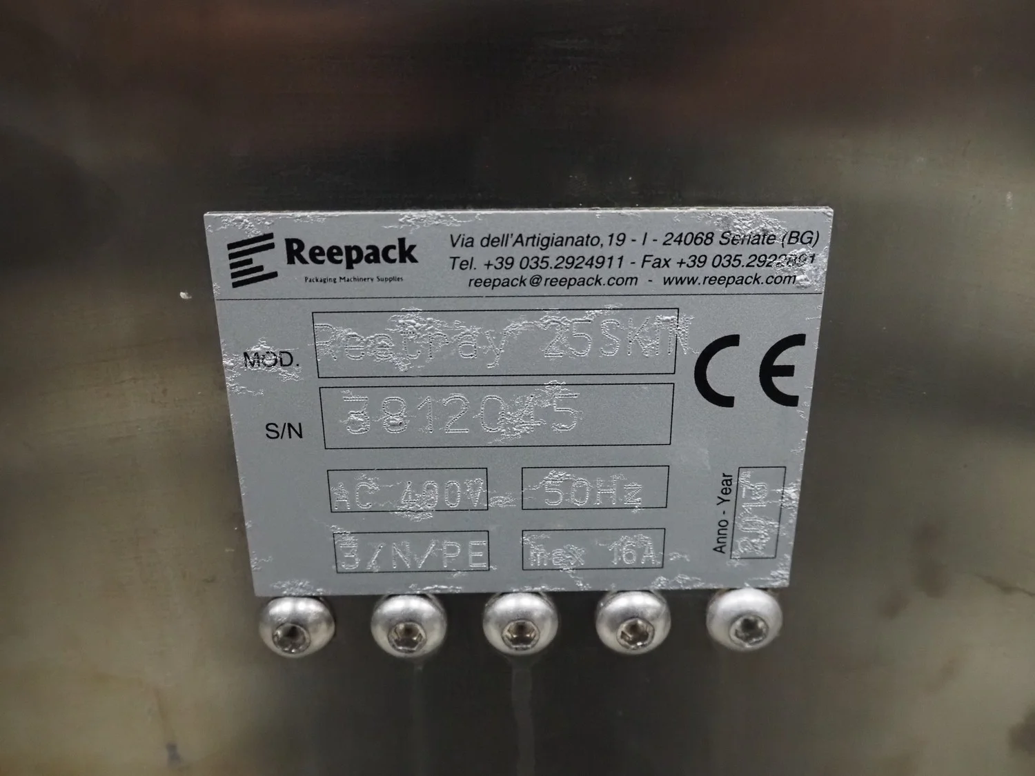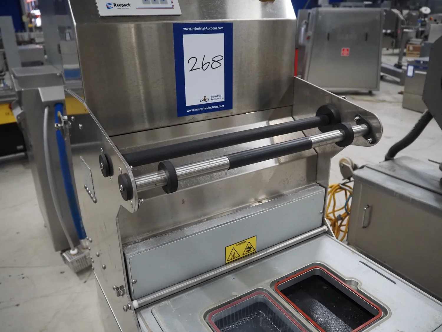 Reepack mobile traysealer, model: Reetray 25SKIN, serial number: 3812045, year of construction: 2013, 400 V, 3 Ph, 50 Hz, 16 A, dye: (2x) 175 mm x 130 mm, Busch vacuum pump, type: RA 0040 F 4S3, capacity: 40 m³ per hour, total dimensions: 1050 mm x 700 mm x 1600 mm.