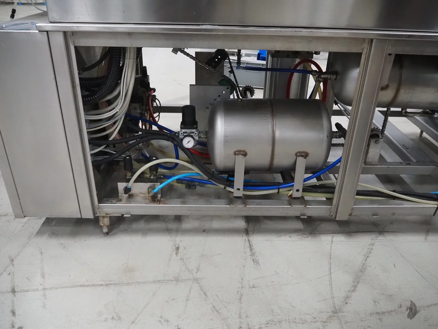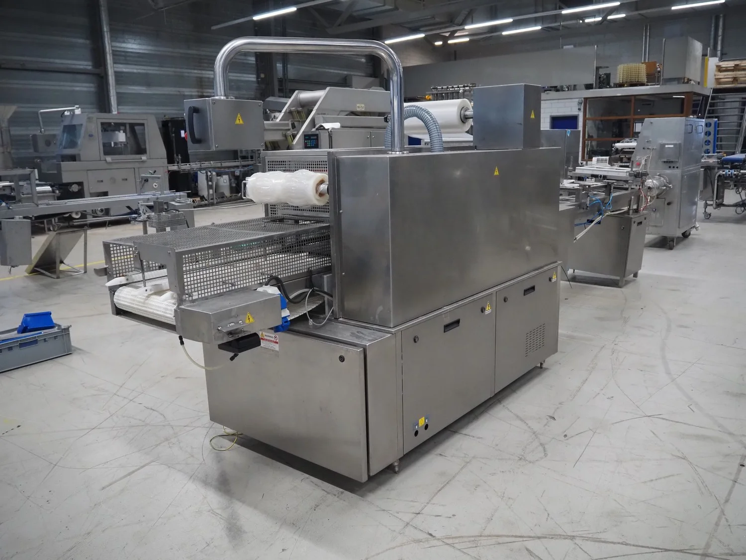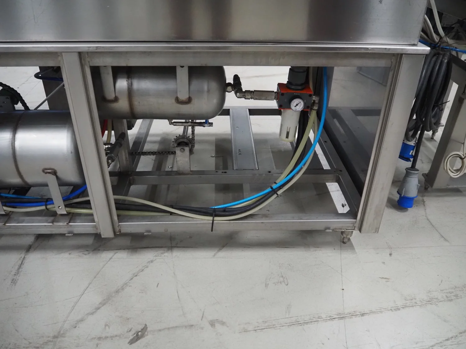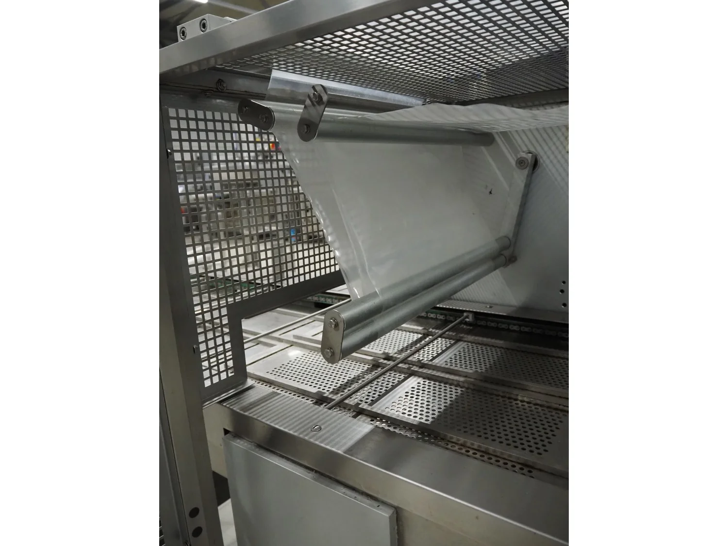 Polimoon traysealer, model: 1911VG, serial number: 1203007, year of construction: 2003, 220 V, 3 Ph, 50 Hz, 31 A, dye: (2x) 250 mm x 150 mm, film width: 430 mm, total dimensions: 5550 mm x 1000 mm x 1900 mm.