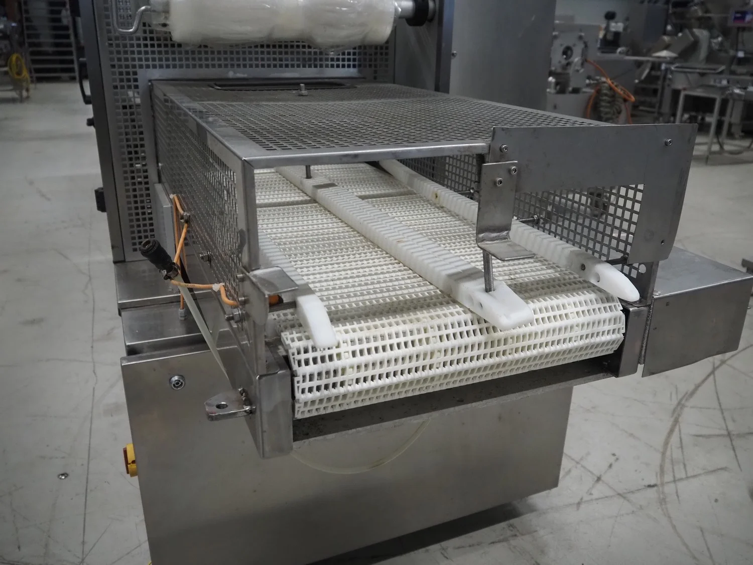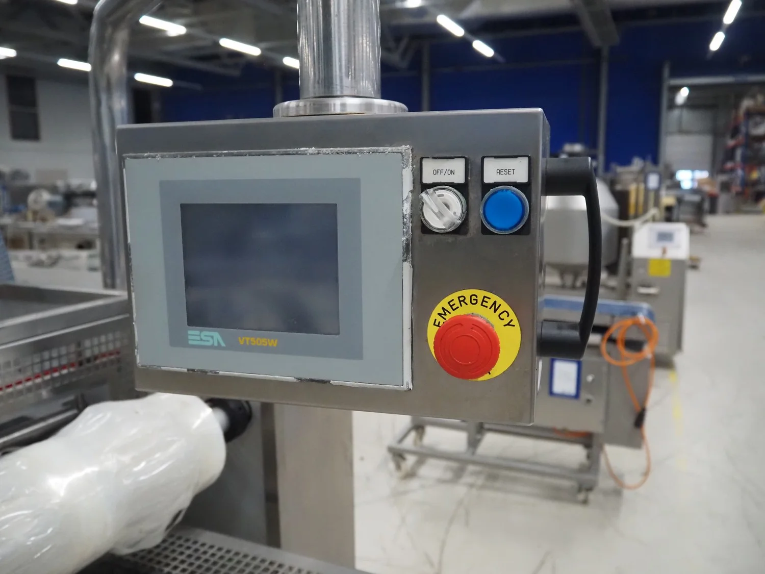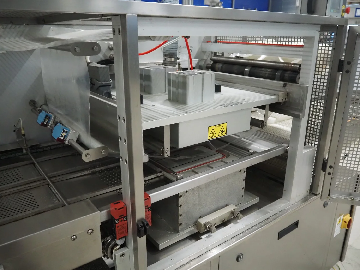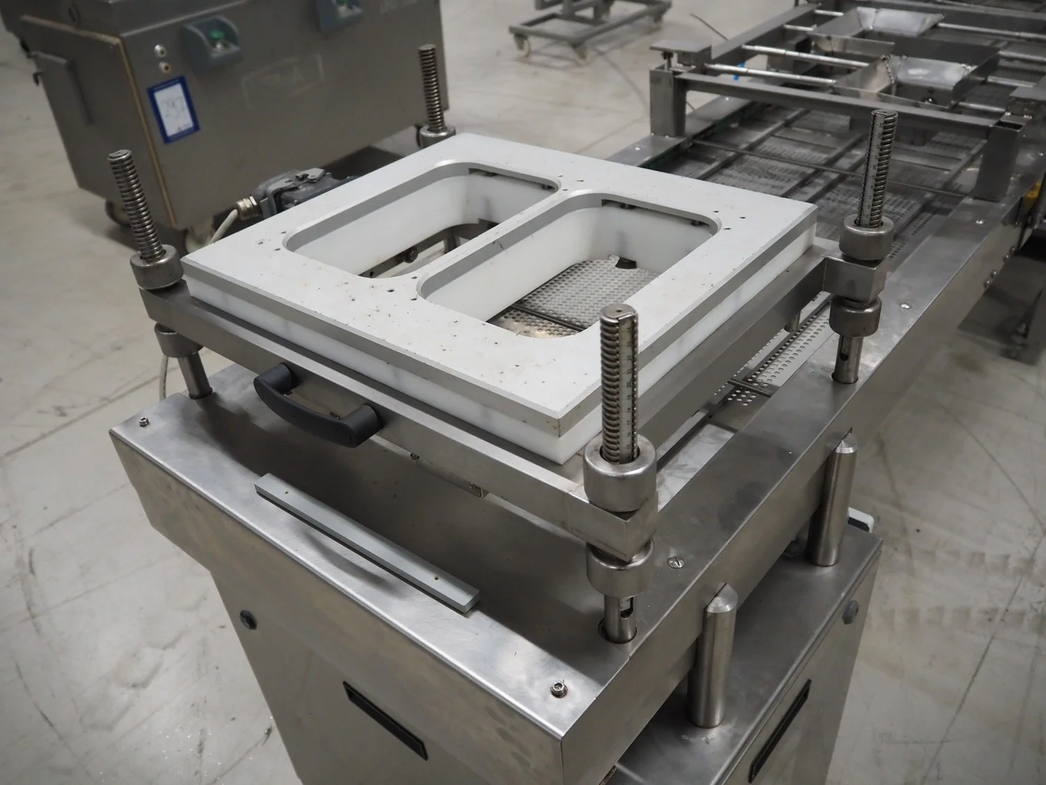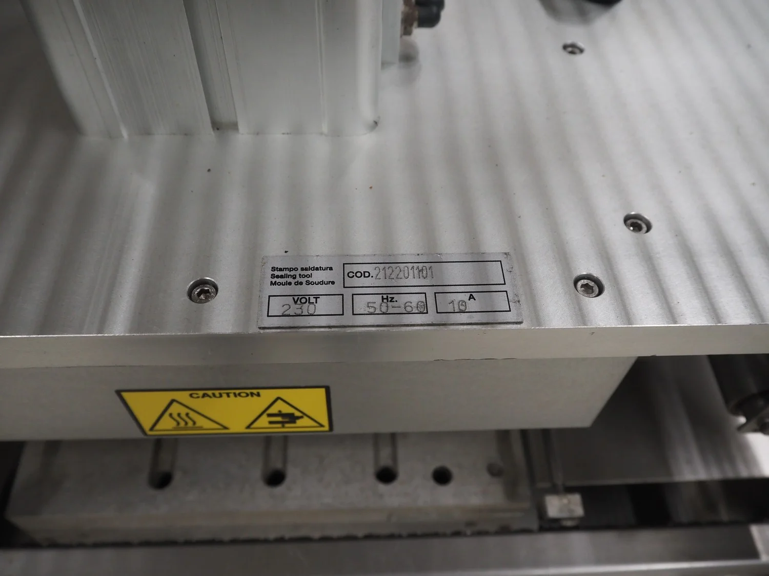 Polimoon traysealer, model: 1911VG, serial number: 1203007, year of construction: 2003, 220 V, 3 Ph, 50 Hz, 31 A, dye: (2x) 250 mm x 150 mm, film width: 430 mm, total dimensions: 5550 mm x 1000 mm x 1900 mm.