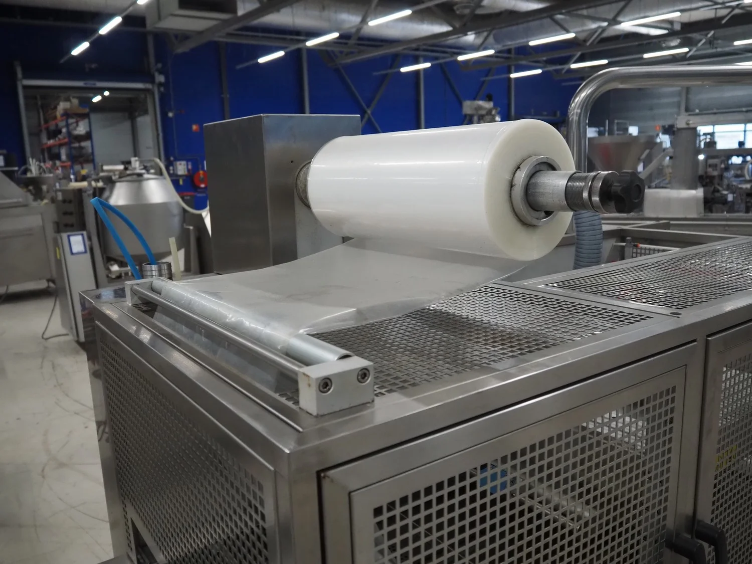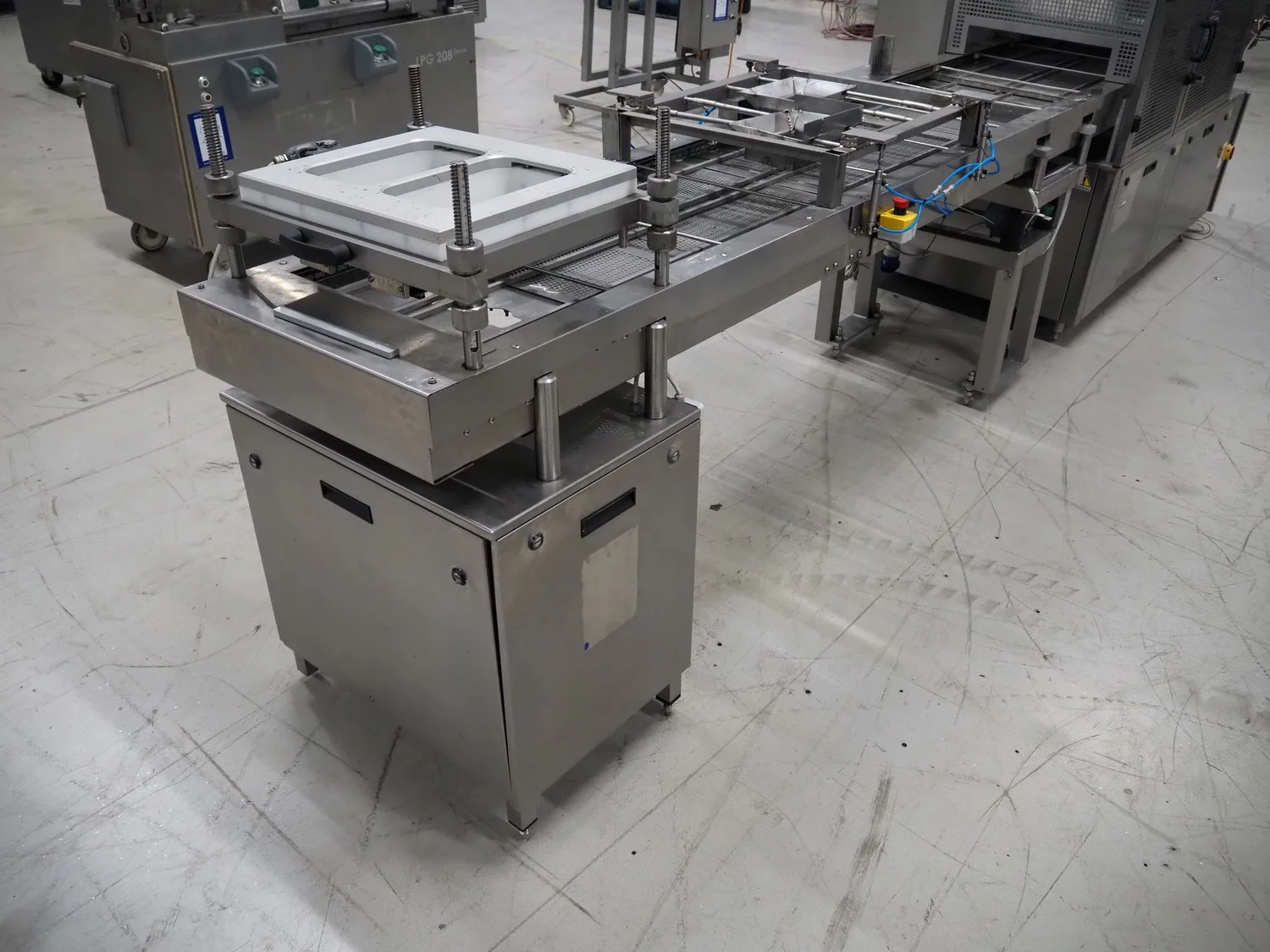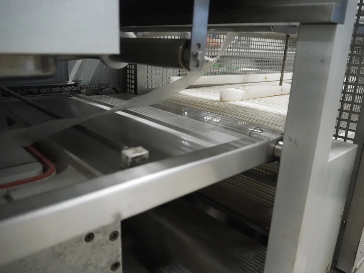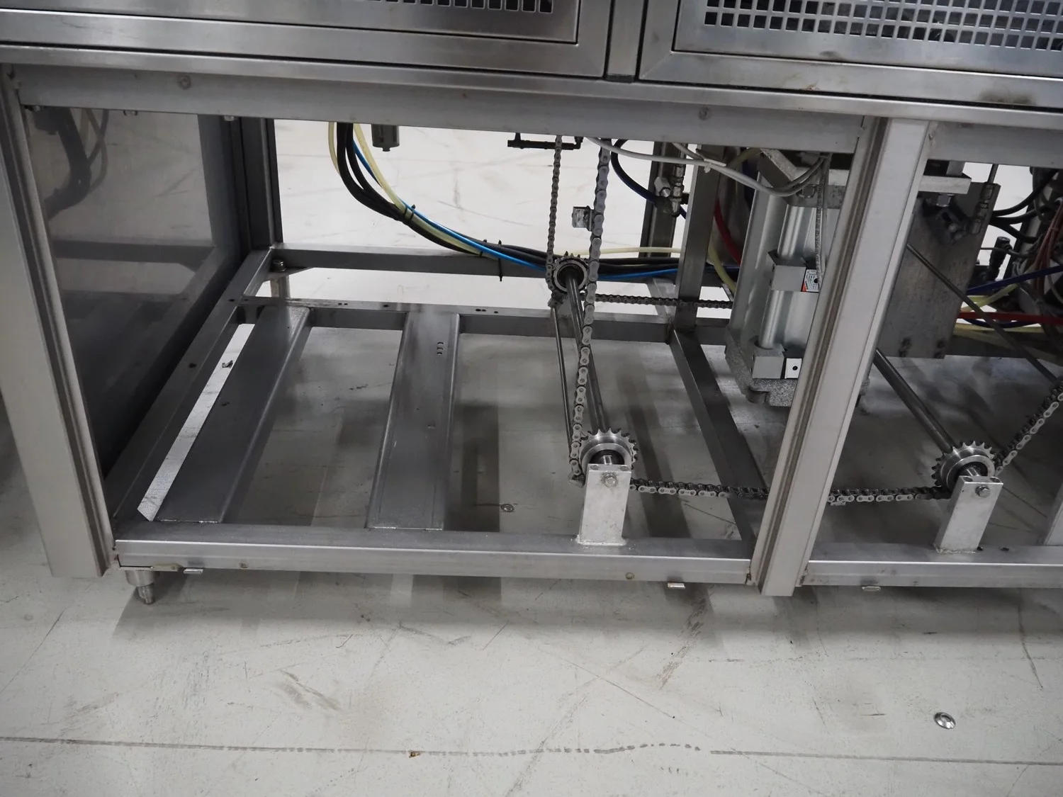 Polimoon traysealer, model: 1911VG, serial number: 1203007, year of construction: 2003, 220 V, 3 Ph, 50 Hz, 31 A, dye: (2x) 250 mm x 150 mm, film width: 430 mm, total dimensions: 5550 mm x 1000 mm x 1900 mm.