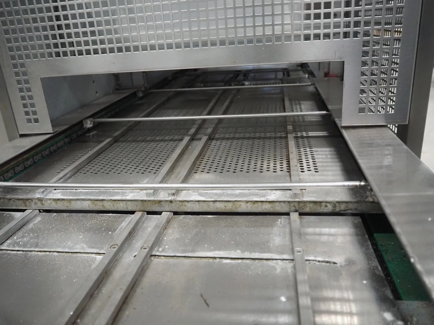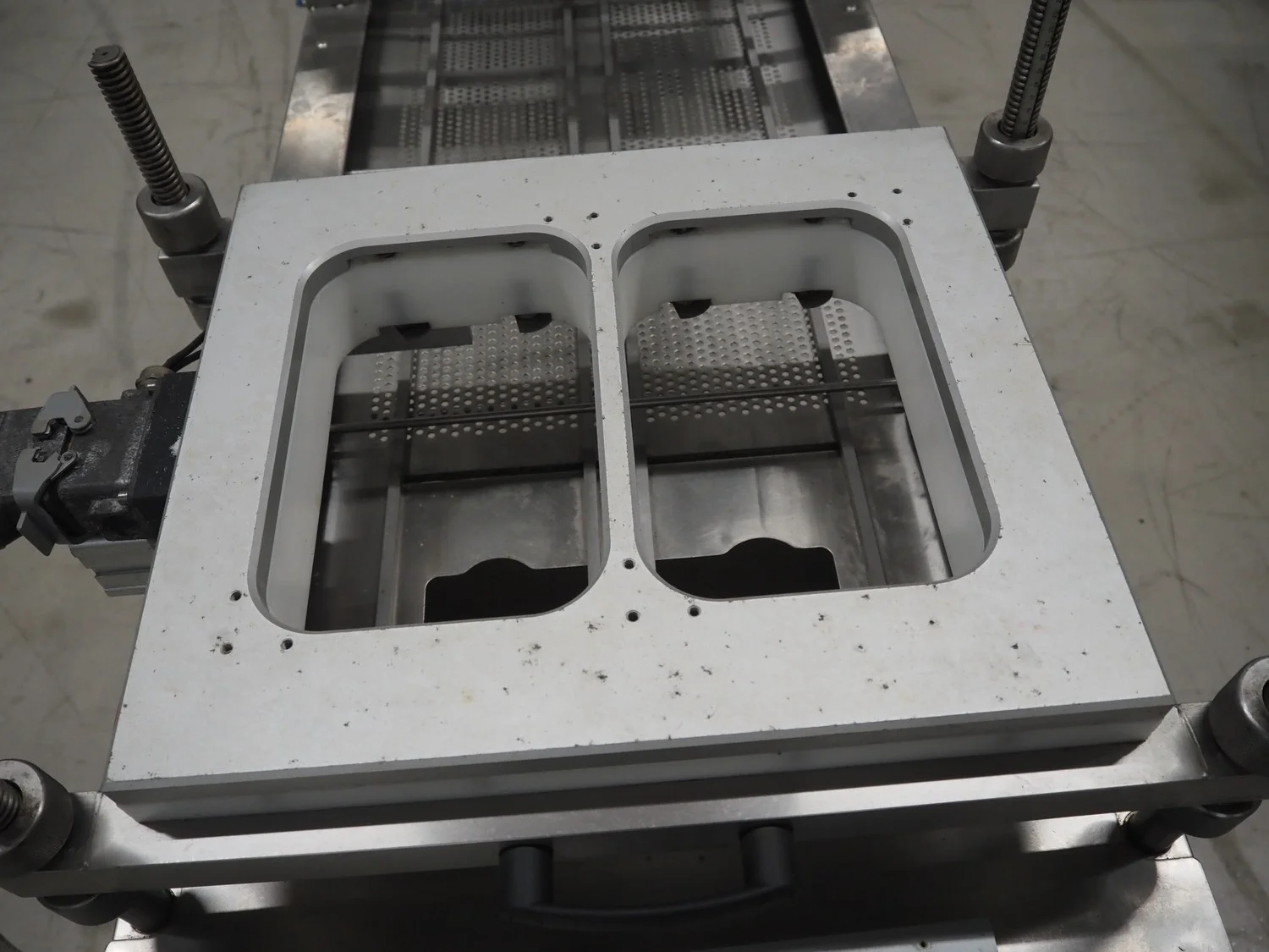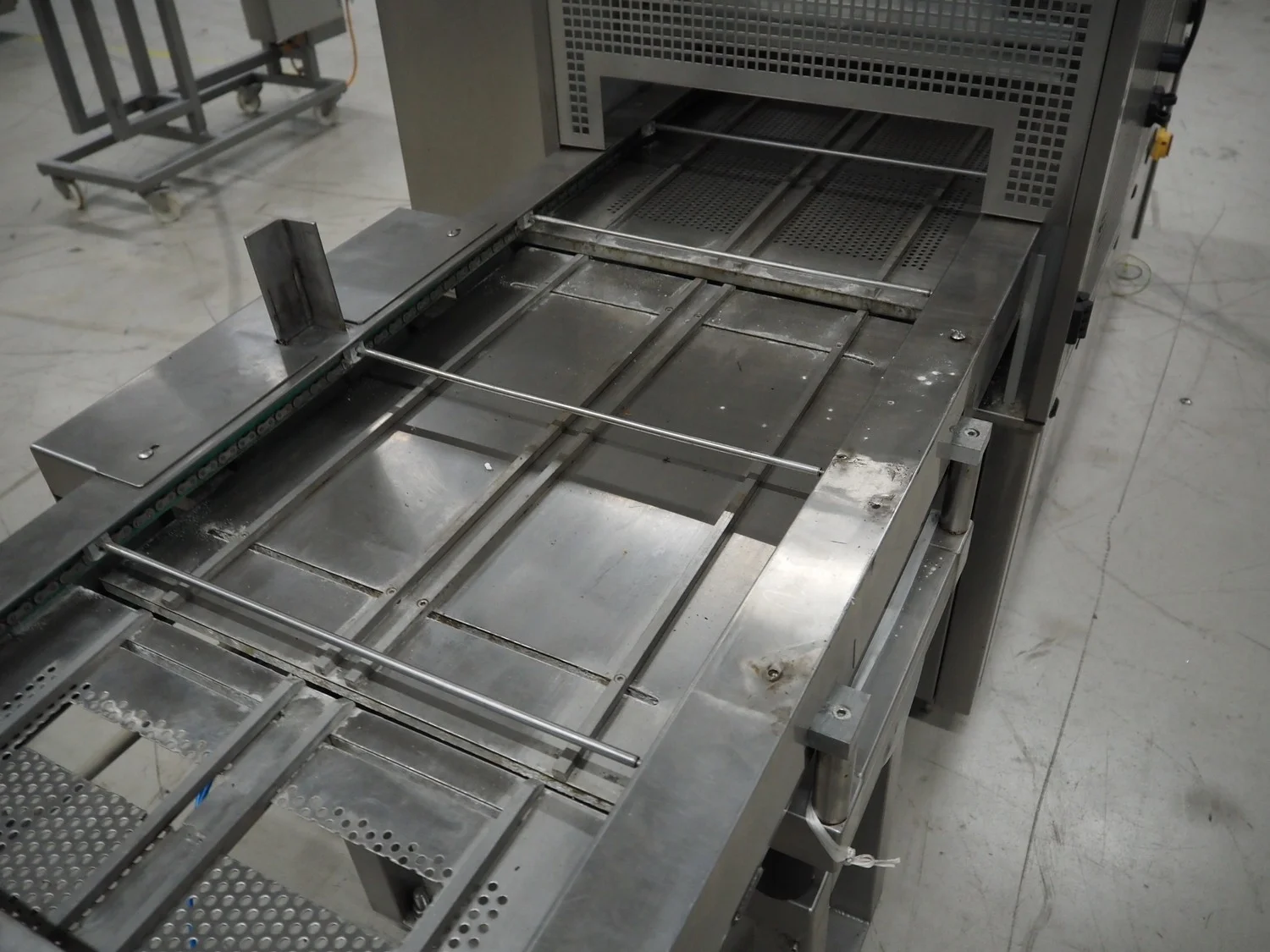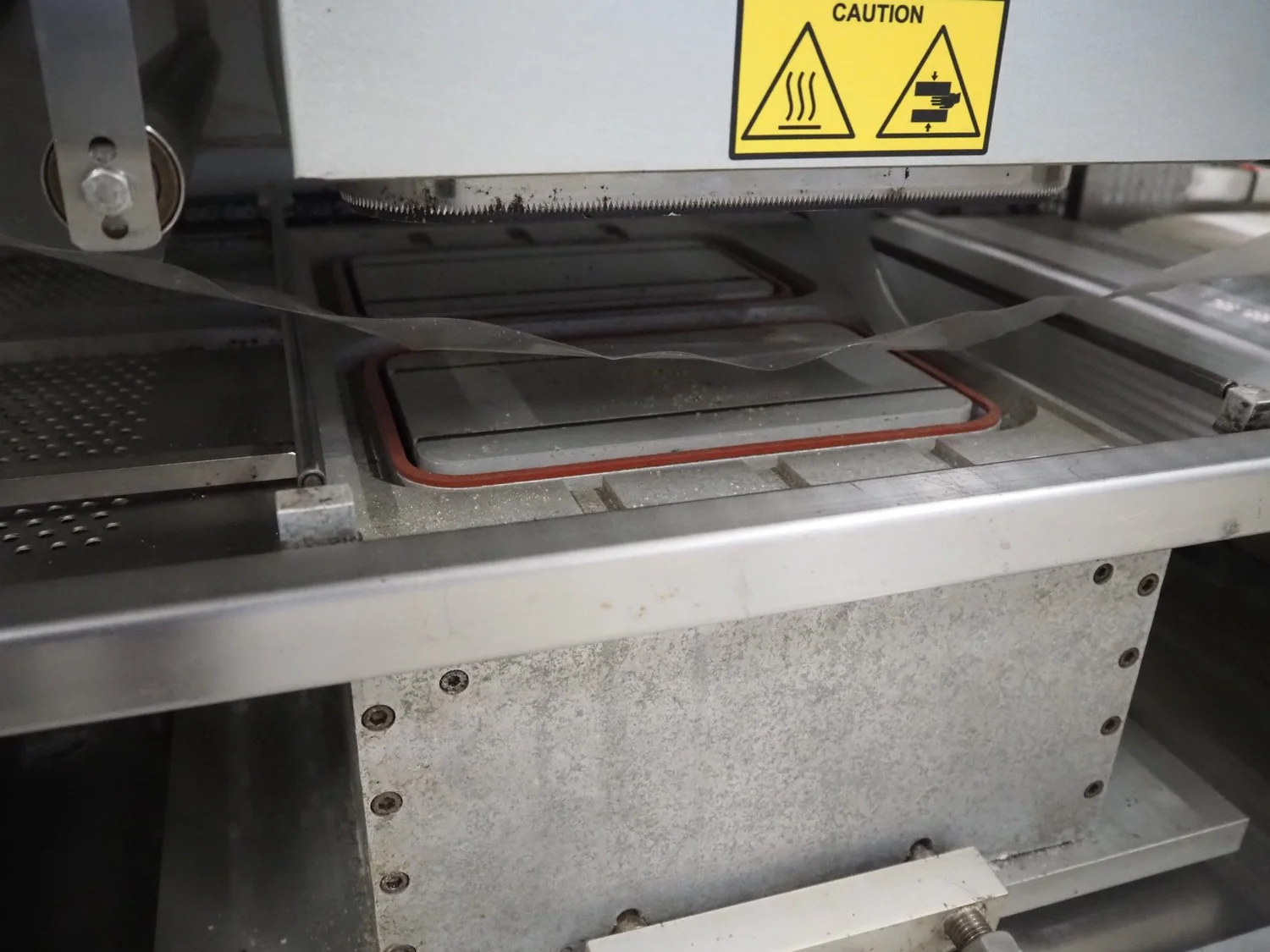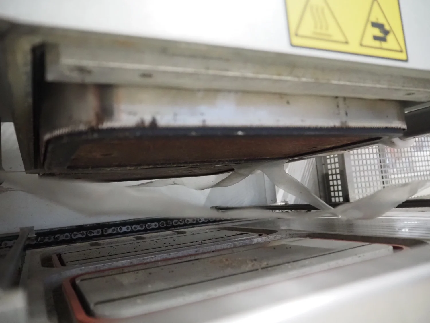 Polimoon traysealer, model: 1911VG, serial number: 1203007, year of construction: 2003, 220 V, 3 Ph, 50 Hz, 31 A, dye: (2x) 250 mm x 150 mm, film width: 430 mm, total dimensions: 5550 mm x 1000 mm x 1900 mm.