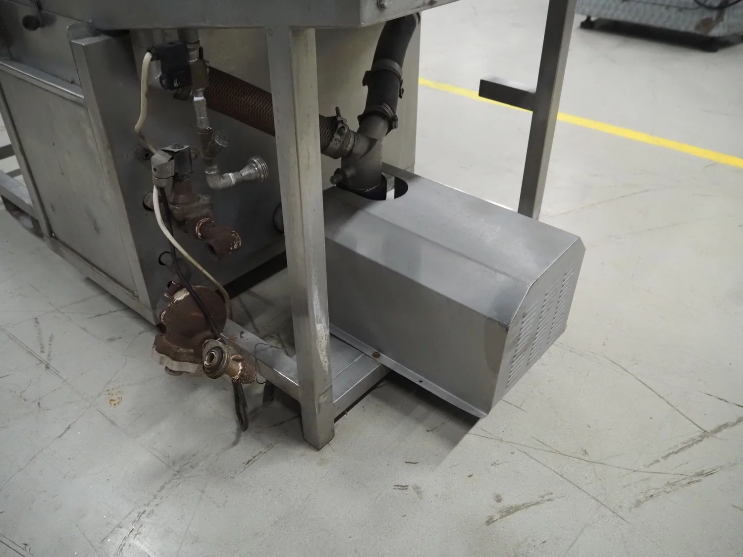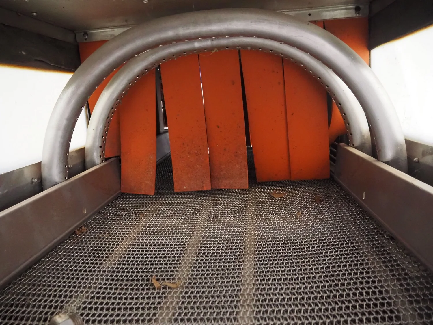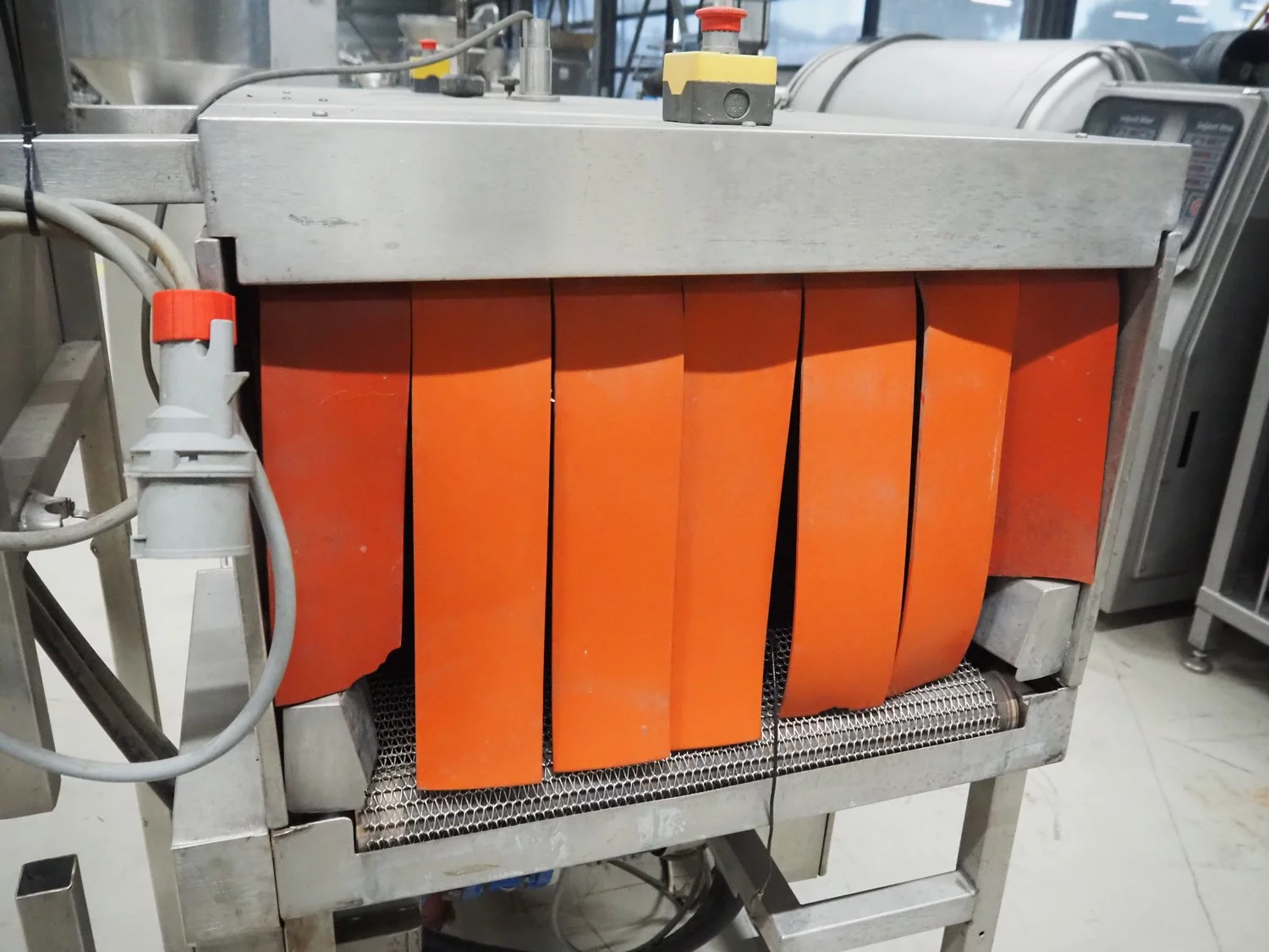 Spraying belt, s/s belt, belt width: 590 mm, clearance: 550 mm x 440 mm, total dimensions: 1850 mm x 1300 mm x 1750 mm.
