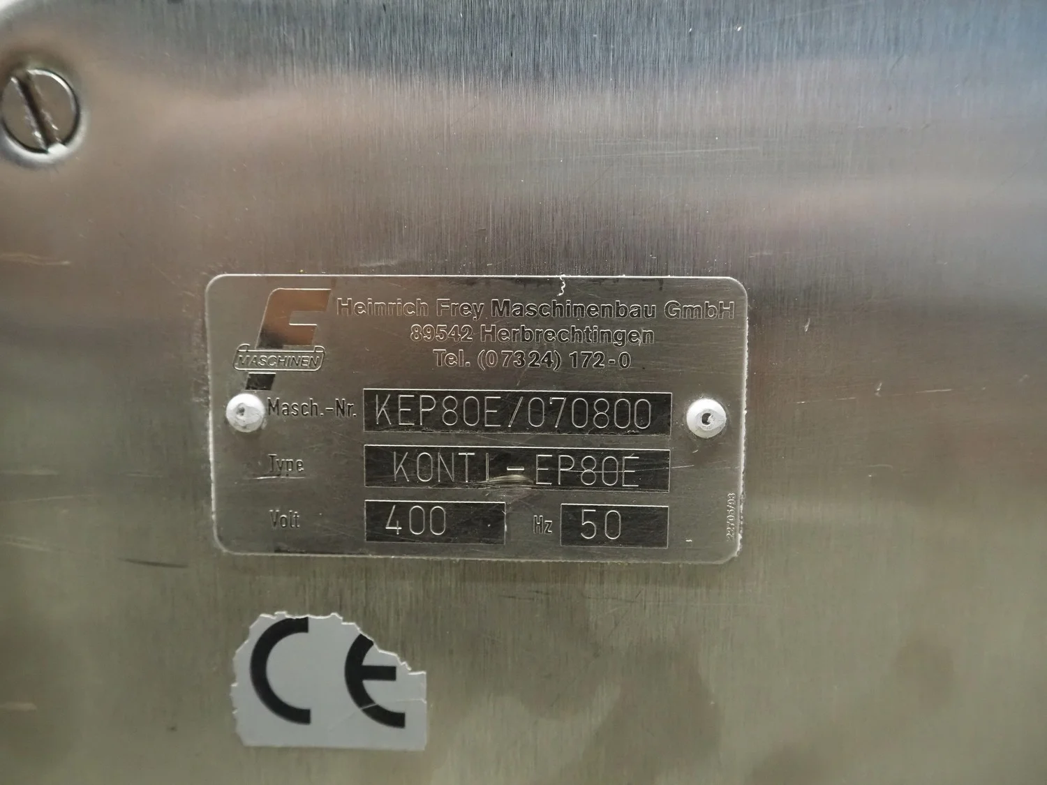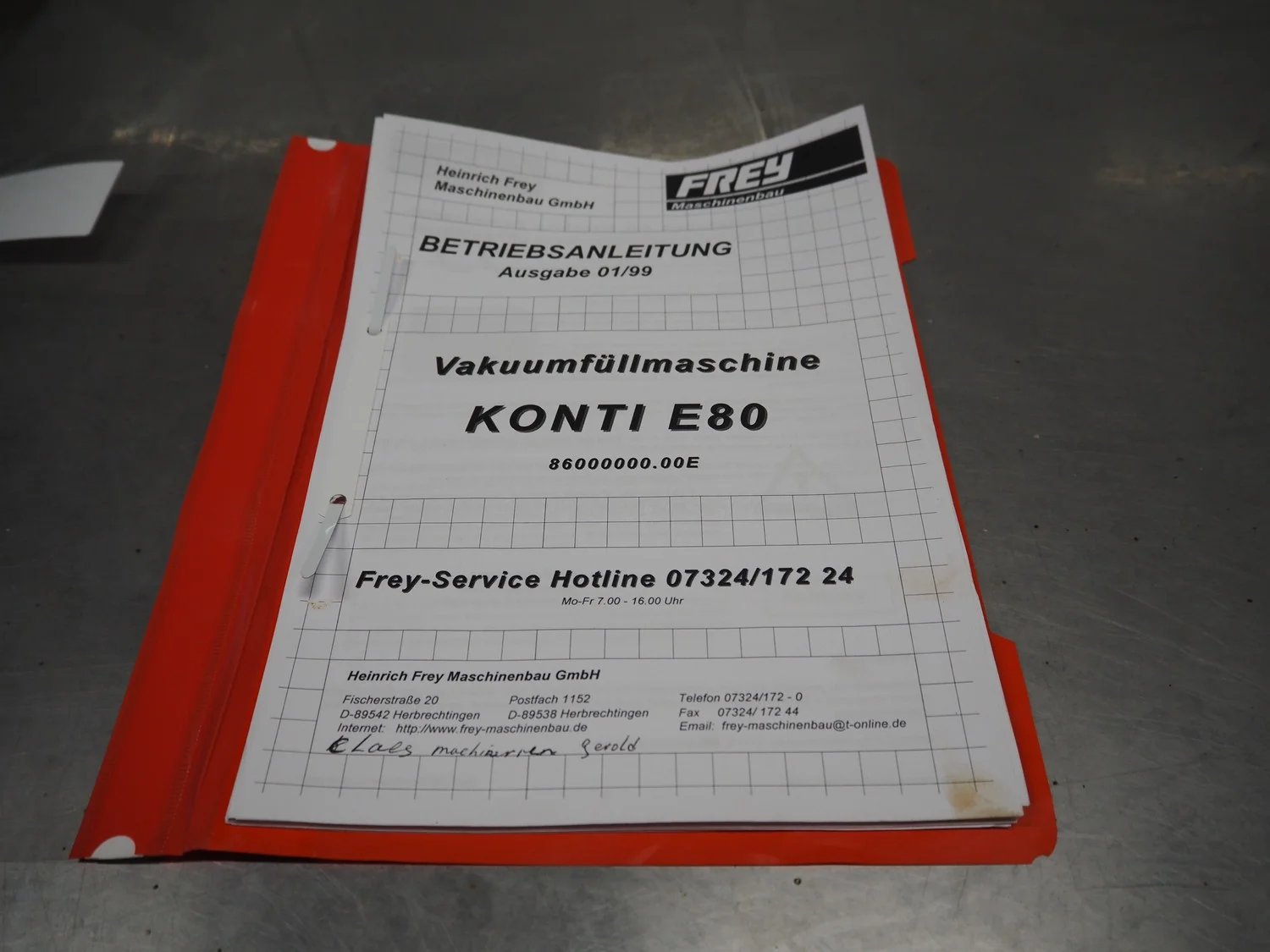Frey vacuum filling machine, type: KONTI-EP80E, machine number: KEP80E/070800, 400 V, 50 Hz, dimensions: 950 mm x 700 mm x 1620 mm. Without rotor and vanes.