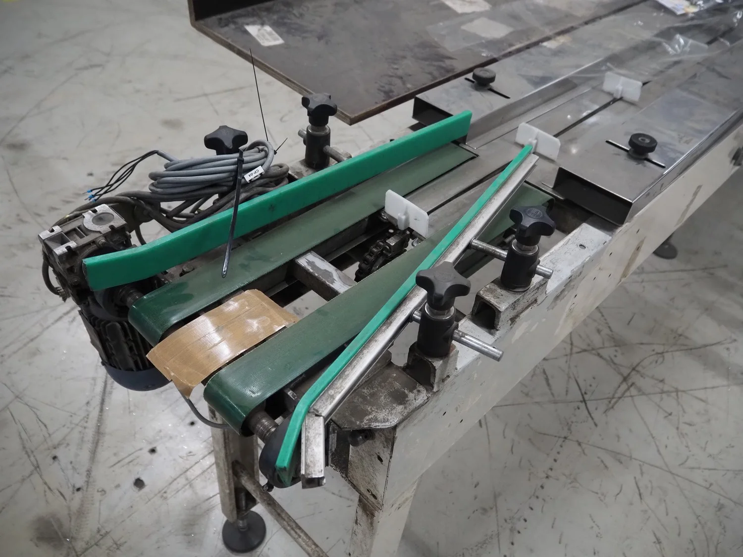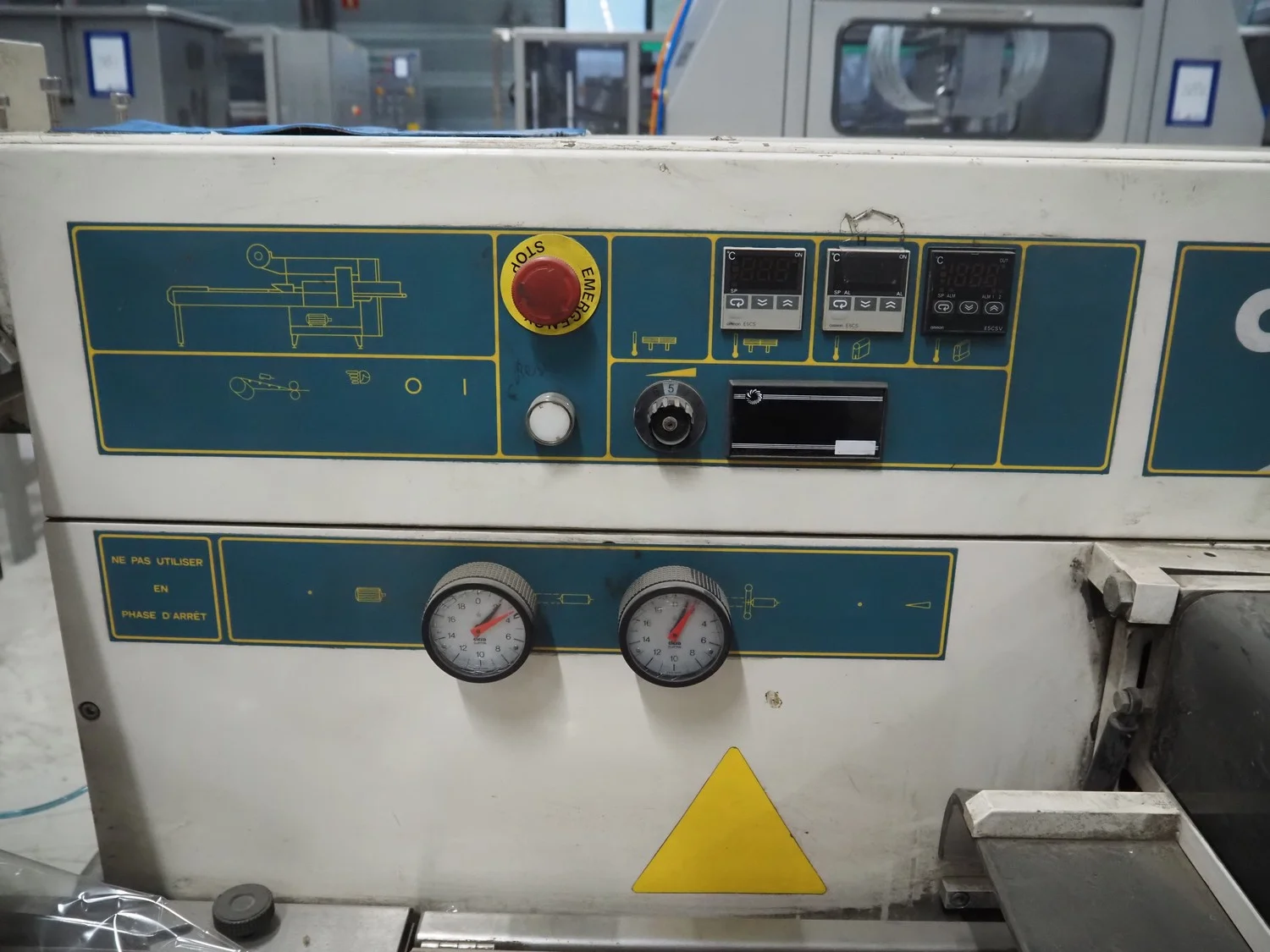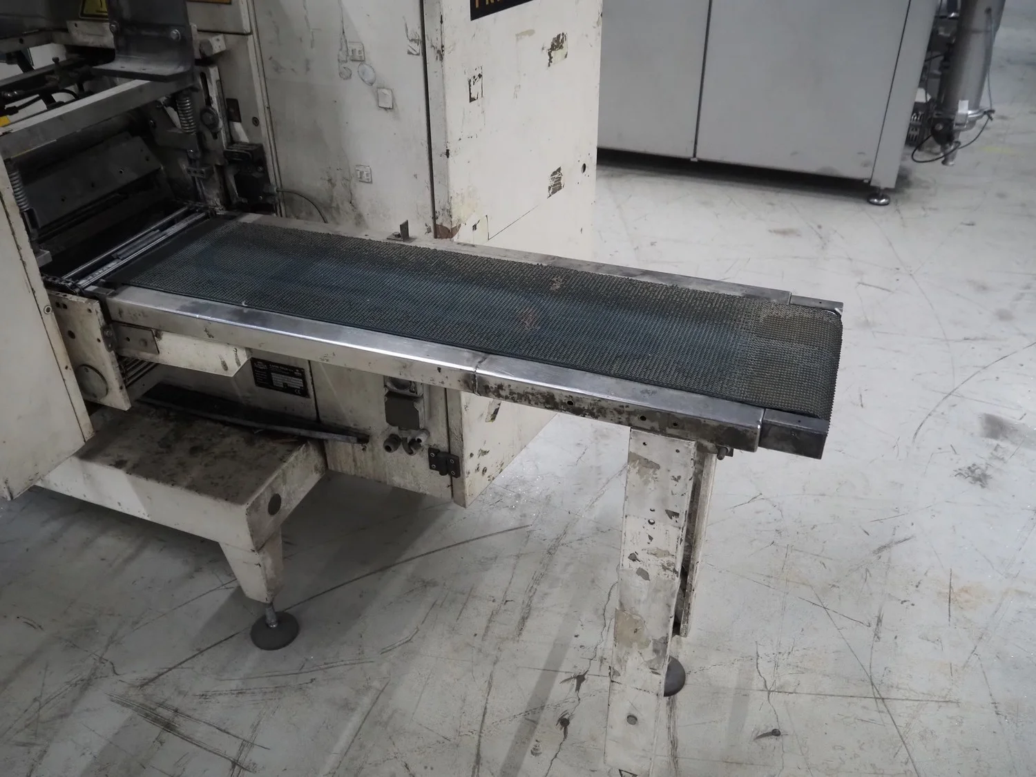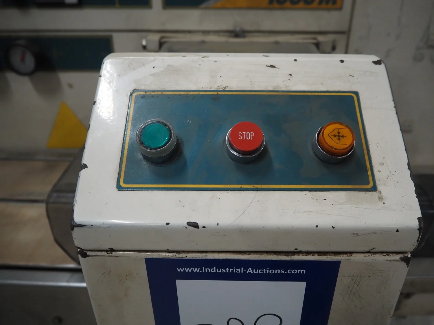 Ilapak flowpacker, model: Carrera 1000 M, serial number: 99 171, 400 V, 3 Ph, 50 Hz, 8 A, plastic belts, belt width: (2x) 60 mm, (1x) 250 mm, distance between dividers: 300 mm, seal length: 280 mm, total dimensions: 4050 mm x 1300 mm x 1550 mm.