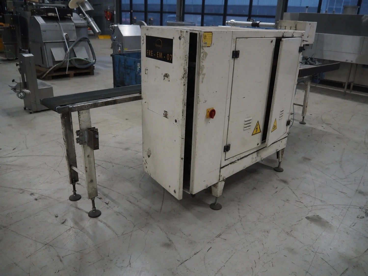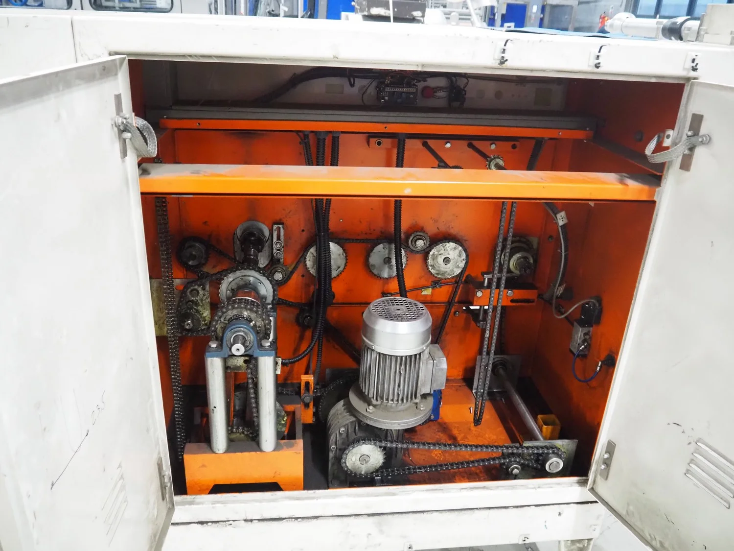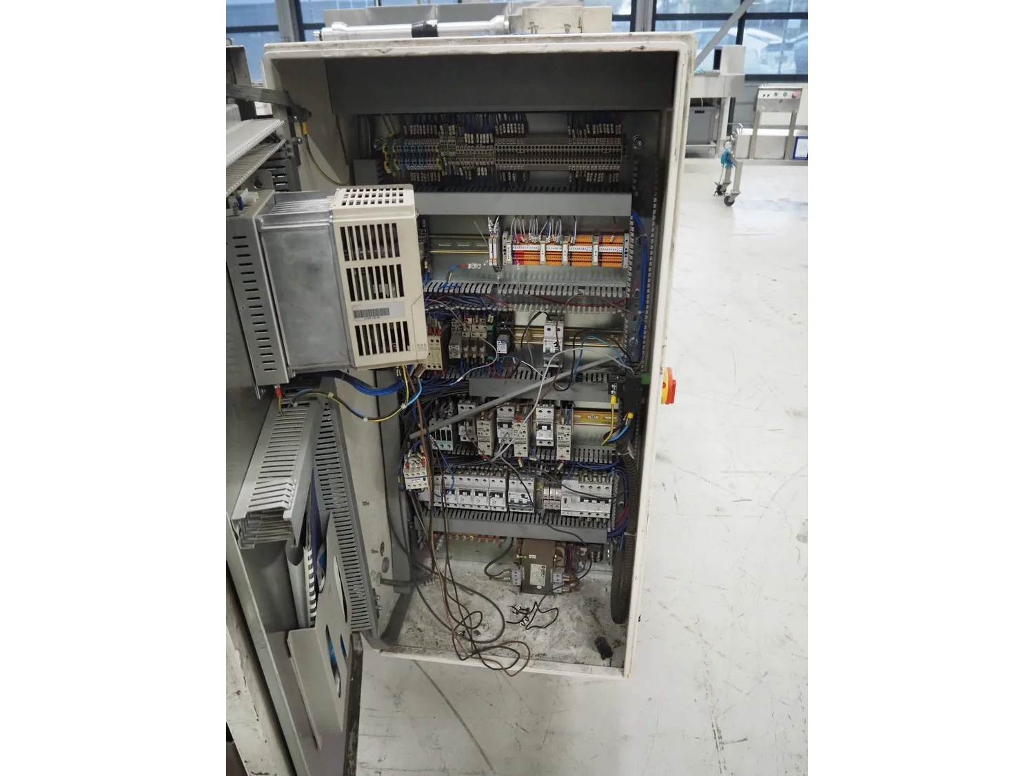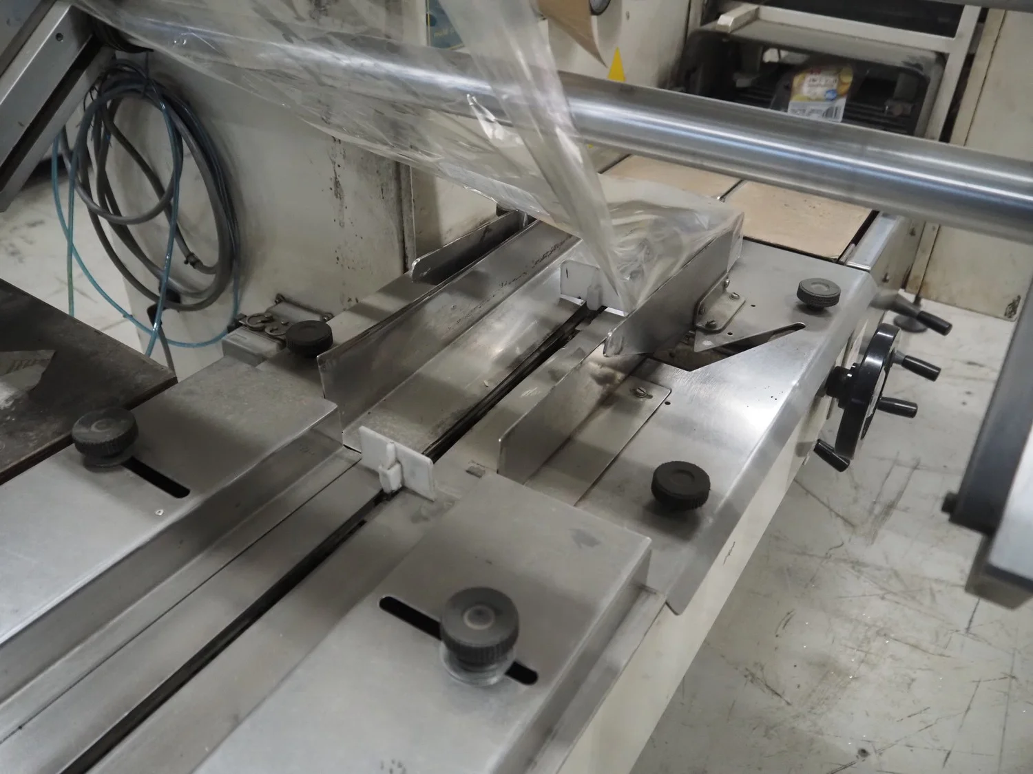 Ilapak flowpacker, model: Carrera 1000 M, serial number: 99 171, 400 V, 3 Ph, 50 Hz, 8 A, plastic belts, belt width: (2x) 60 mm, (1x) 250 mm, distance between dividers: 300 mm, seal length: 280 mm, total dimensions: 4050 mm x 1300 mm x 1550 mm.