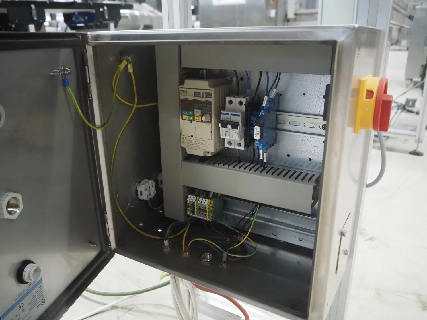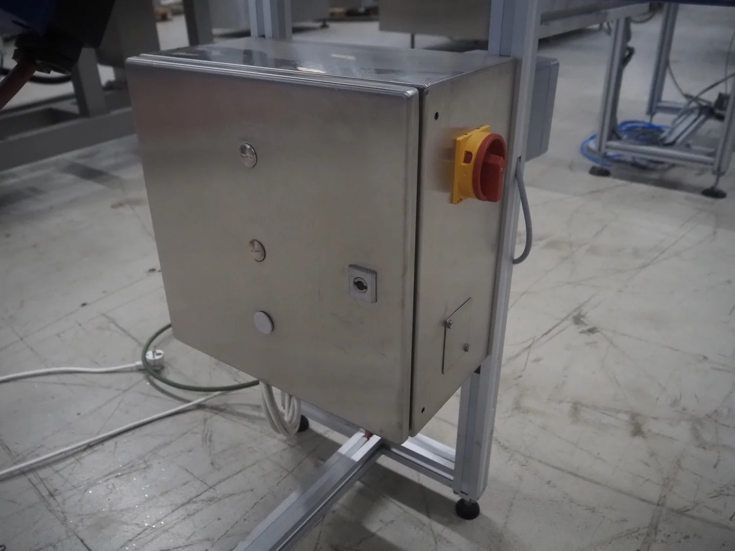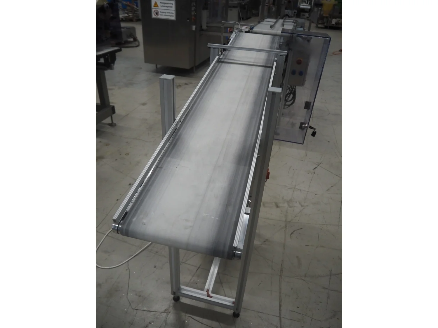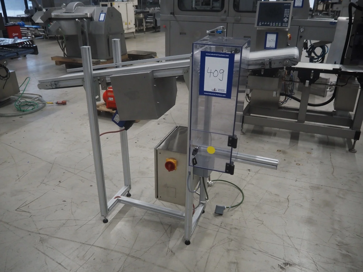Transport belt with rejector, s/s frame, plastic belt, belt width: 285 mm, total dimensions: 1600 mm x 650 mm x 1350 mm.
