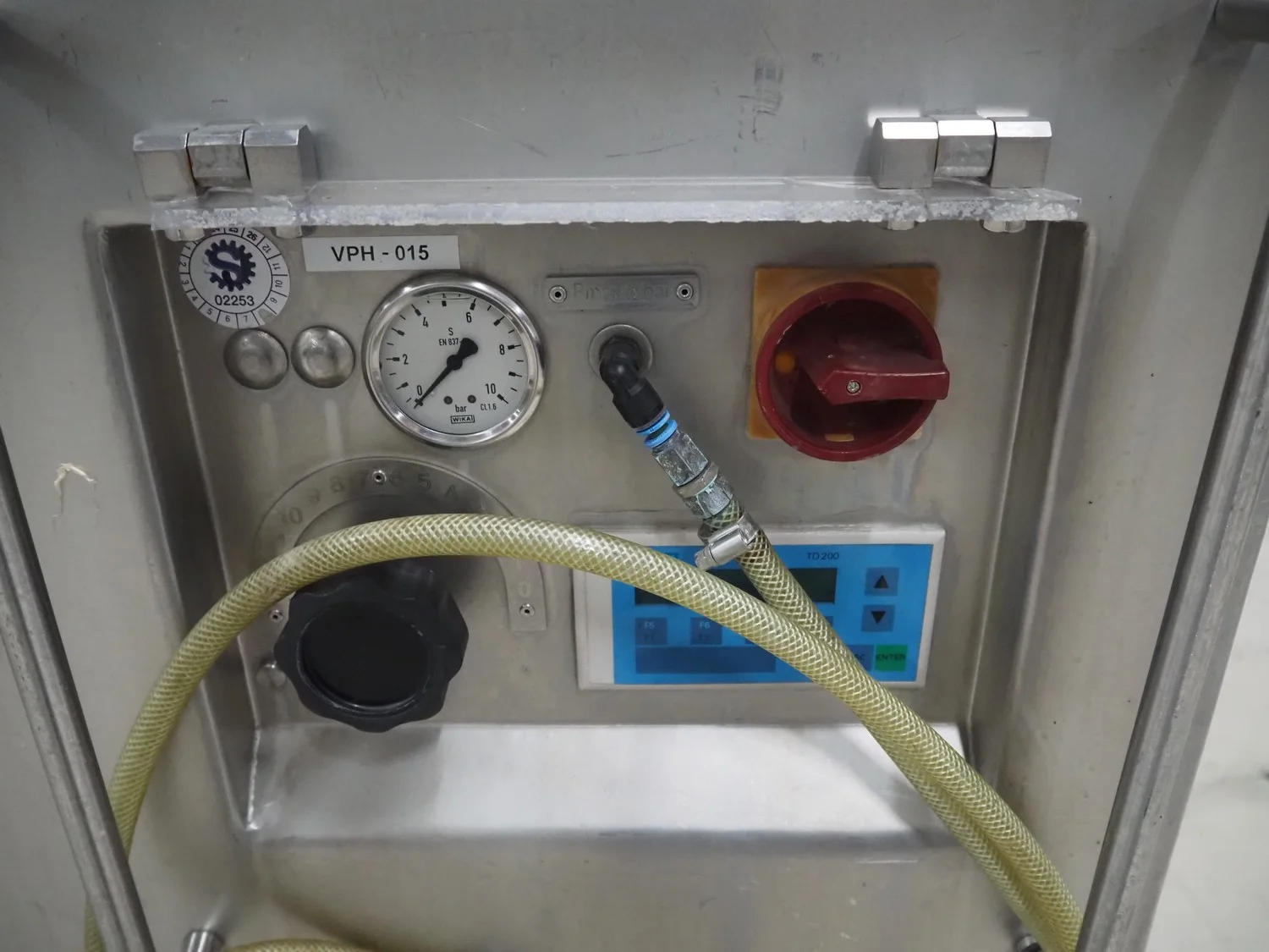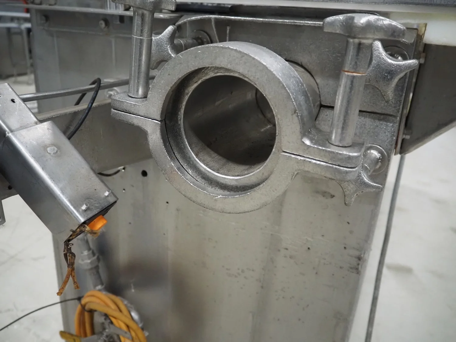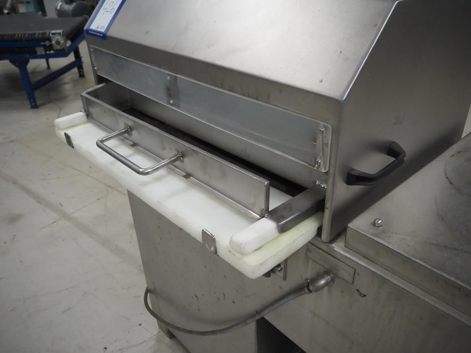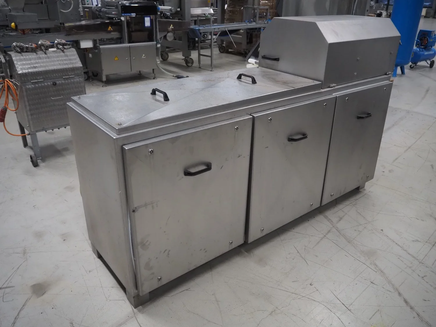 Schröder meat press, type: HAMAX 800, number: HA 805 03, year of construction: 2003, 400 V, 50 Hz, 10 A, 4 kW, pipe diameter: 95 mm, total dimensions: 2750 mm x 850 mm x 1700 mm.