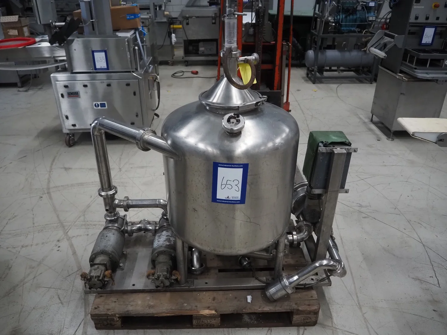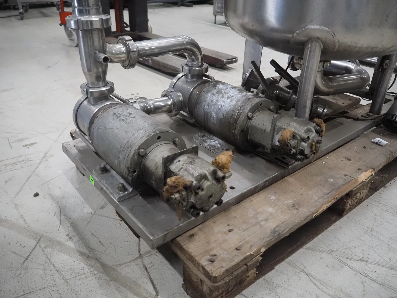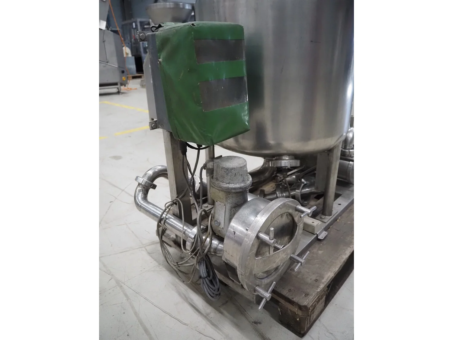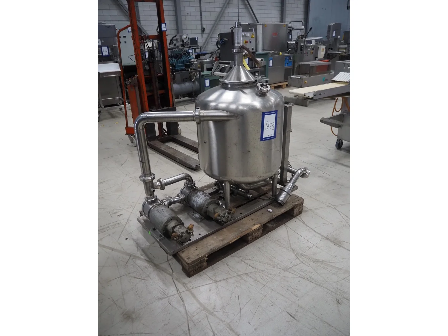 SCHWARTE milk reception unit, with 2 hydraulic self-priming pumps, air eliminator, flow meter, milk filter and interconnecting piping, capacity: 30000 liter per hour, CIP cleanable, inside dimensions: Ø 600 mm x 600 mm, total dimensions: 1500 mm x 800 mm x 1050 mm.