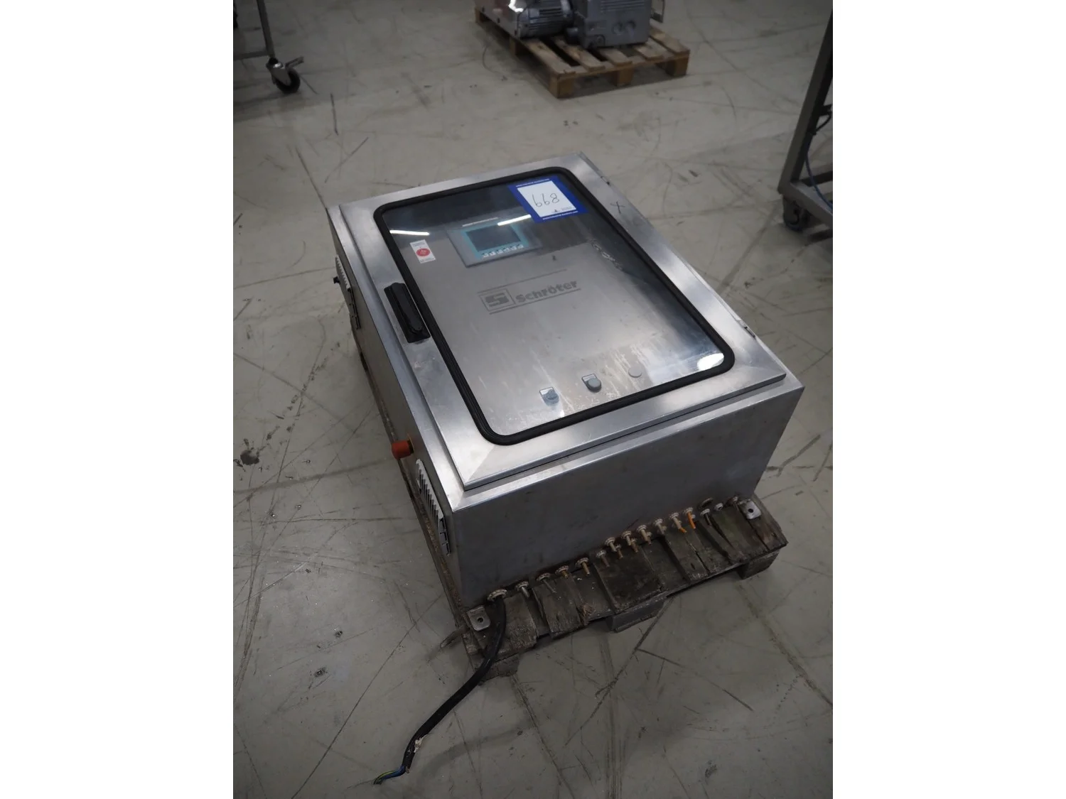 Schröter s/s switch cabinet for smoke chamber, type: KR-5, factory number: 250-1212, year of construction: 01/13, dimensions: 750 mm x 450 mm x 1050 mm.
