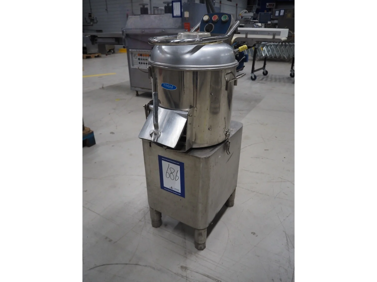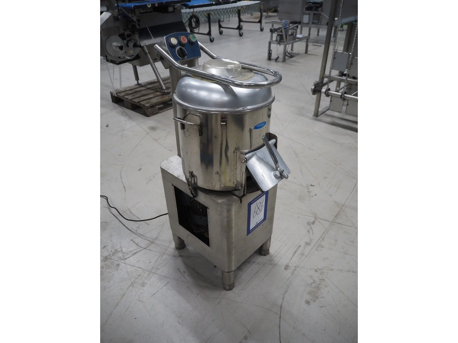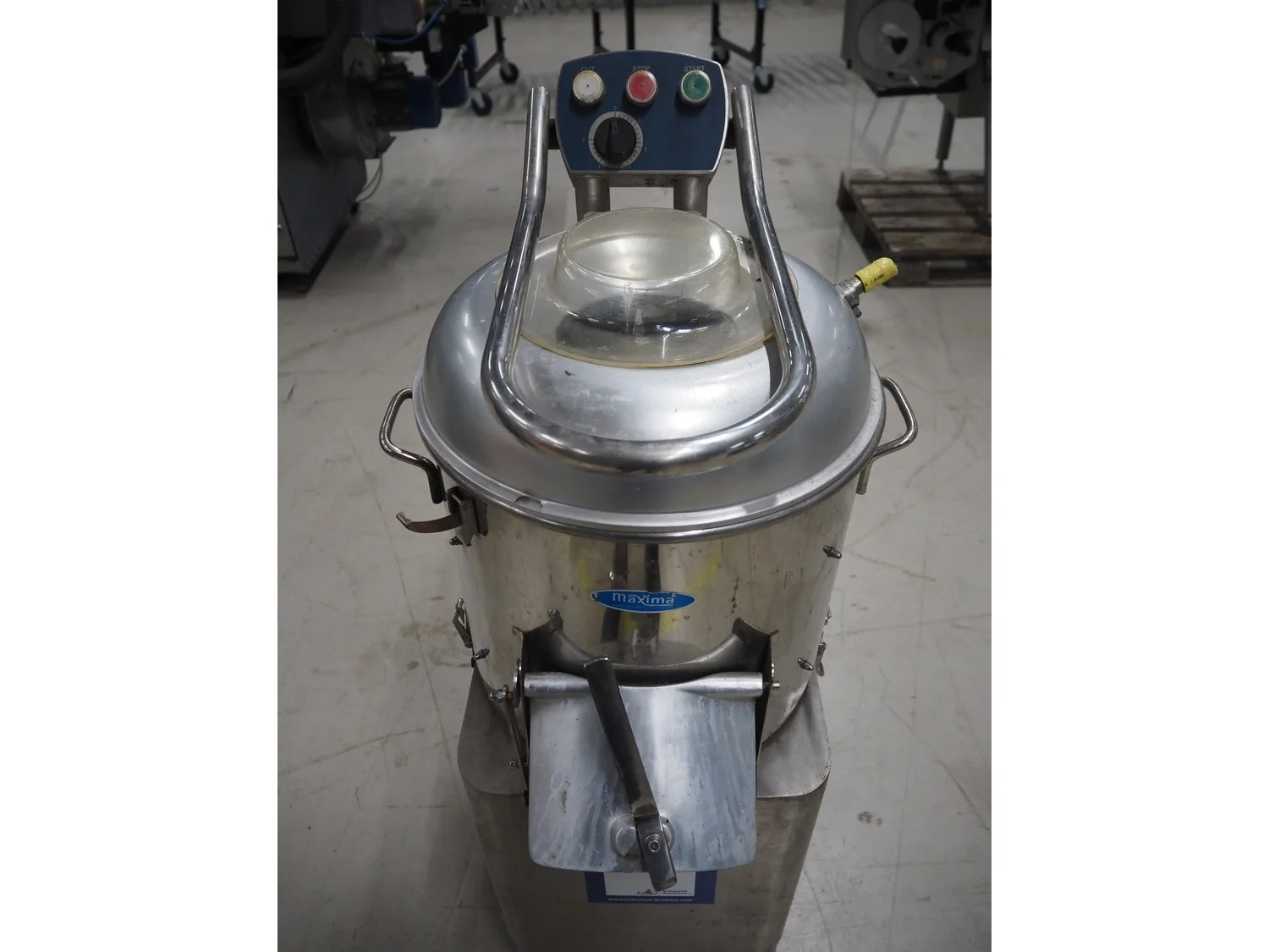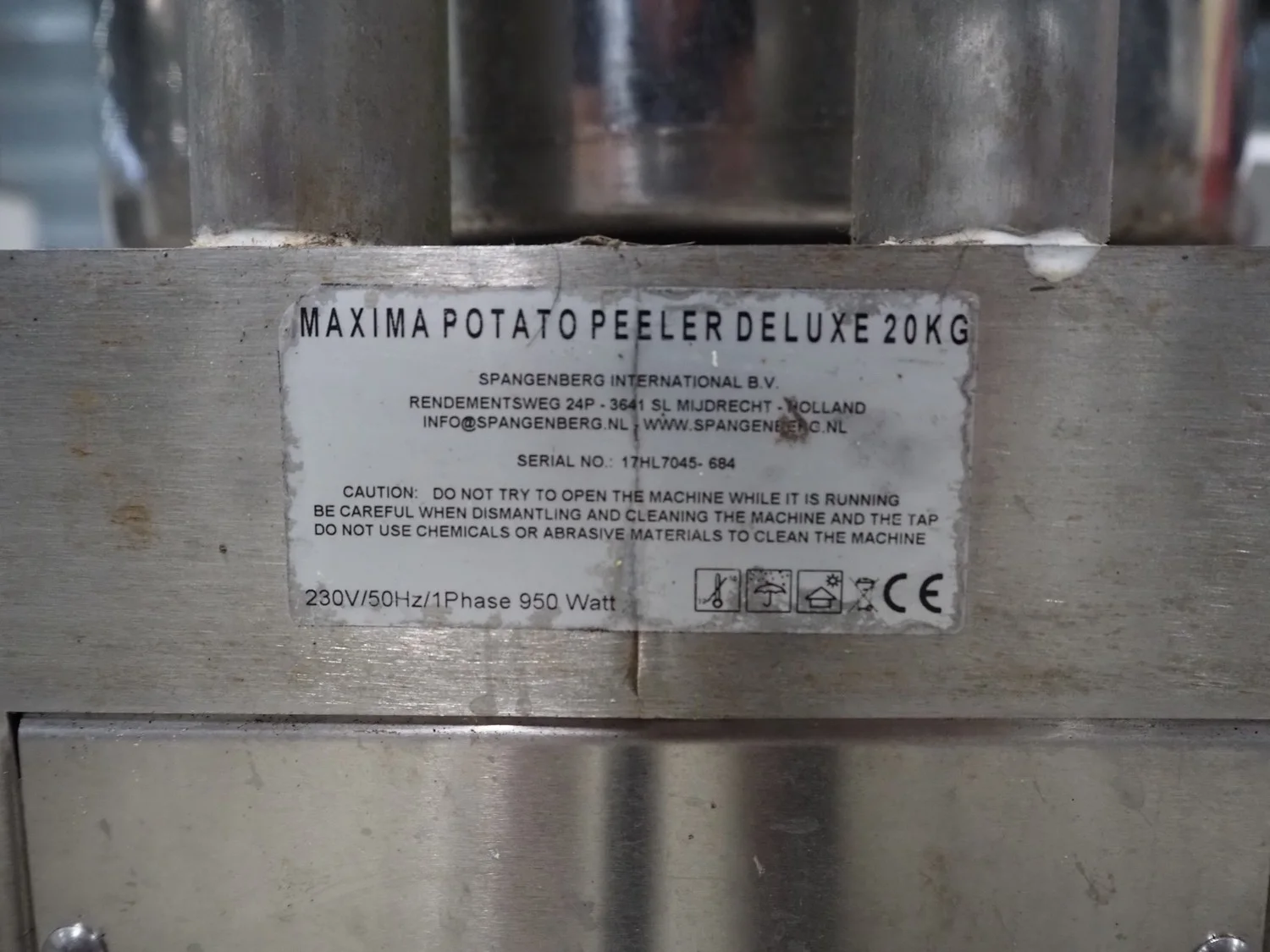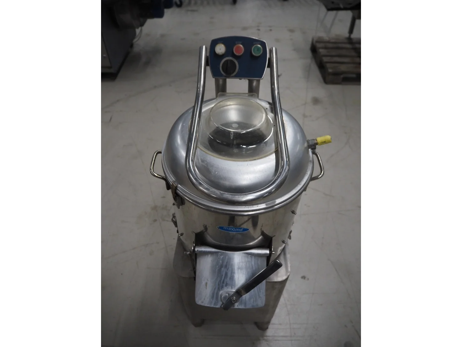 Maxima potato peeler, serial number: 17HL7045-684, 230 V, 1 Ph, 50 Hz, 950 W, capacity: 20 kg, dimensions: 620 mm x 470 mm x 1130 mm.