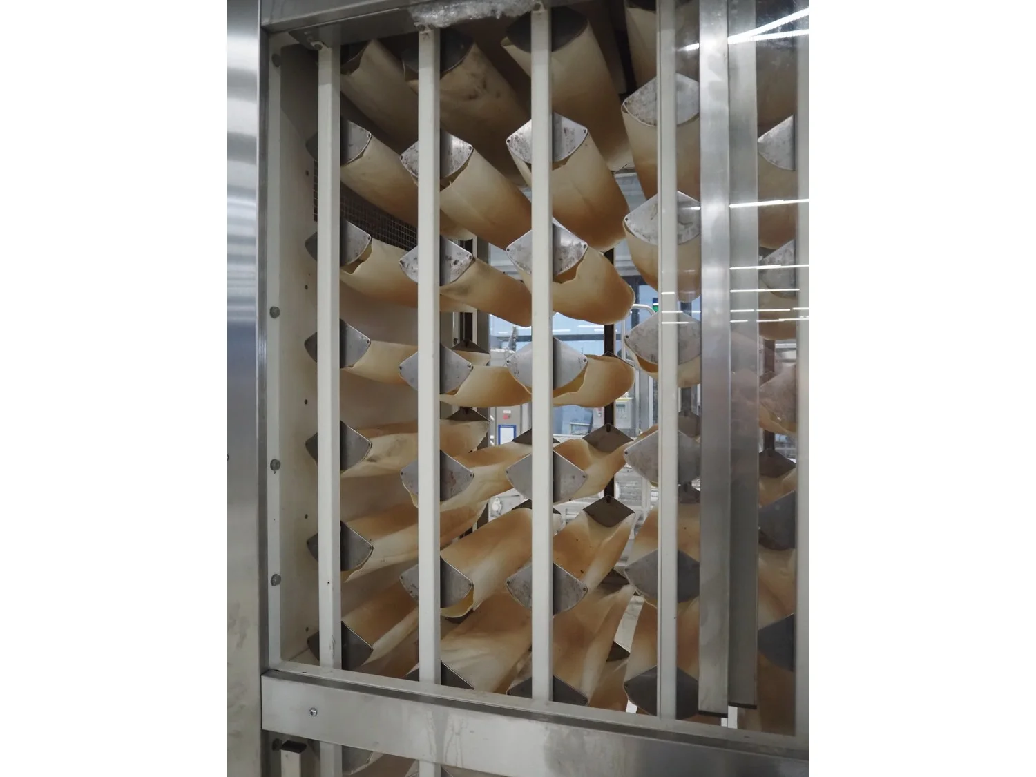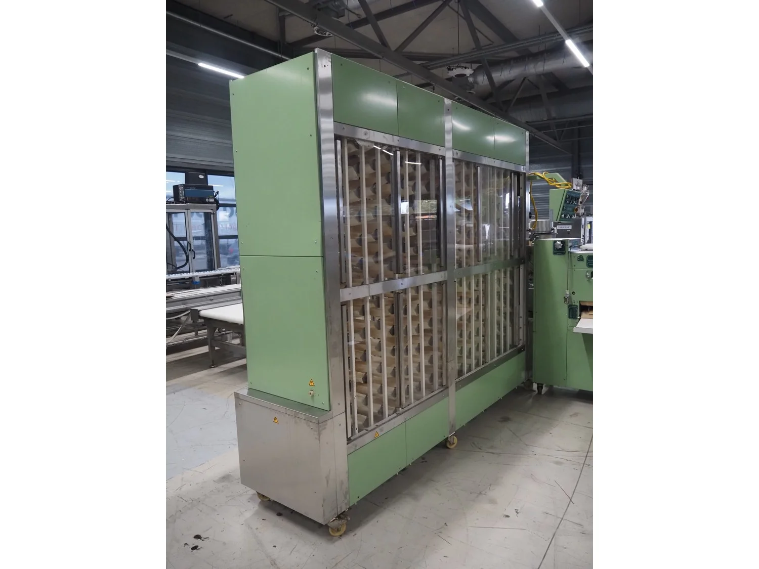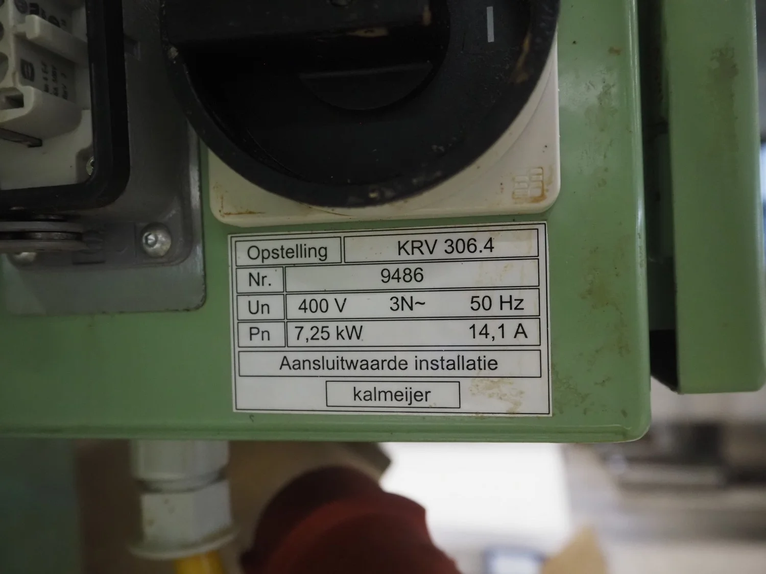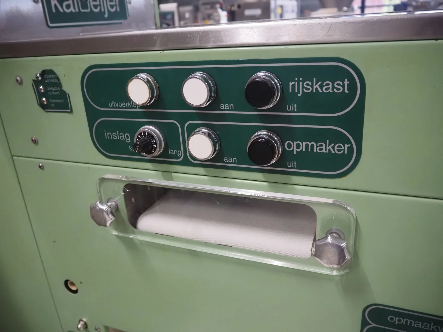 Kalmeijer bread line, consisting of: Kalmeijer dough divider, plastic outfeed belt, belt width: 260 mm, total dimensions: 1700 mm x 600 mm x 1900 mm, Kalmeijer proofer, number: 9486, 400 V, 3 Ph, 50 Hz, 14.1 A, 7.25 kW, approximately 270 baskets, dimensions each basket: 500 mm x 100 mm, total dimensions: 3000 mm x 1200 mm x 2700 Kalmeijer long moulder, year of construction: 2003, cloth belt, belt width: 120 mm, total dimensions: 1400 mm x 900 mm x 1600 mm.