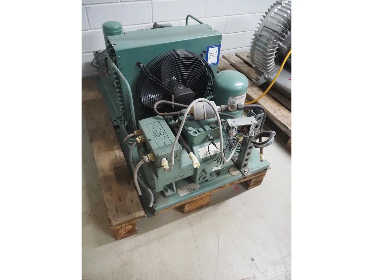 Bitzer Kühlmaschinenbau GmbH cooling compressor with condenser, type: 2FC-3.2Y-40S, serial number: 1270802615, dimensions: 650 mm x 550 mm x 500 mm.
