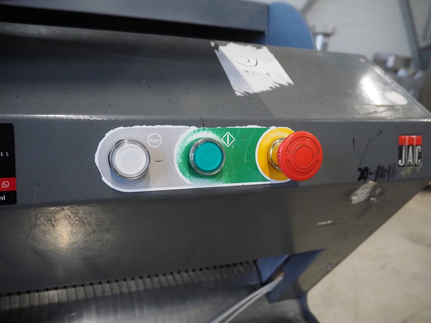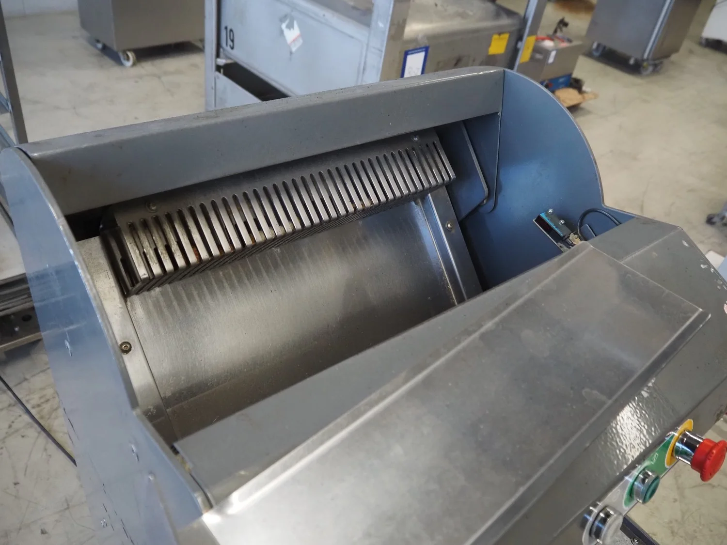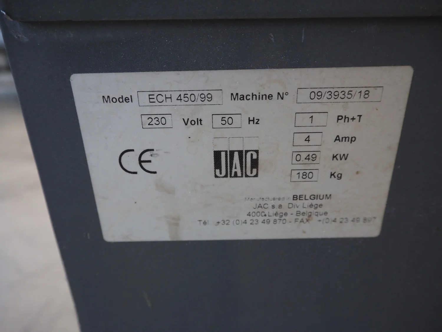 JAC mobile bread slicer, model: ECH 450/99, machine number: 09/3935/18, 230 V, 1 Ph, 50 Hz, 4.0 A, 0.49 kW, 180 kg, 34 knives, distance between knives: 11 mm, total dimensions: 590 mm x 650 mm x 1320 mm.