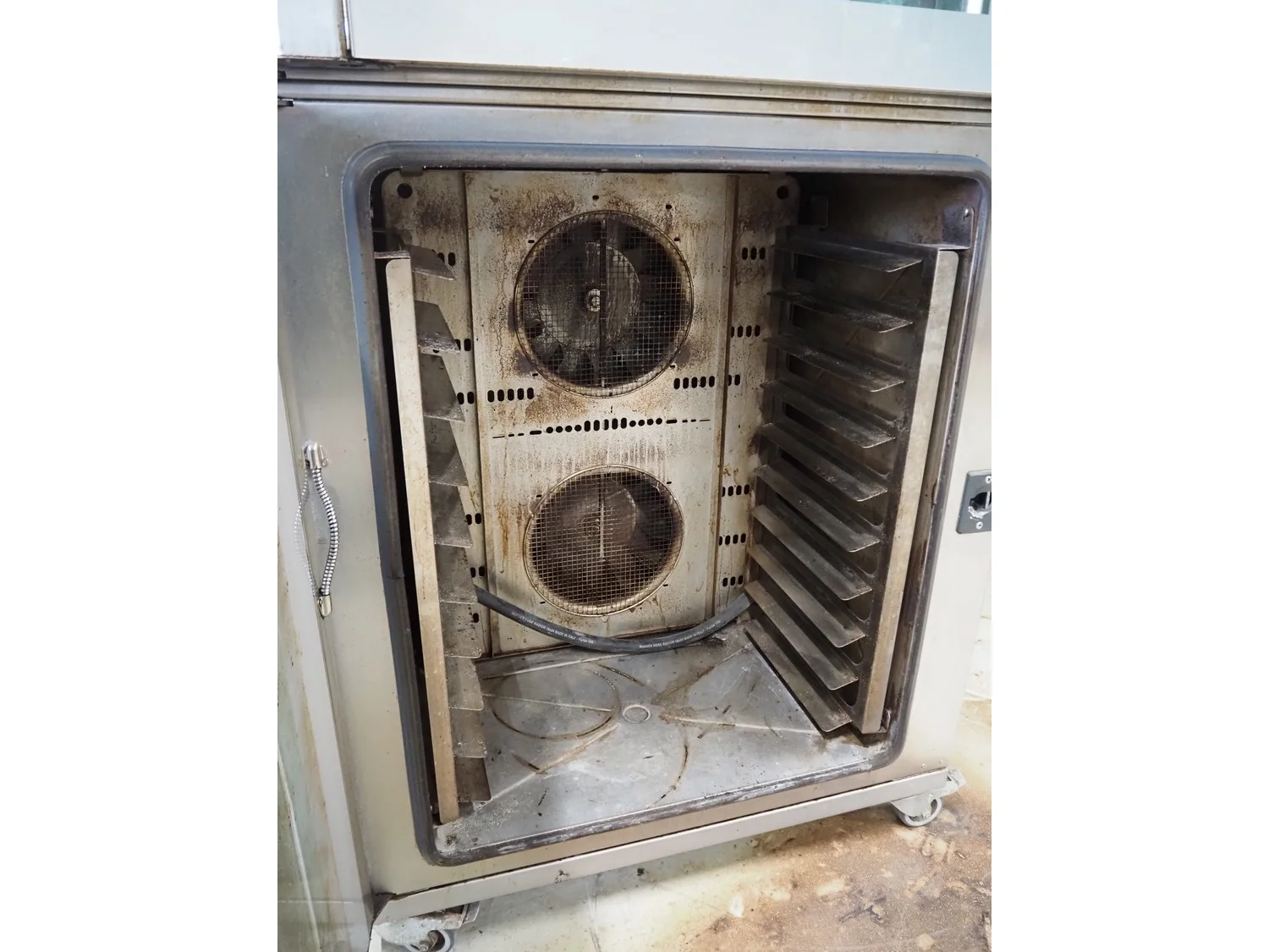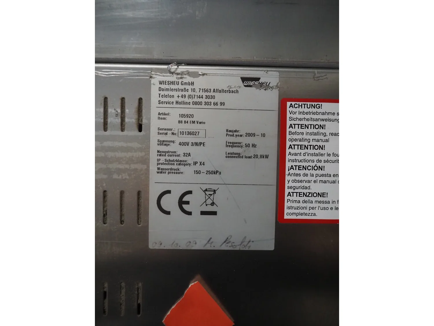 Wiesheu GmbH mobile double stacked oven, model: B08-B4-EM-Vario, serial number: 10316027, year of construction: 10/2009, 400 V, 3 Ph, 50 Hz, 32 A, 20.8 kW, 5 and 10 floors, floor dimensions: 610 mm x 400 mm, total dimensions: 1200 mm x 930 mm x 2070 mm.