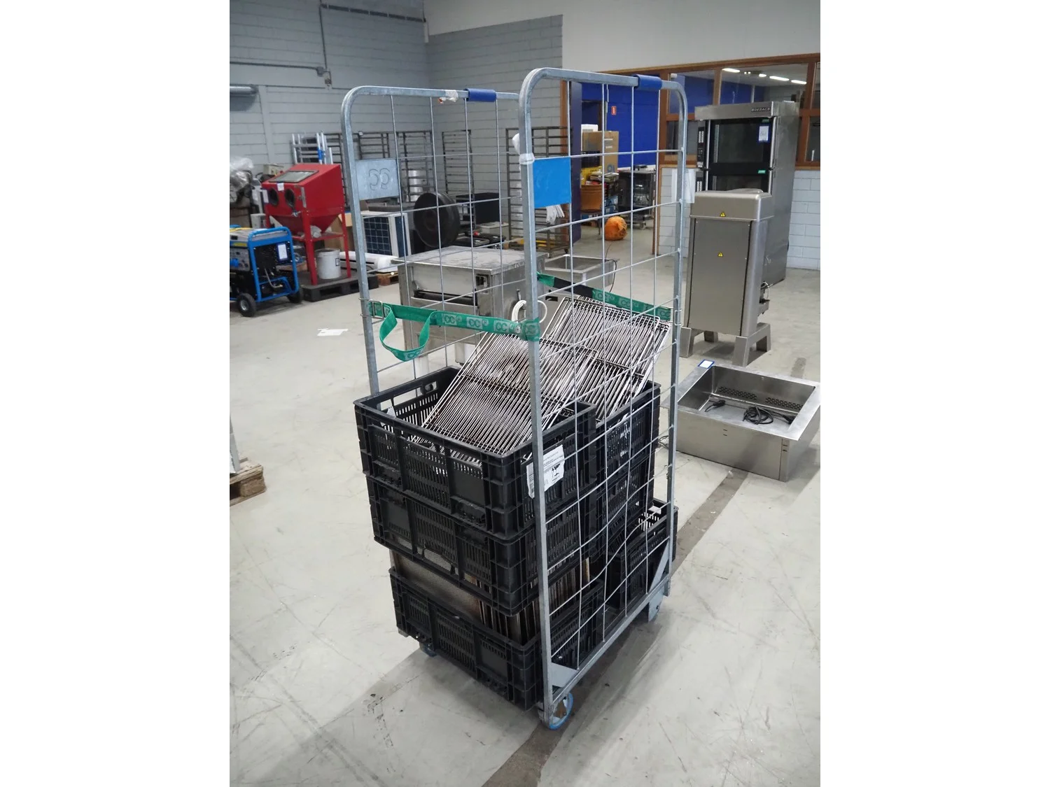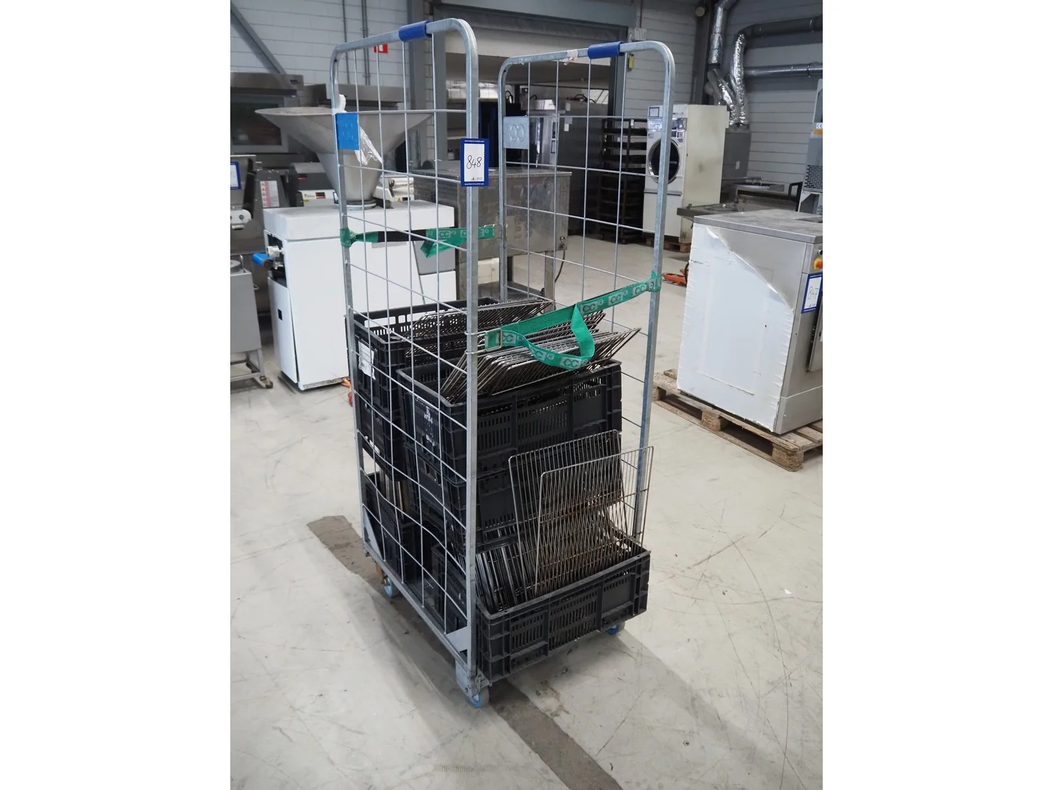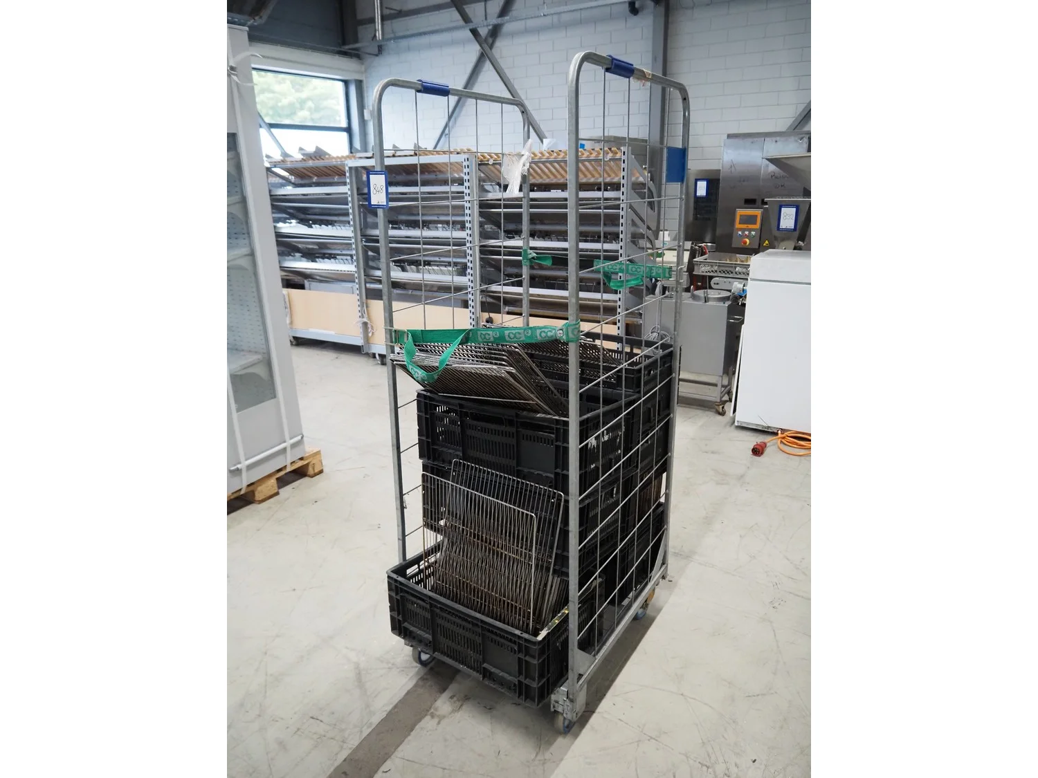 Trolley with large amount of grill racks and plate dimensions, rack/plate dimensions: 400 mm x 600 mm, total dimensions: 800 mm x 665 mm x 1900 mm.