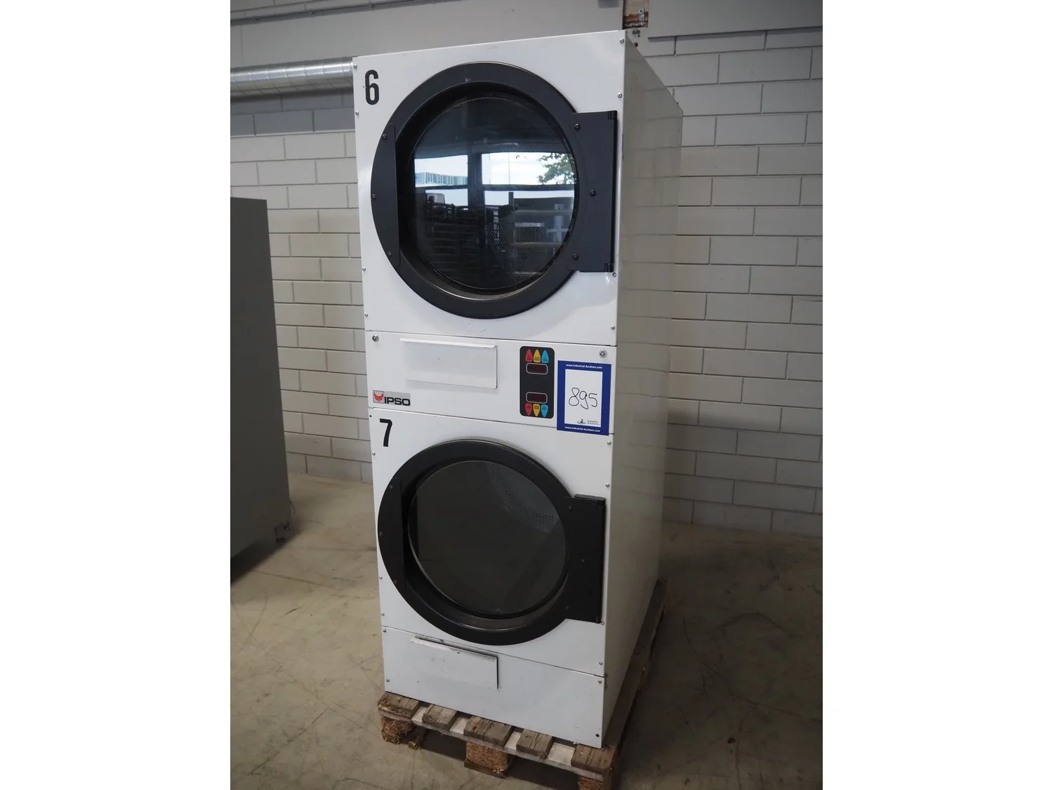 IPSO double dryer, capacity: 13.6 kg and 6.8 kg, dimensions: 1120 mm x 760 mm x 1990 mm.
