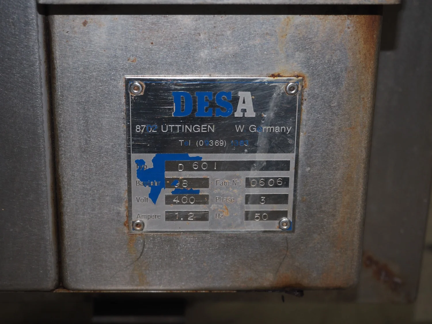 Desa mobile tiltable mixer, type: D60L, fabrication number: 0606, year of construction: 1998, 400 V, 3 Ph, 50 Hz, 1.2 A, volume: 60 liter, dimensions: 950 mm x 500 mm x 1000 mm.