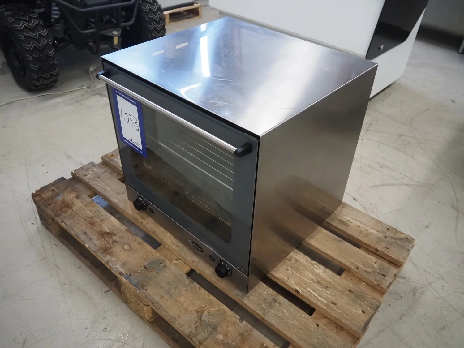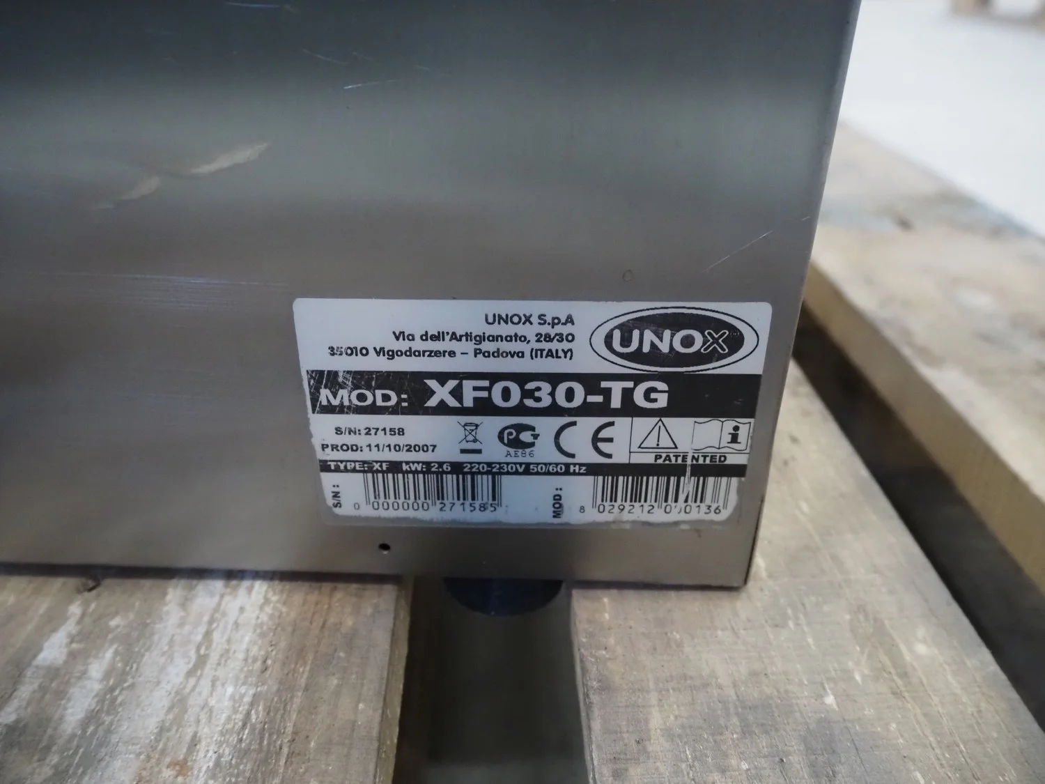 Unox S.p.A. oven, model: XF030-TG, serial number: 27158, year of construction; 11/10/2007, 220-230 V, 50/60 Hz, 2.6 kW, 4 floors, dimensions floors: (4x) 430 mm x 330 mm, total dimensions: 600 mm x 570 mm x 570 mm.
