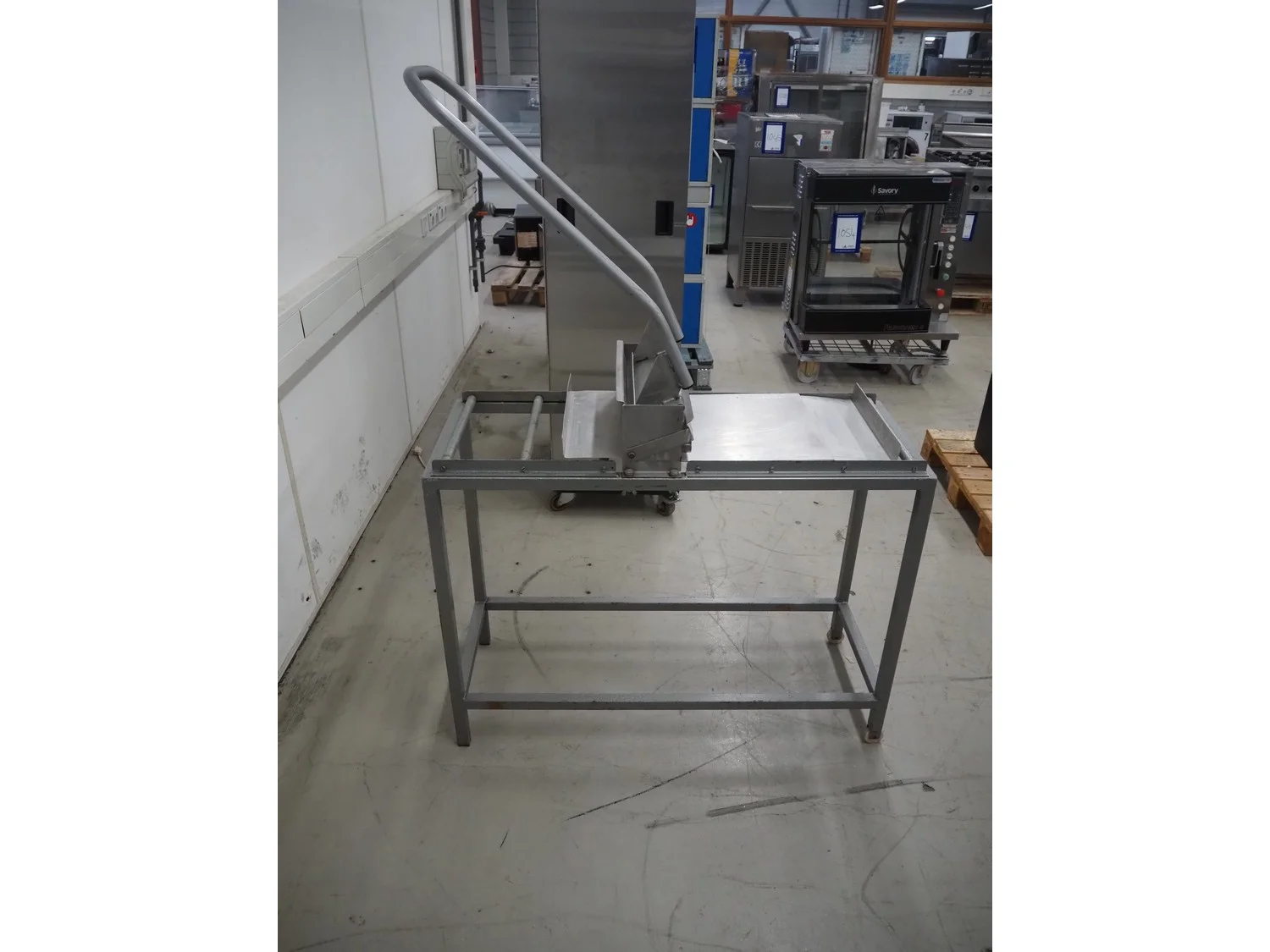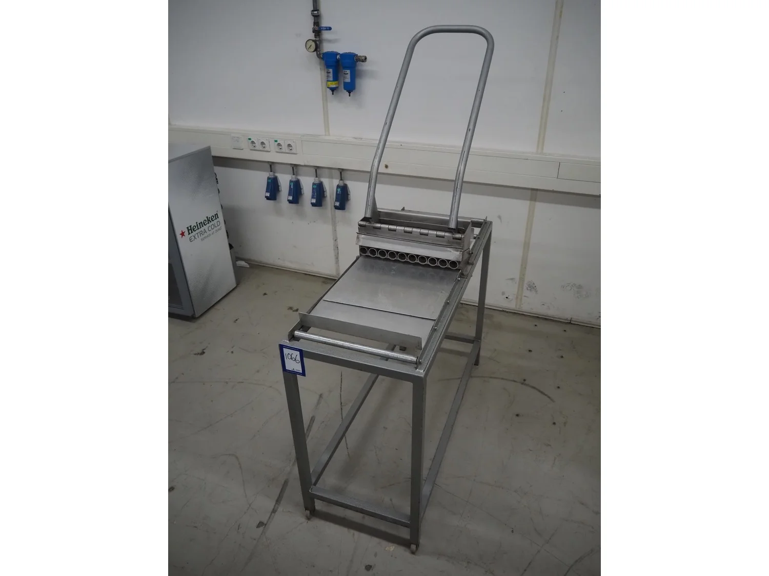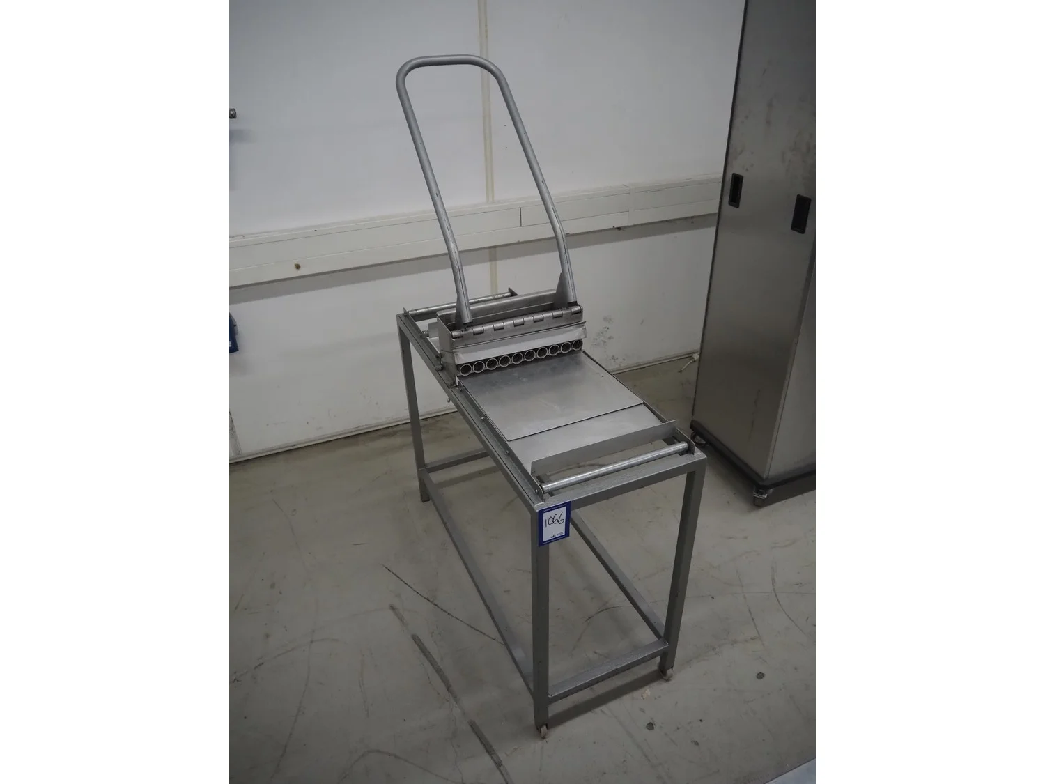 S/s almond press on mobile frame, dye: (10x) 20 mm, total dimensions: 1420 mm x 430 mm x 1000 mm.