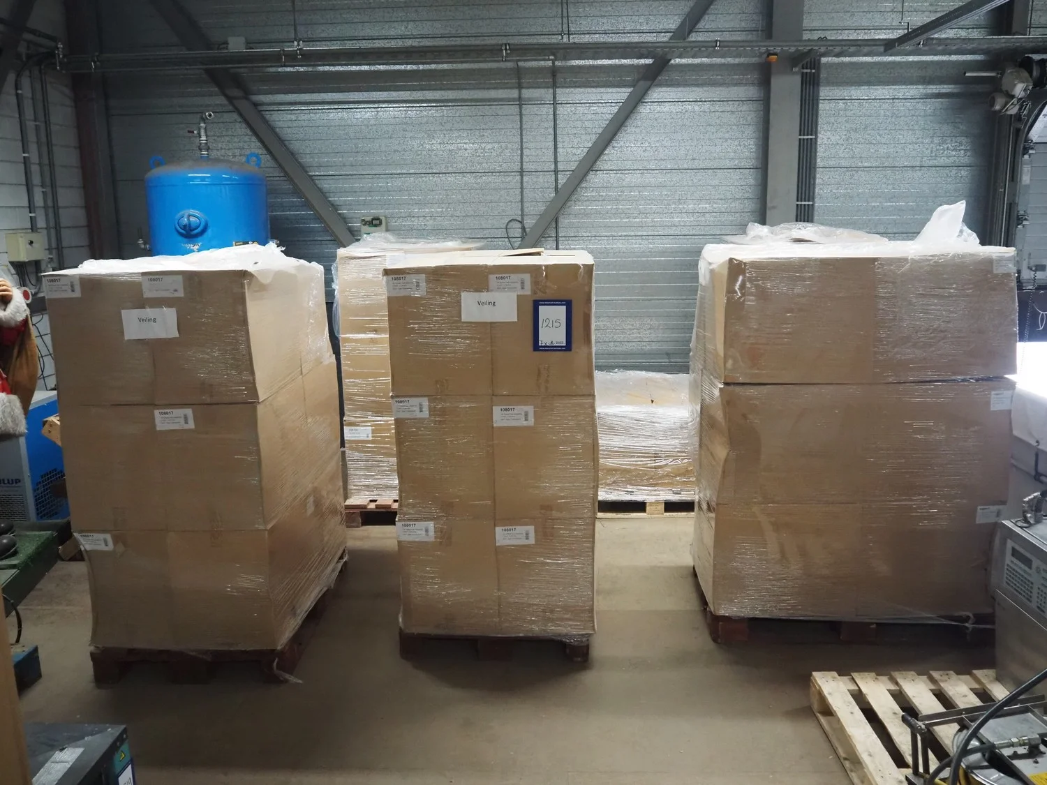 7 pallets with plastic trays ands plastic lids, dimensions: (6x) 1200 mm x 800 mm x 1650 mm, (1x) 1200 mm x 800 mm x 500 mm.