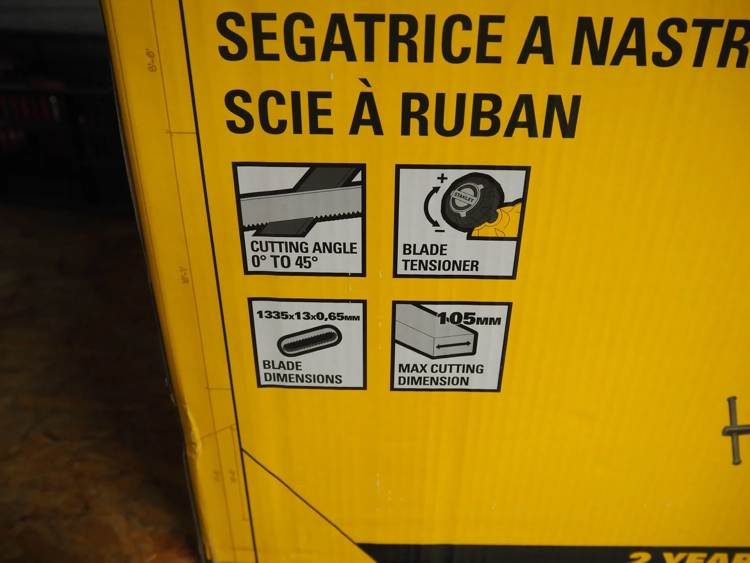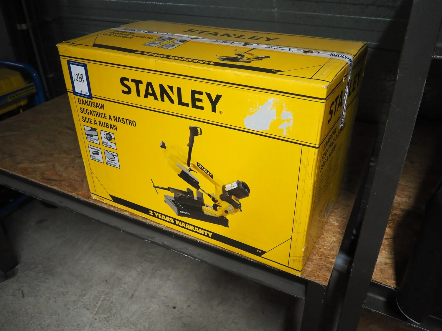 Stanley bandsaw, serial number: 1A202200320166, 230 V, 50/60 Hz, 3.6 A, 750 W, dimensions: 740 mm x 400 mm x 500 mm.
