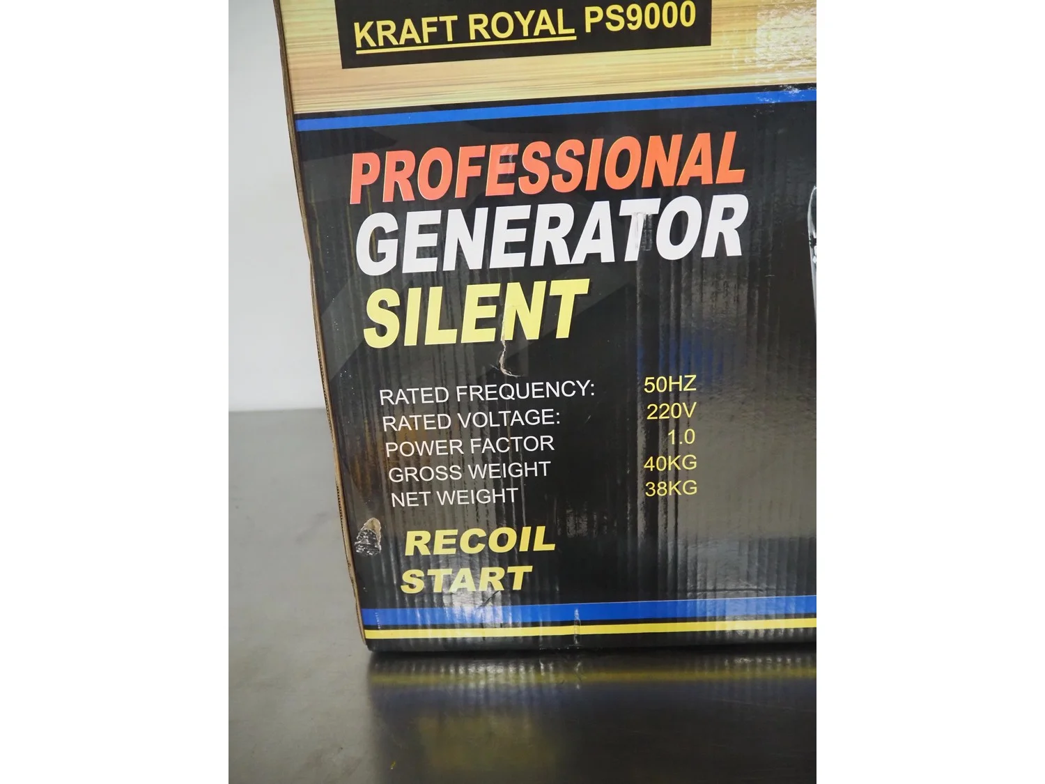 Kraftroyal gasoline generator, model: PS9000, dimensions: 610 mm x 440 mm x 410 mm.