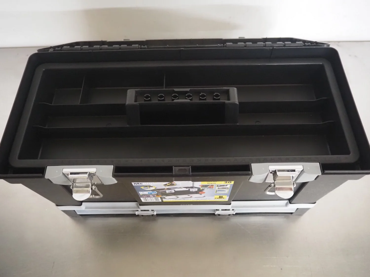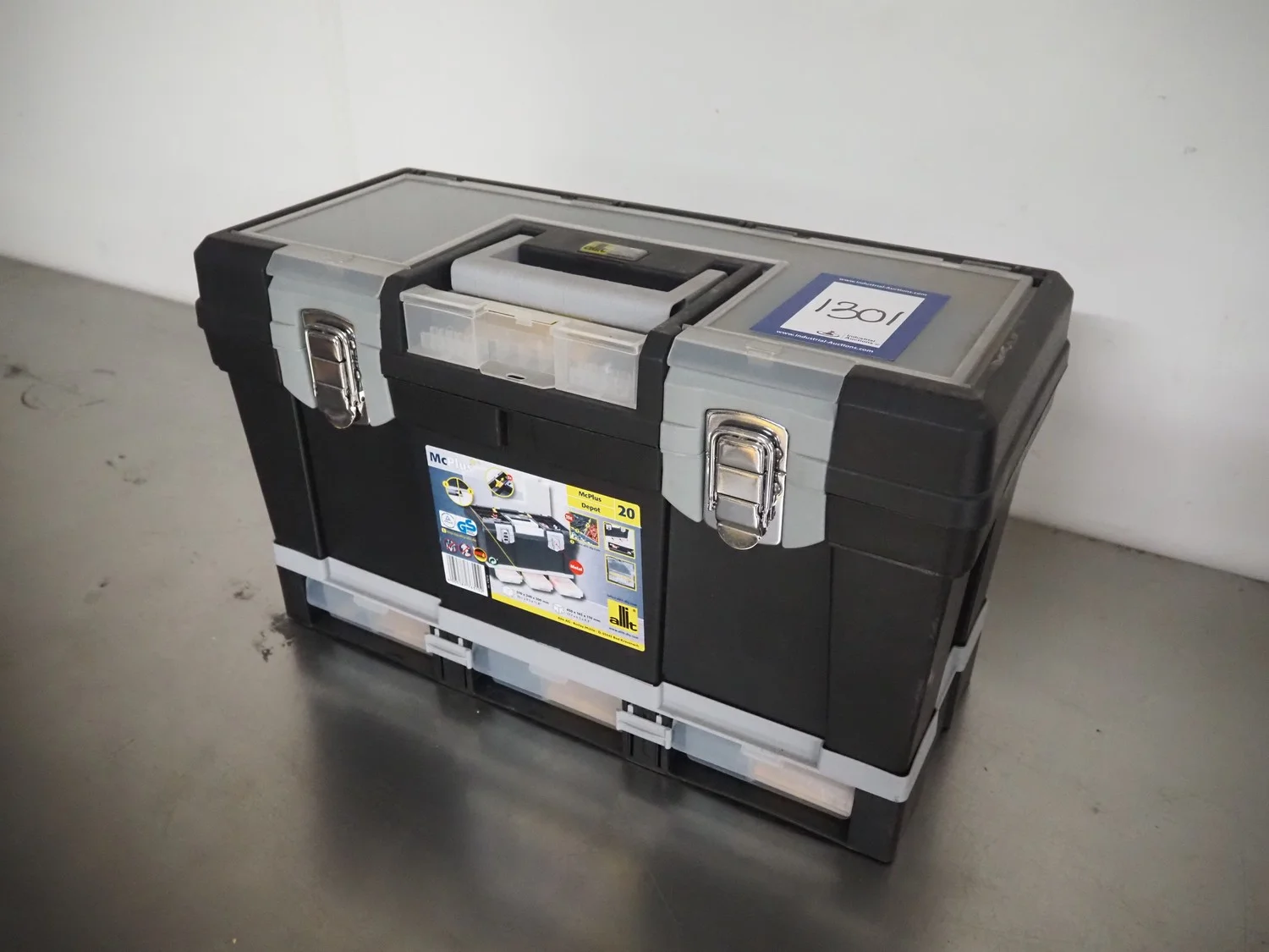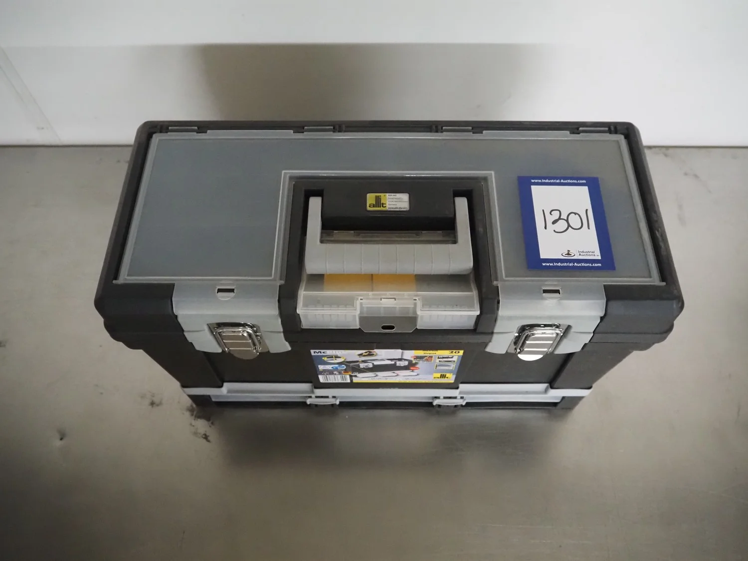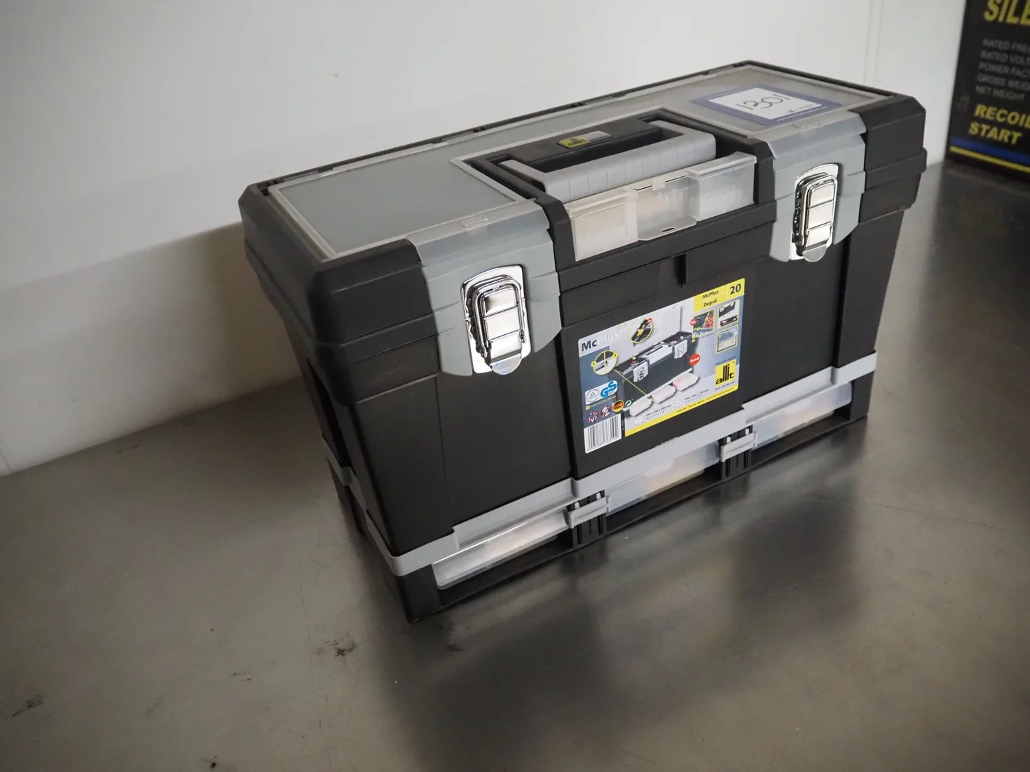 Allit empty plastic tool case, dimensions: 500 mm x 220 mm x 300 mm.