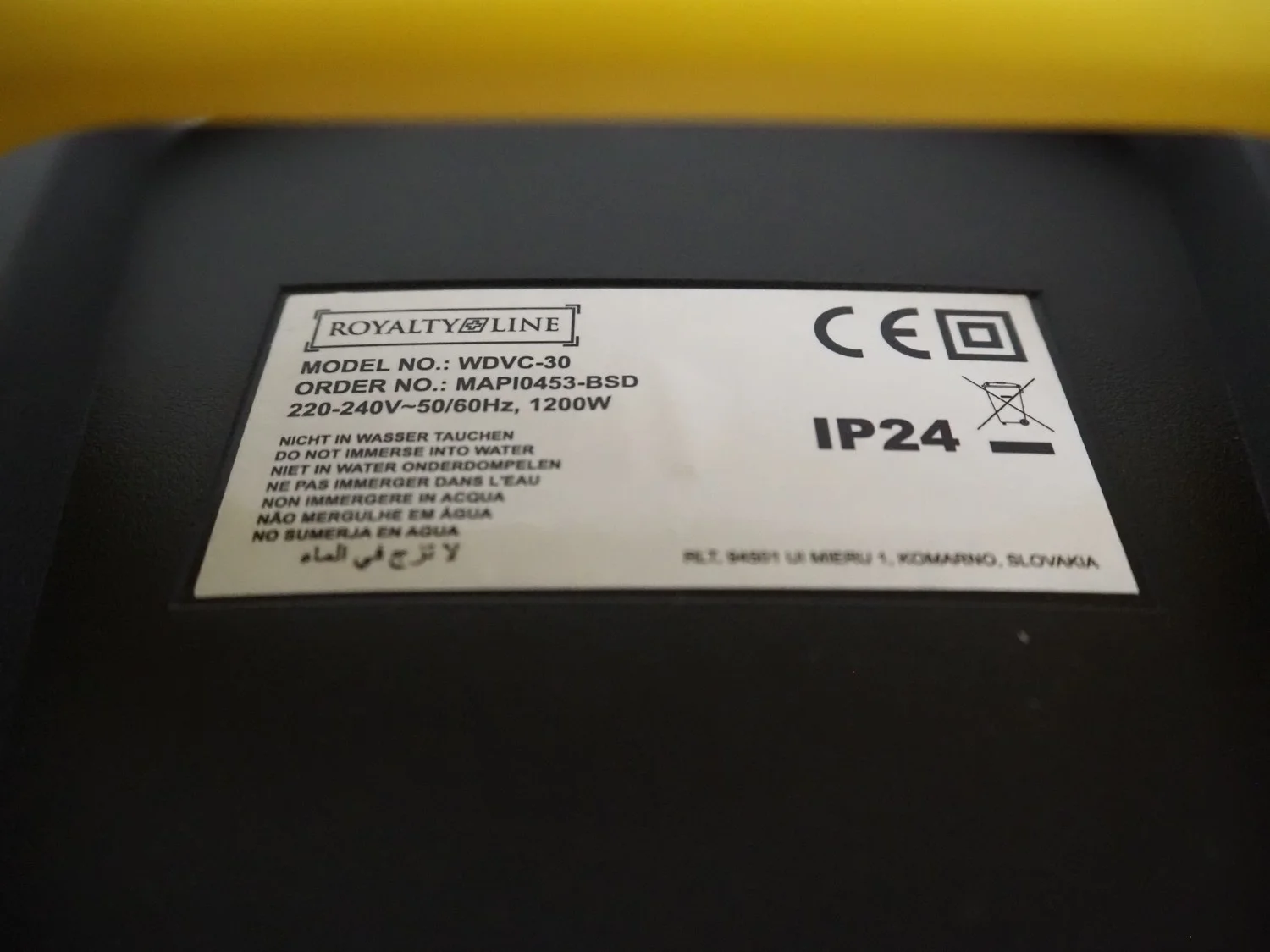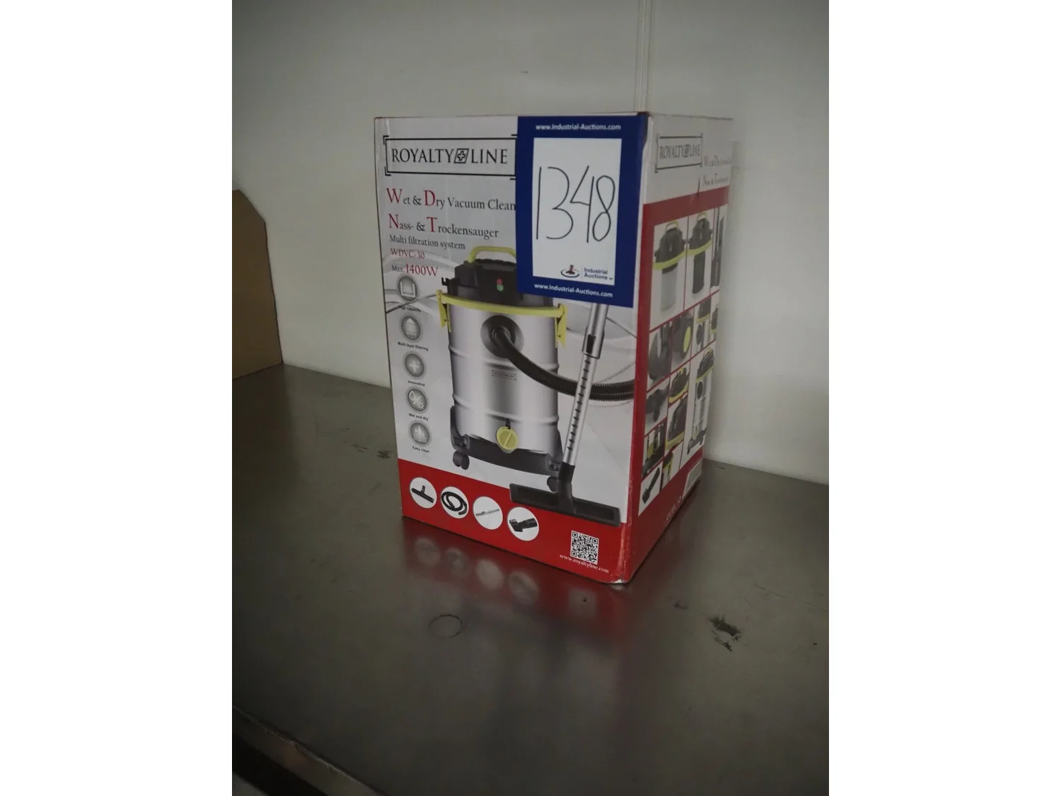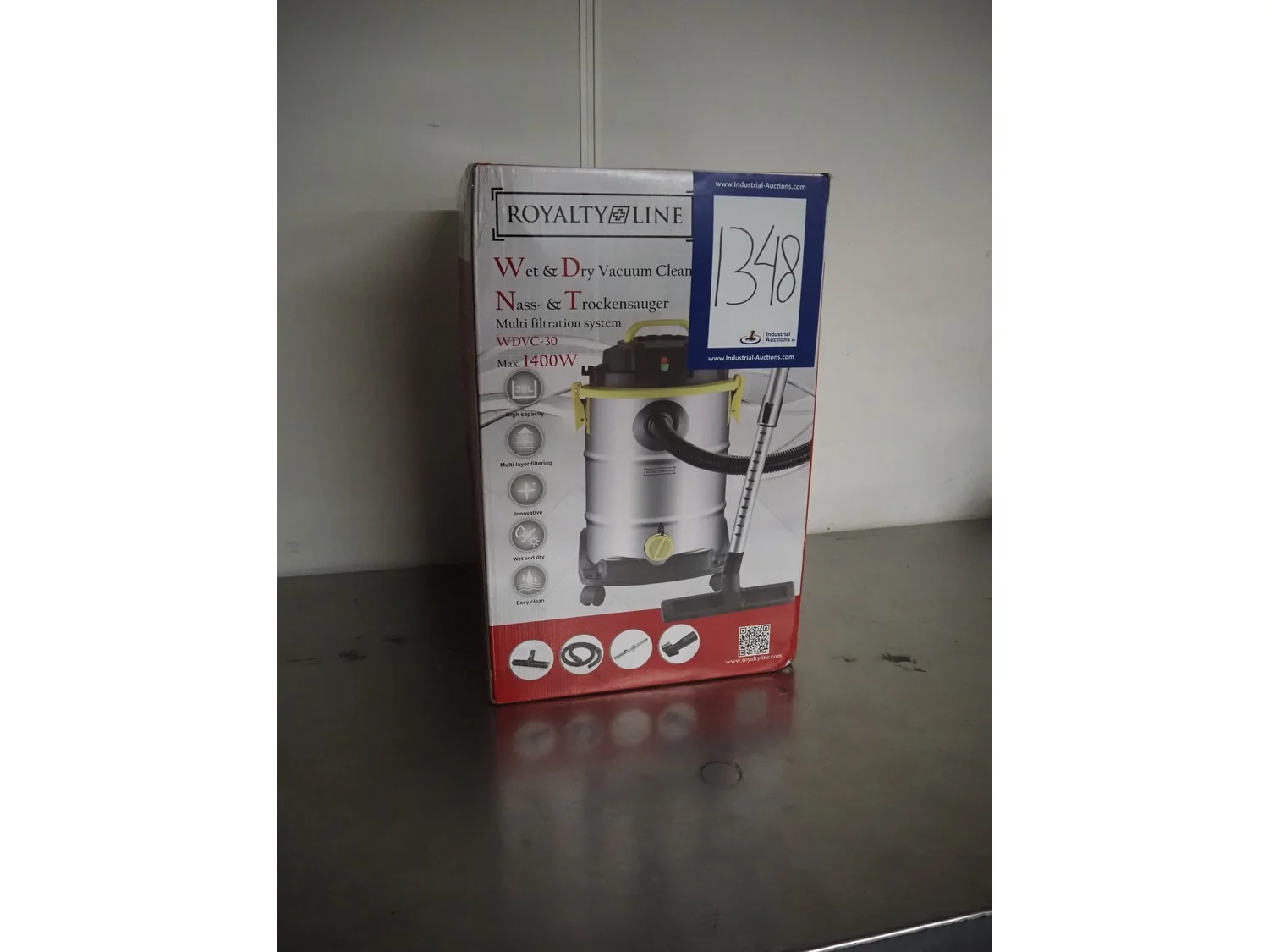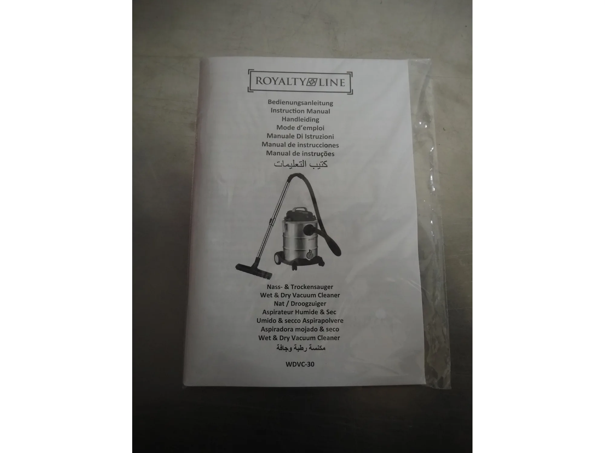 Royalty Line mobile wet-dry vacuum cleaner, model: WDVC-30, 220-240 V, 50/60 Hz, 1200 W, dimensions: 320 mm x 350 mm x 550 mm.