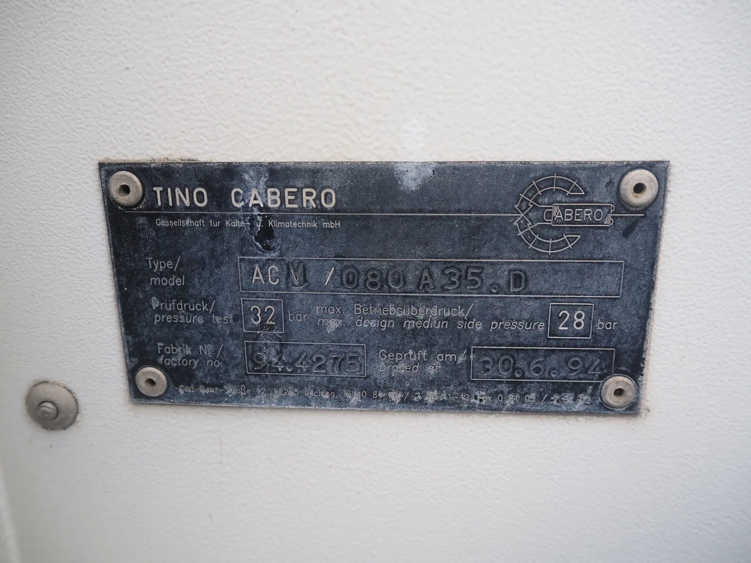 Tino Cabero roof condenser, type: ACM / 0080 A35.D, factory number: 94.4275, dimensions: 4500 mm x 1000 mm x 1300 mm.