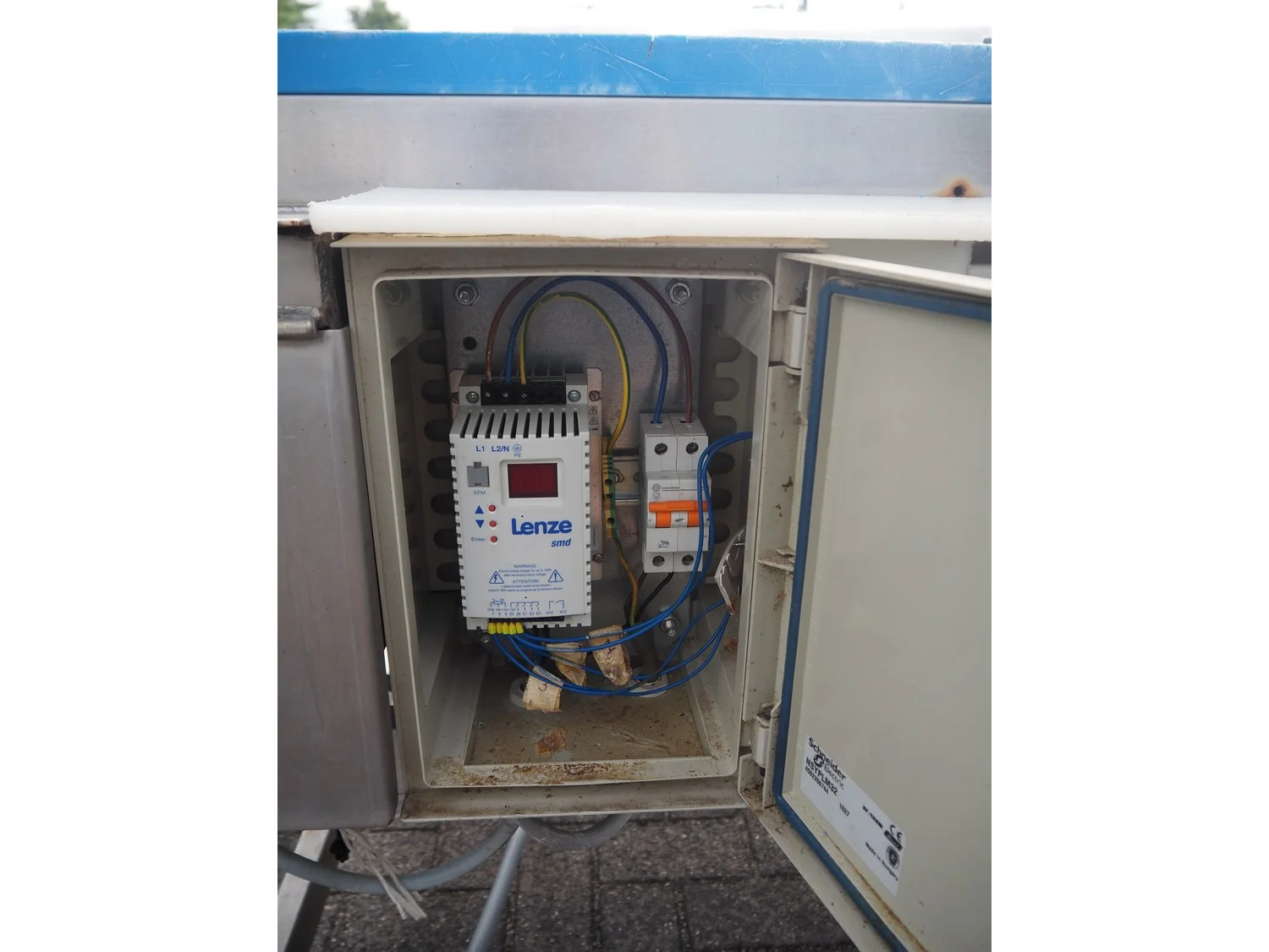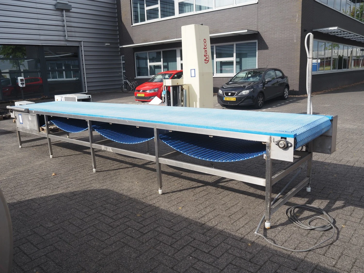 Transport belt, s/s frame, plastic belt, belt width: 1000 mm, total dimensions: 6050 mm x 1400 mm x 1850 mm.